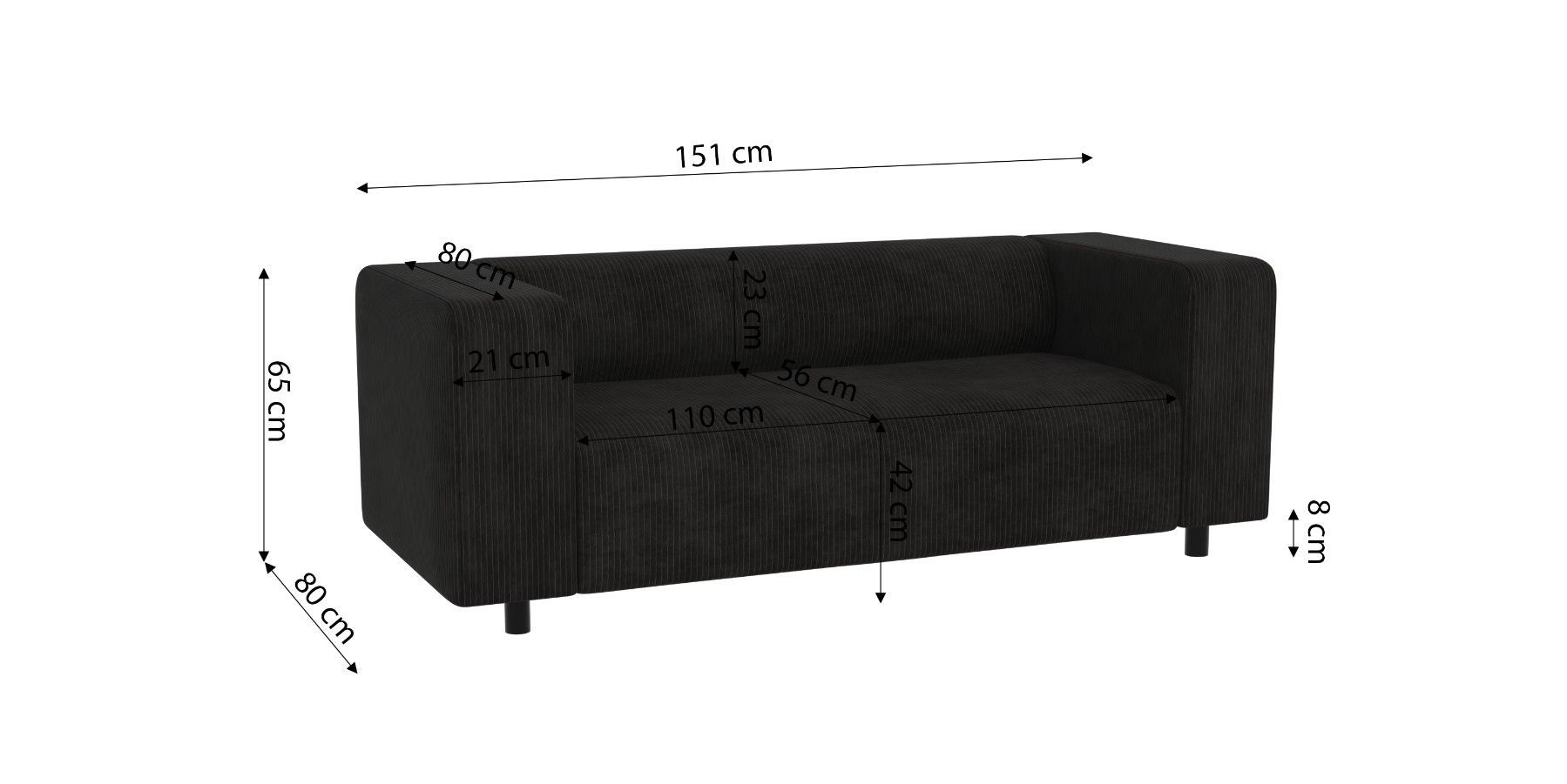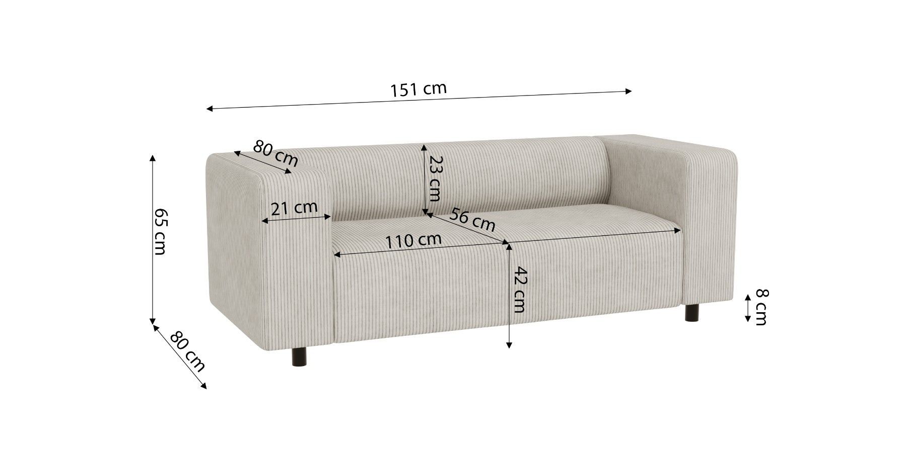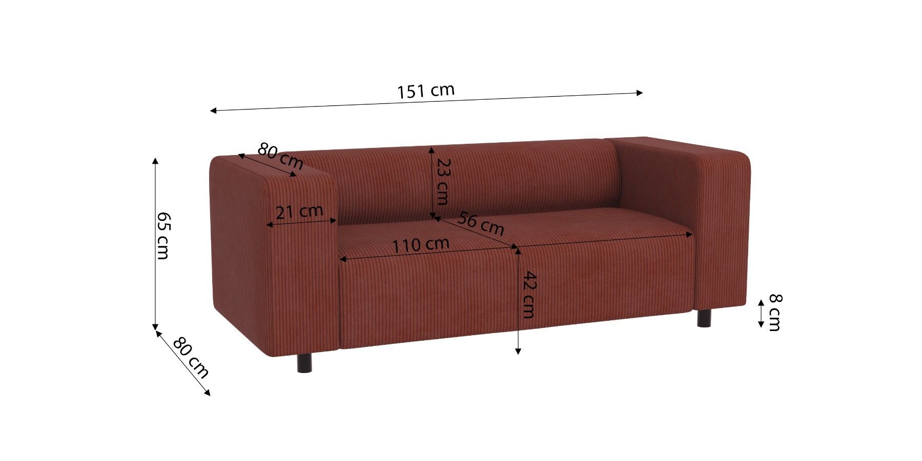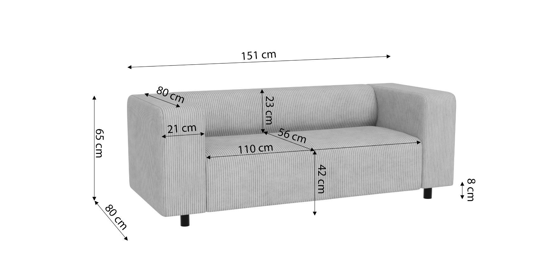 Oskar - Modernes Sofa 2 sitzer aus Cord-Stoff mit bequemem Sitz