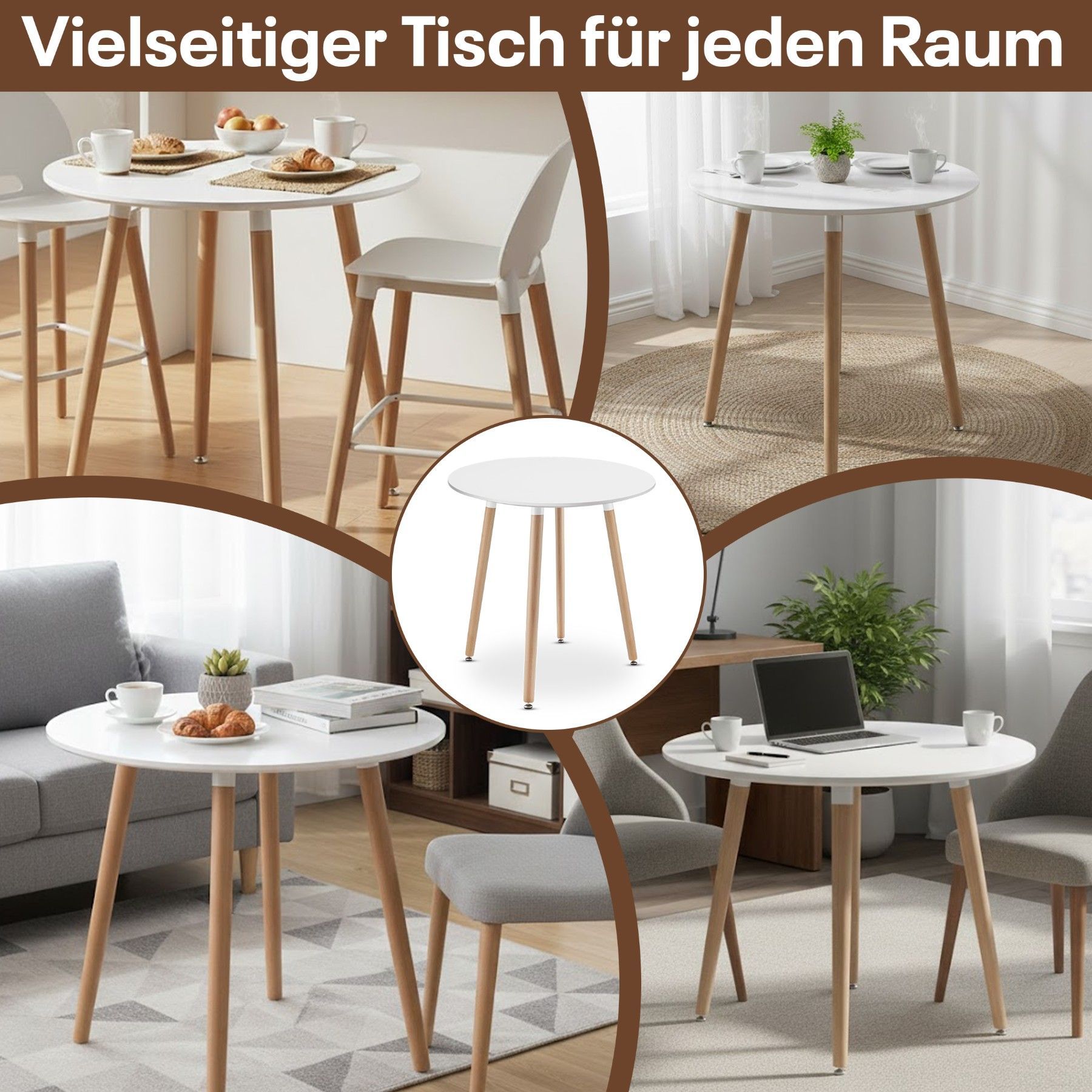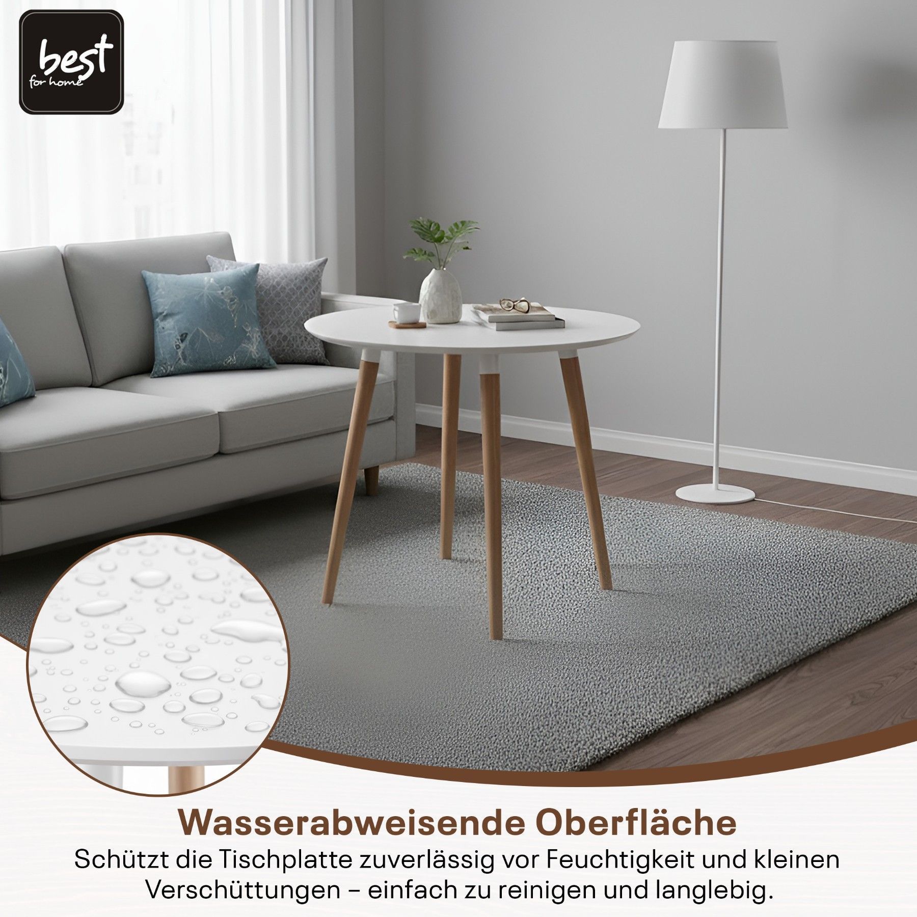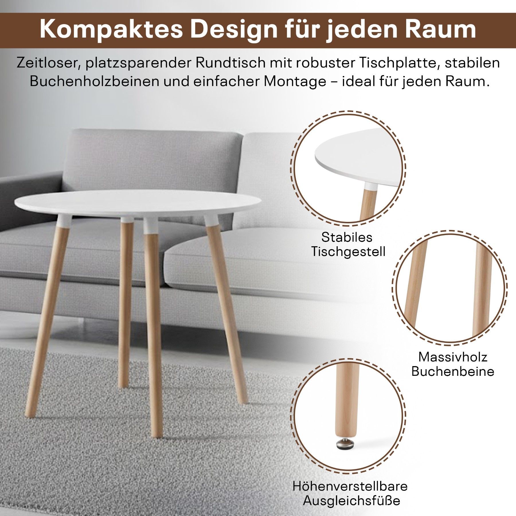 OSKAR Runder Esstisch KAMI - Weiß, moderner Tisch mit MDF Platte & Buchenholzbeinen
