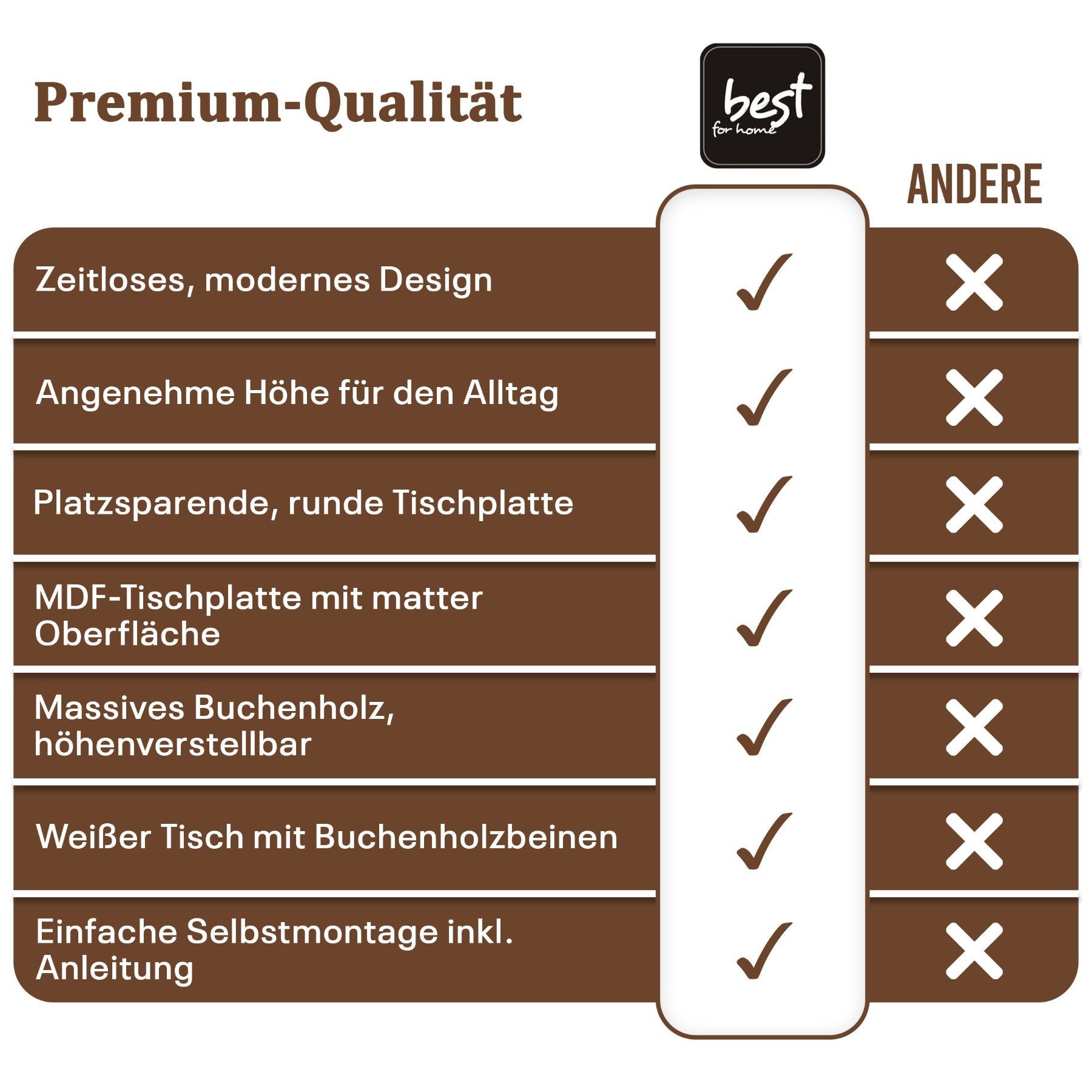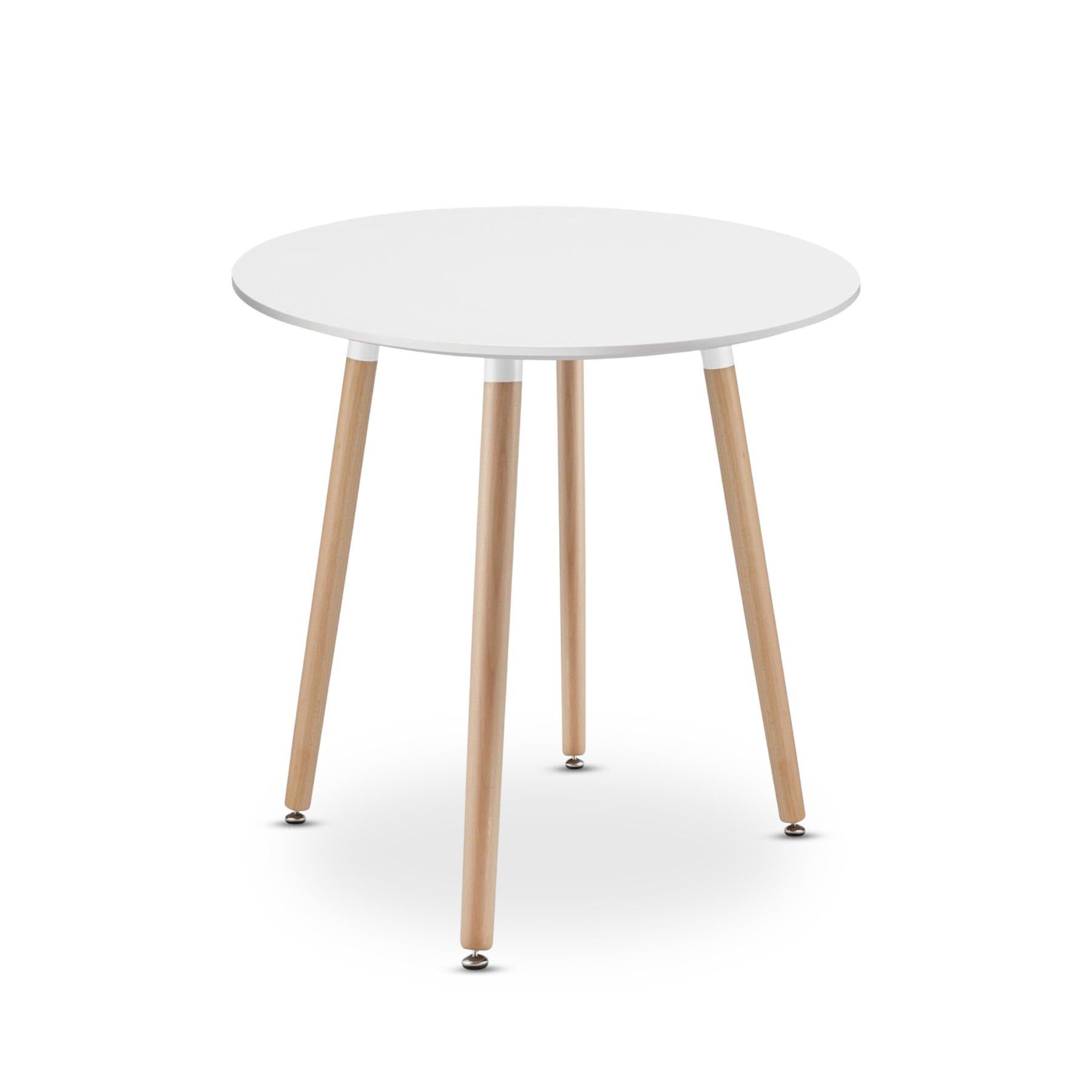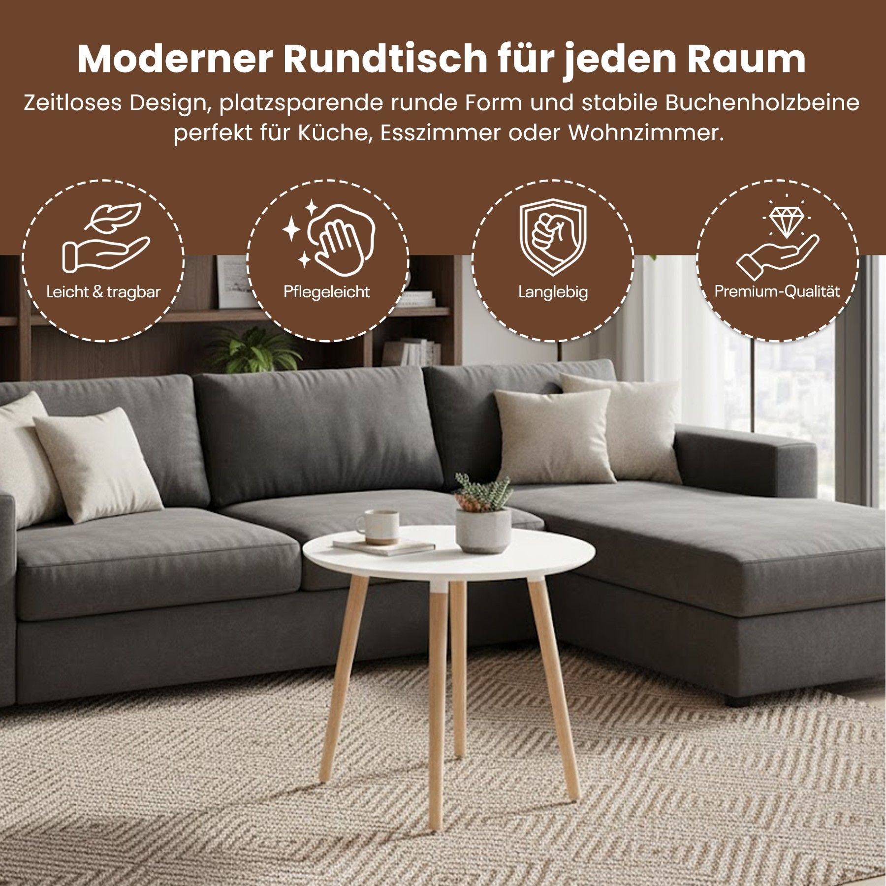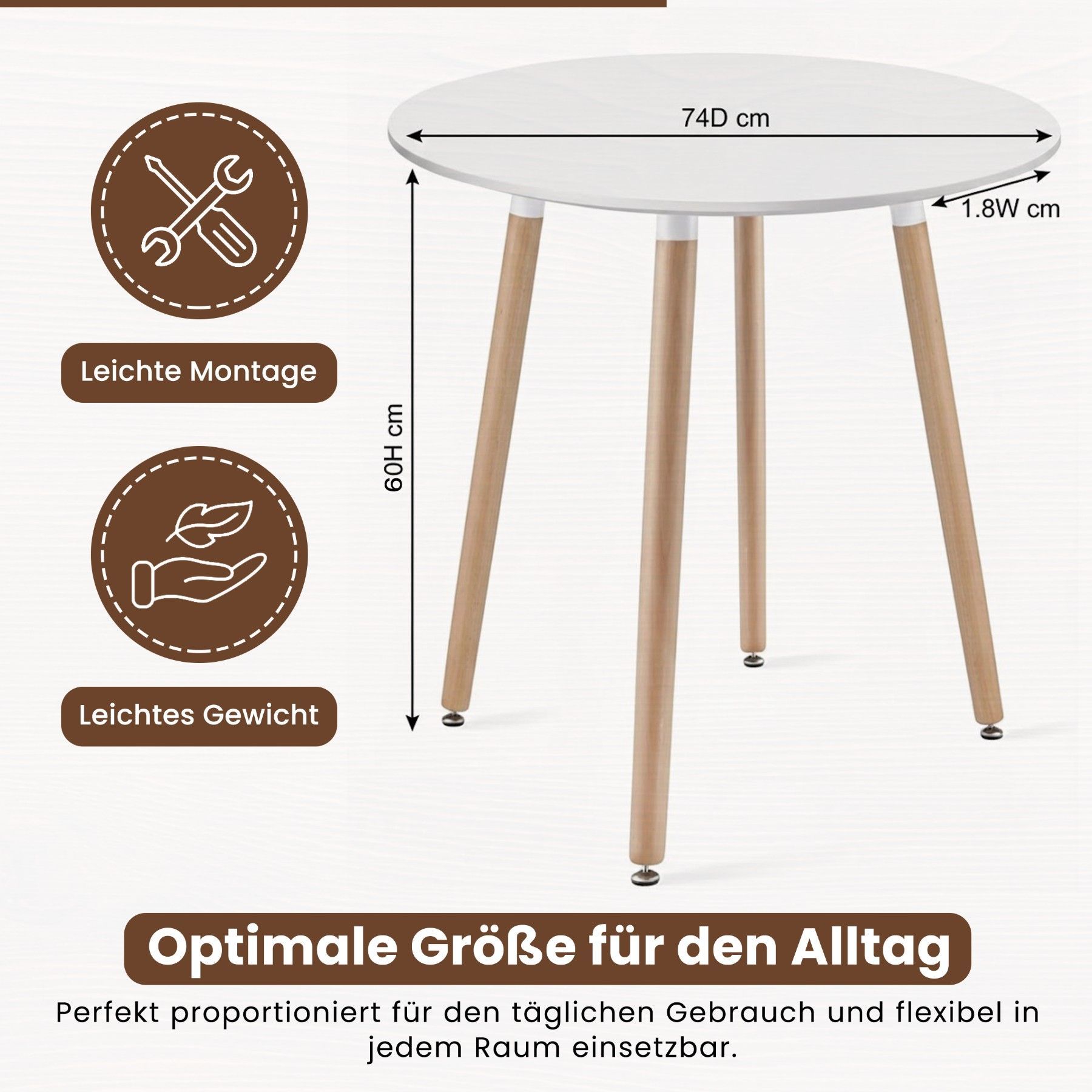 OSKAR Runder Esstisch KAMI - Weiß, moderner Tisch mit MDF Platte & Buchenholzbeinen