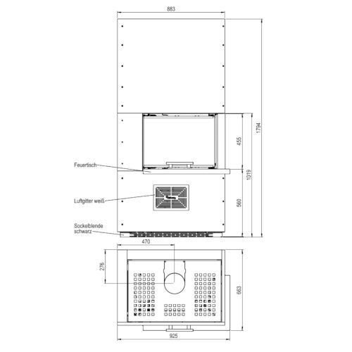 Ohne Rost + Ohne Zuluftstutzen unten, Mit Rost + Ohne Zuluftstutzen unten, Ohne Rost + Mit Zuluftstutzen unten