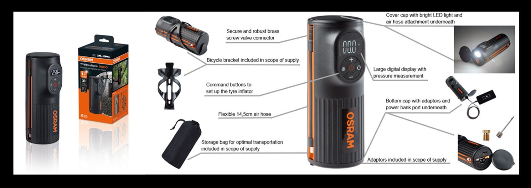 Osram Osram Akku-Reifenpumpe TYREinflate2000 mit Fahrradhalterung