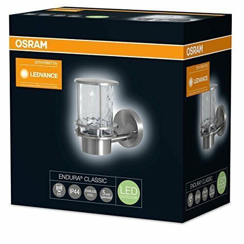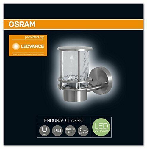 OSRAM LED Wandleuchte Außenbereich, Glas, silber, für Sockel E27, IP44