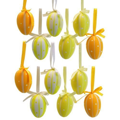 Oster-Eier bemalt gelb, 12 Stück, 6x4 cm