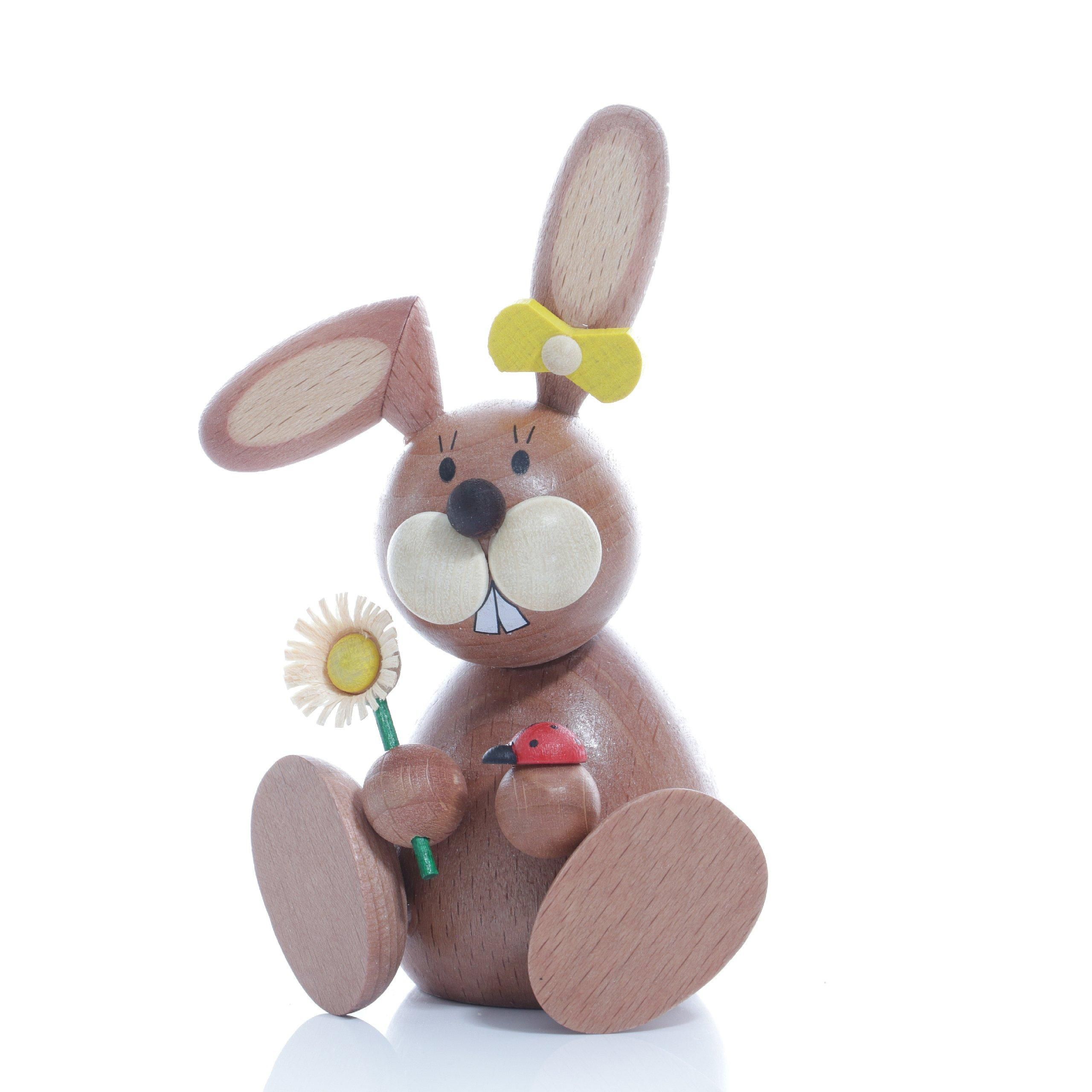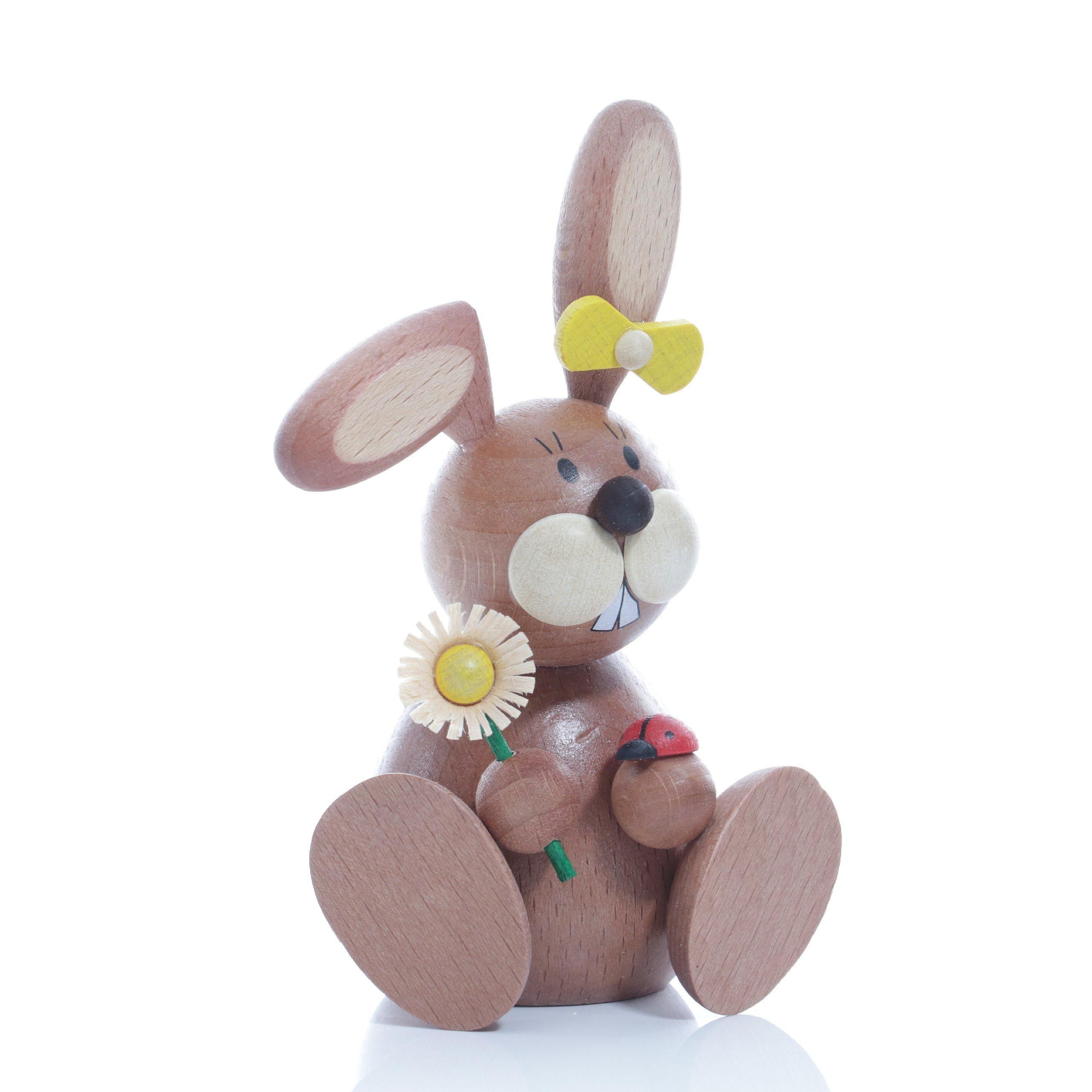 Osterartikel Osterhäsin mit Blume und Marienkäfer HxB 11x7,5cm NEU Osterdeko