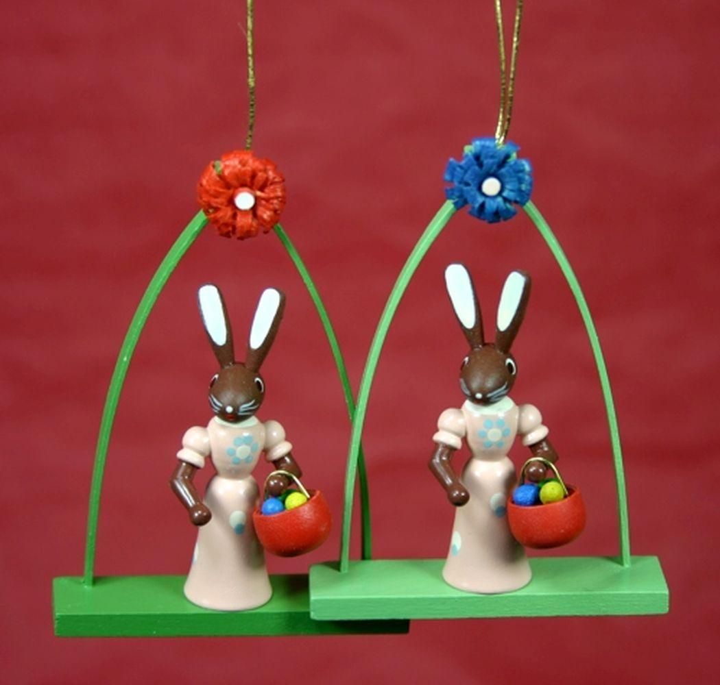 Osterdekoration Häsin im Bogen bunt Strauchbehang Höhe 8cm NEU Osterdeko
