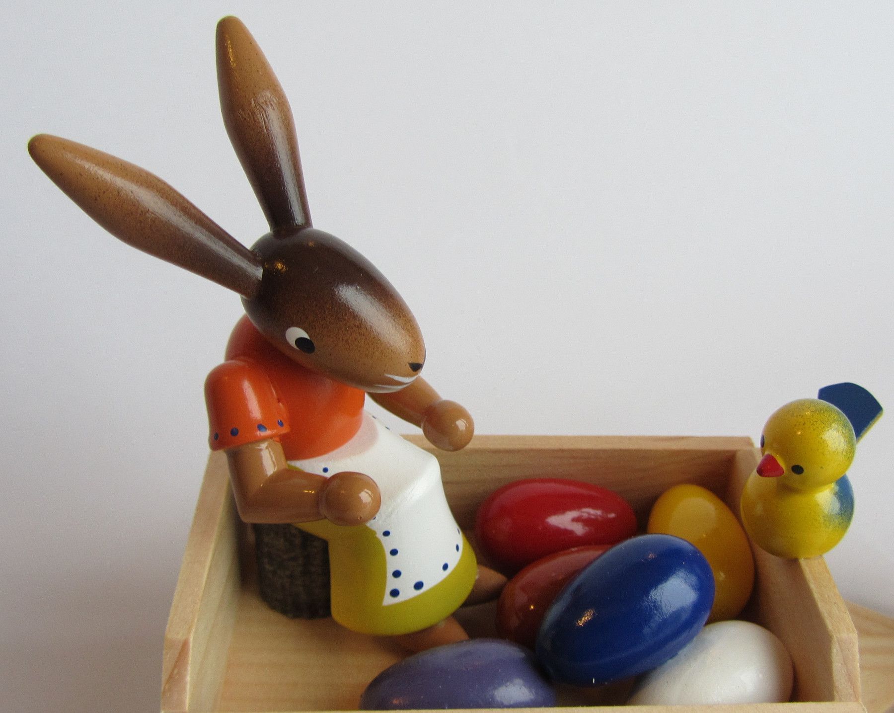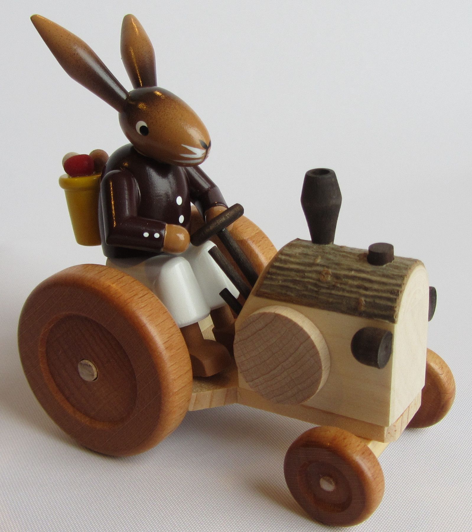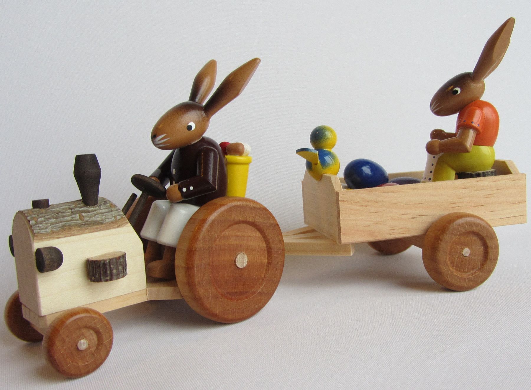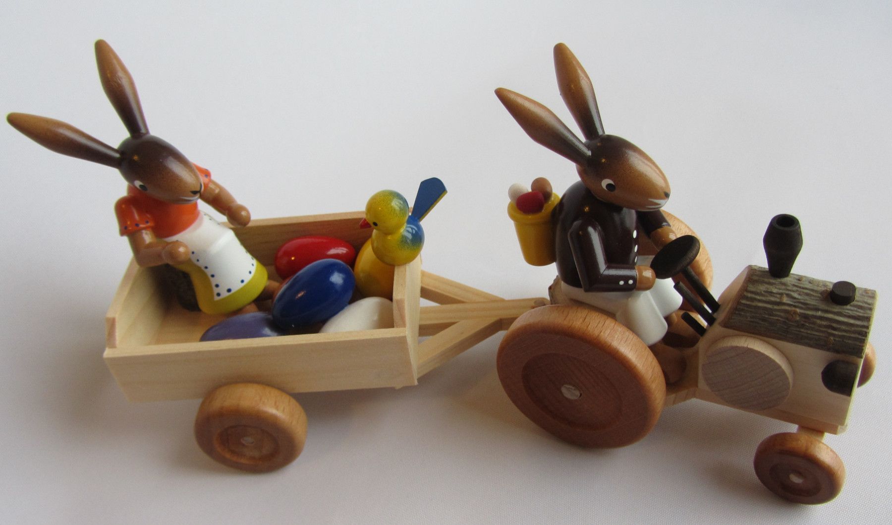 Osterhase im Traktor Anhänger Hasentraktor Handarbeit Erzgebirge Hase Ostern