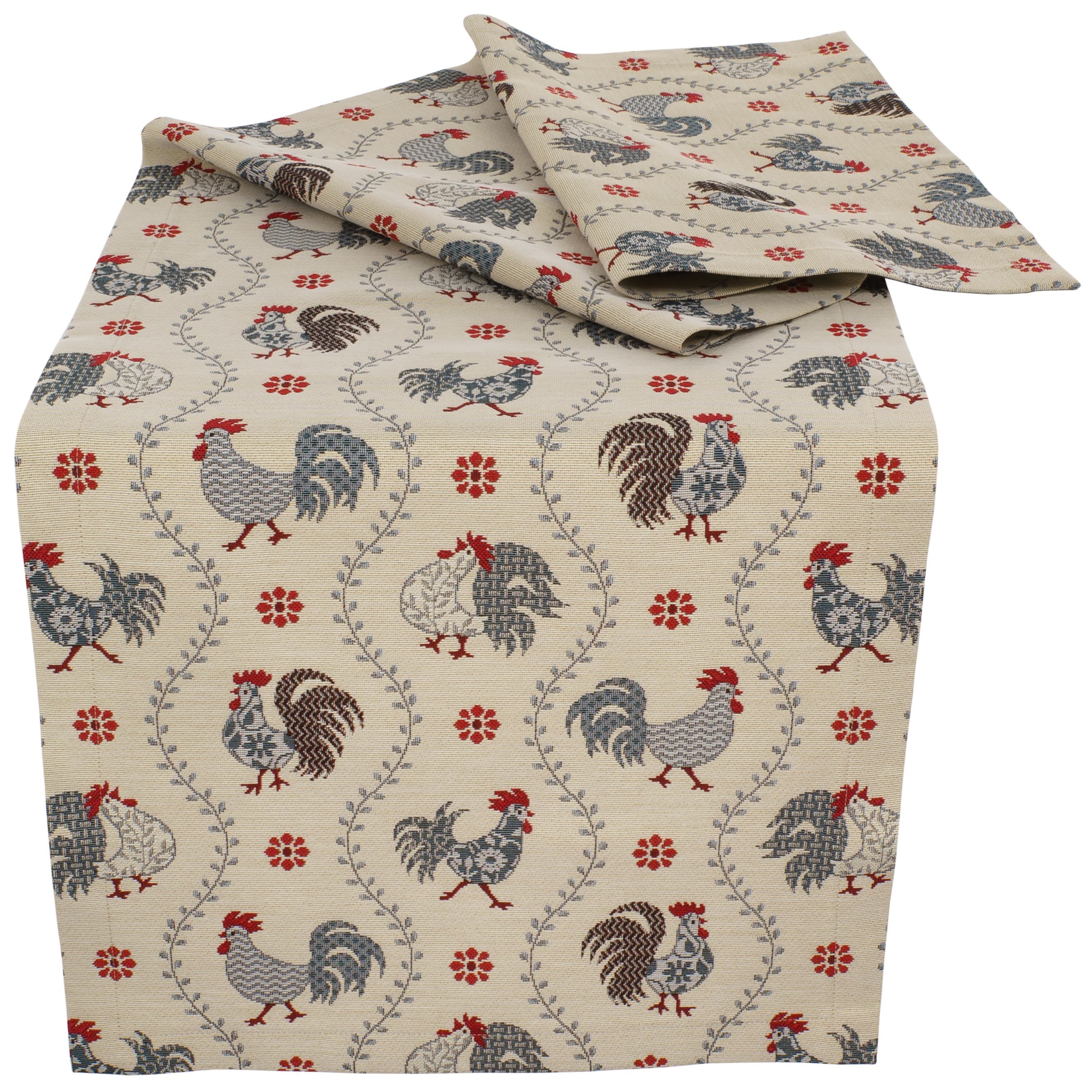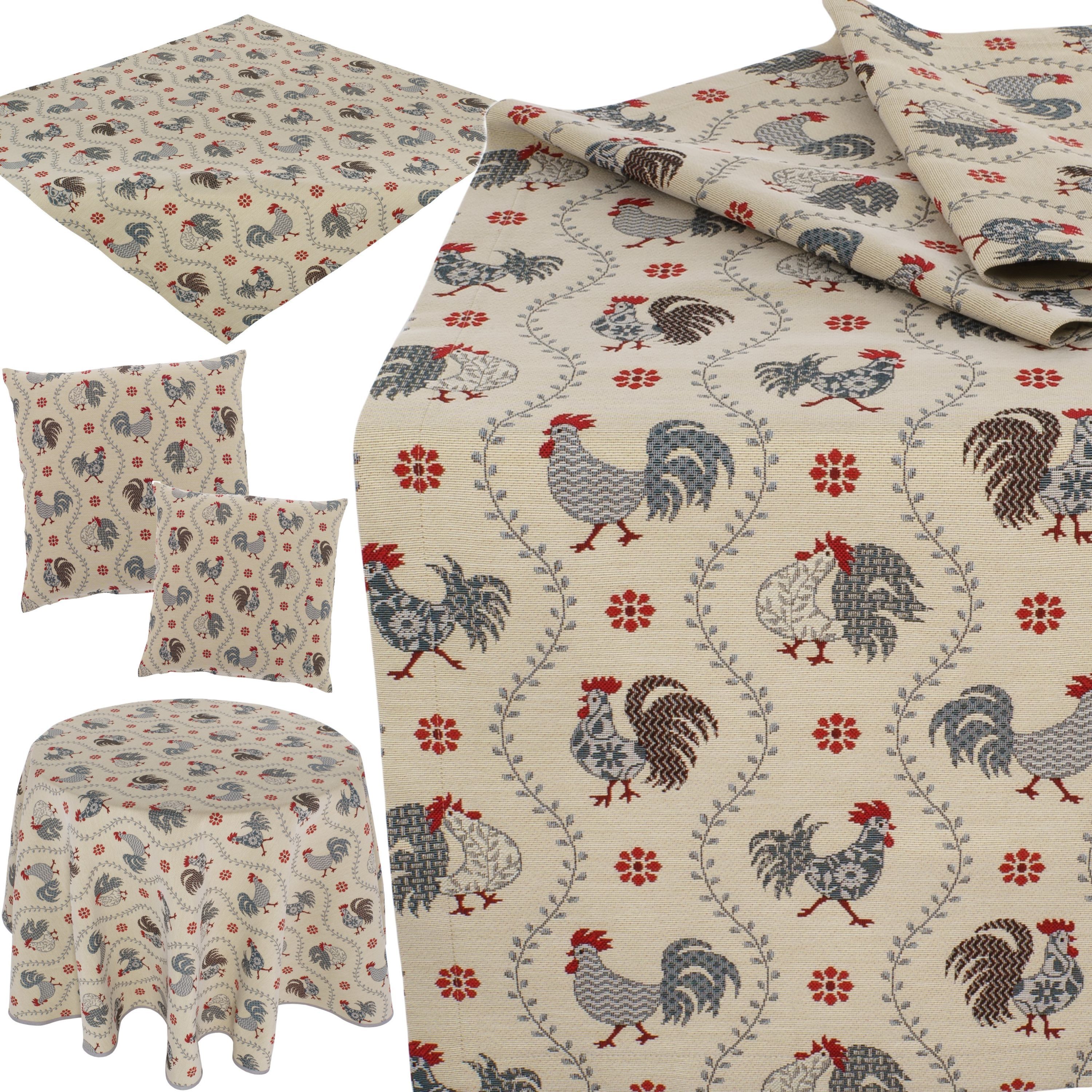 StiVoTex Hahnenmix Ranke * Dekorative Heimtextilien als Dekoration im rustikalen Landhausstil. Gobelintischdecken mit passenden Kissen in wertiger Qualität Made in Germany. Material Gobelin aus 64% Polyester, 24% Baumwolle, 12% Polyacryl.