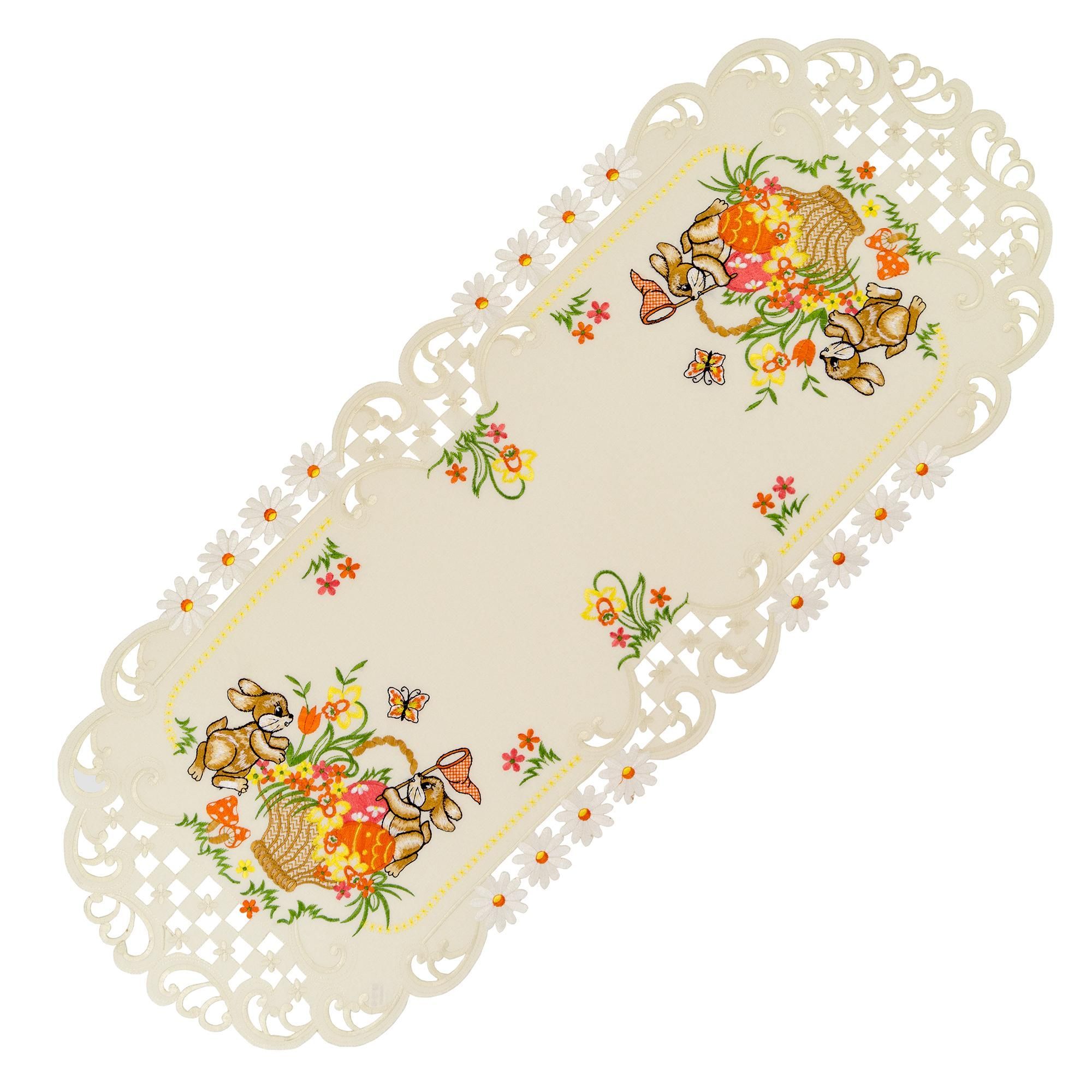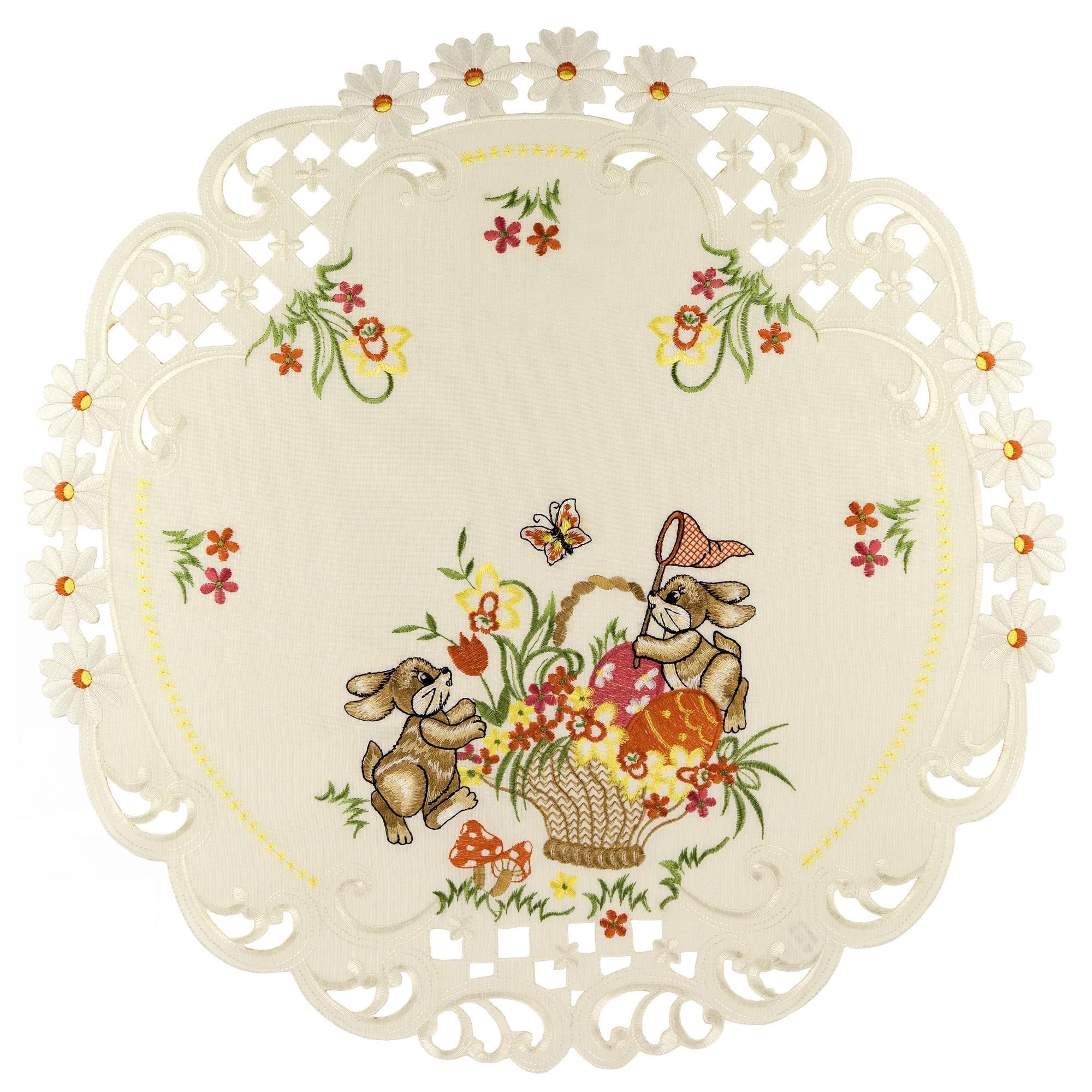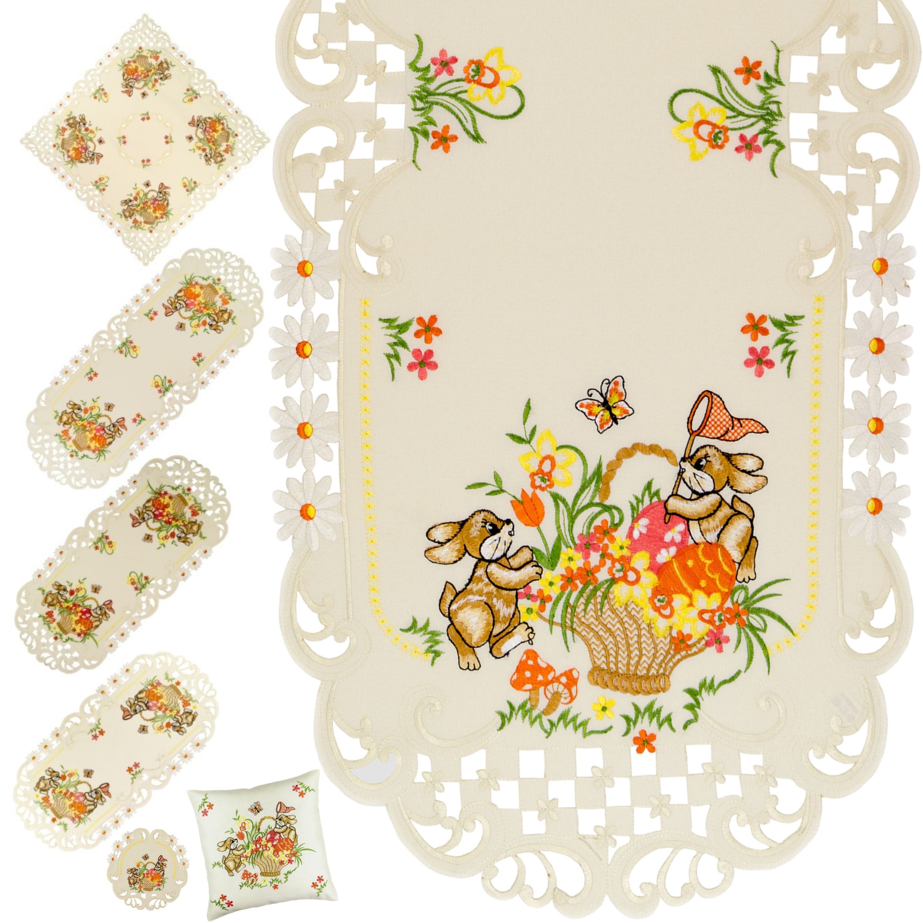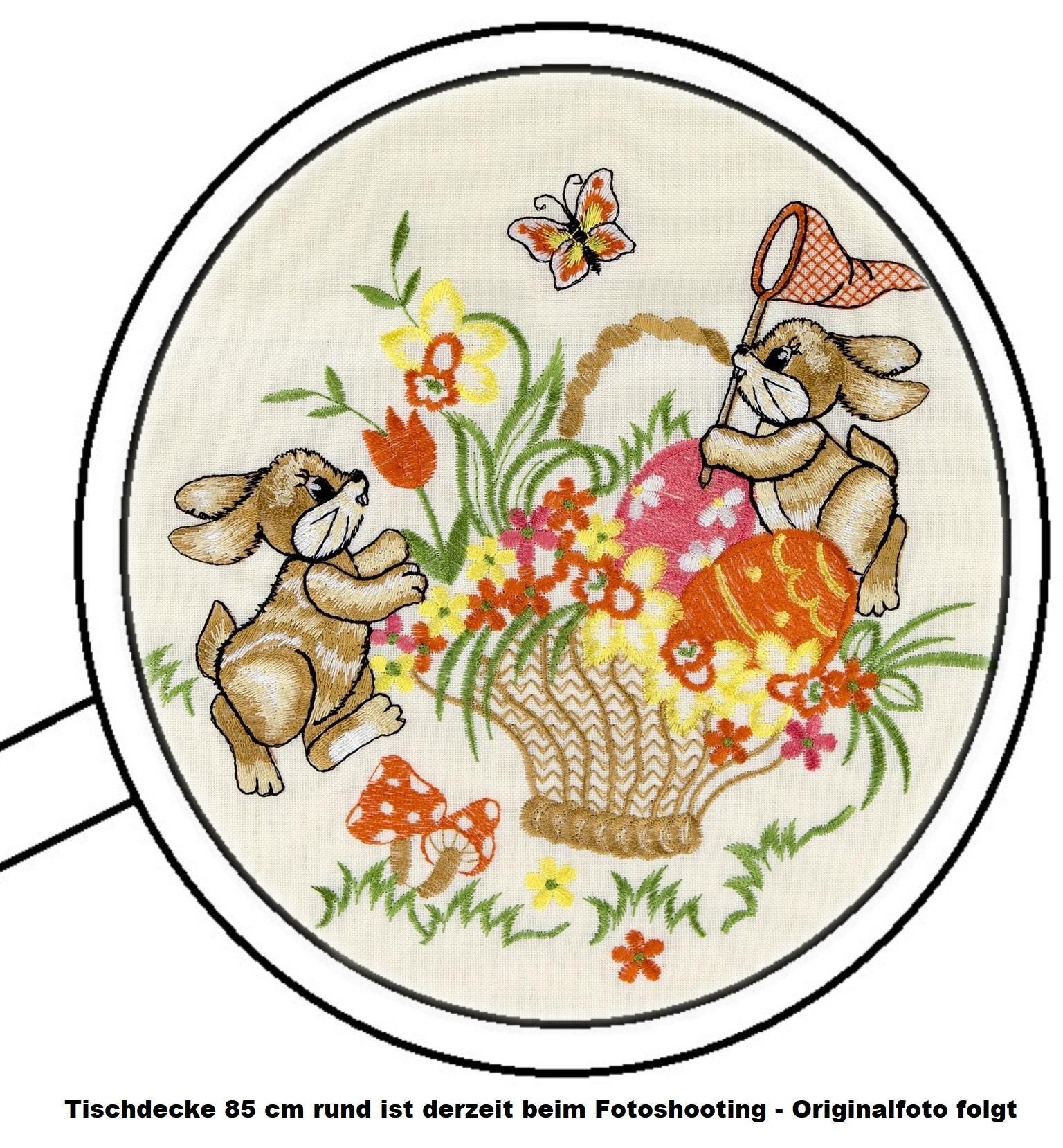 Ostern Heimtextilien Creme Osterhasen Orange Gestickt