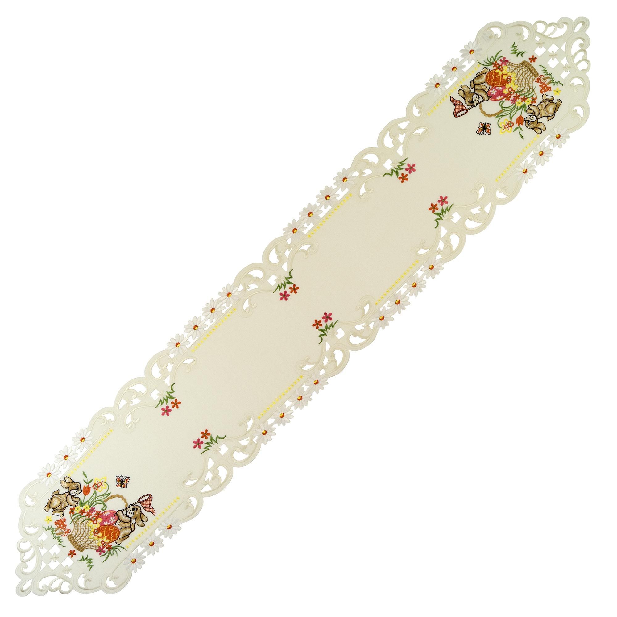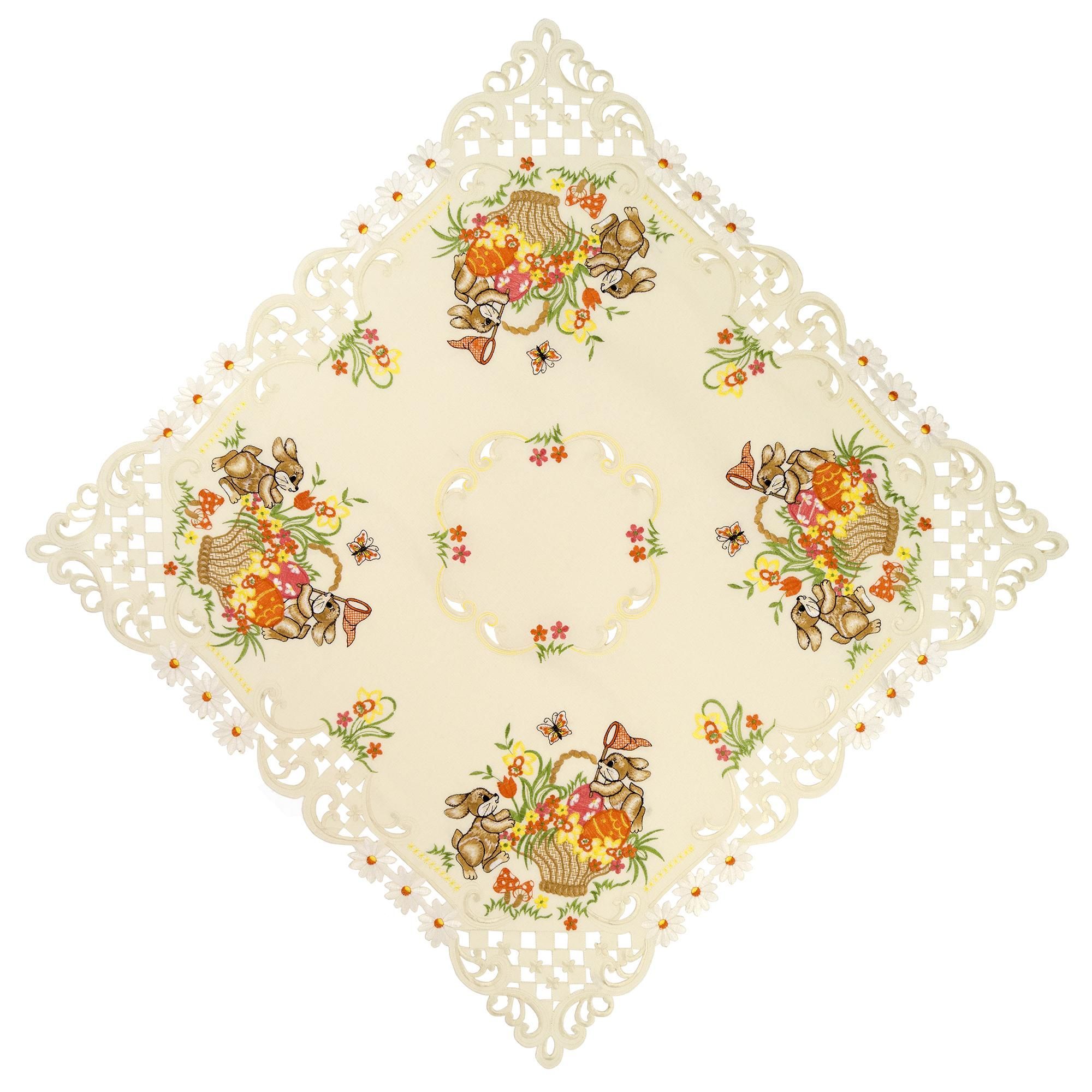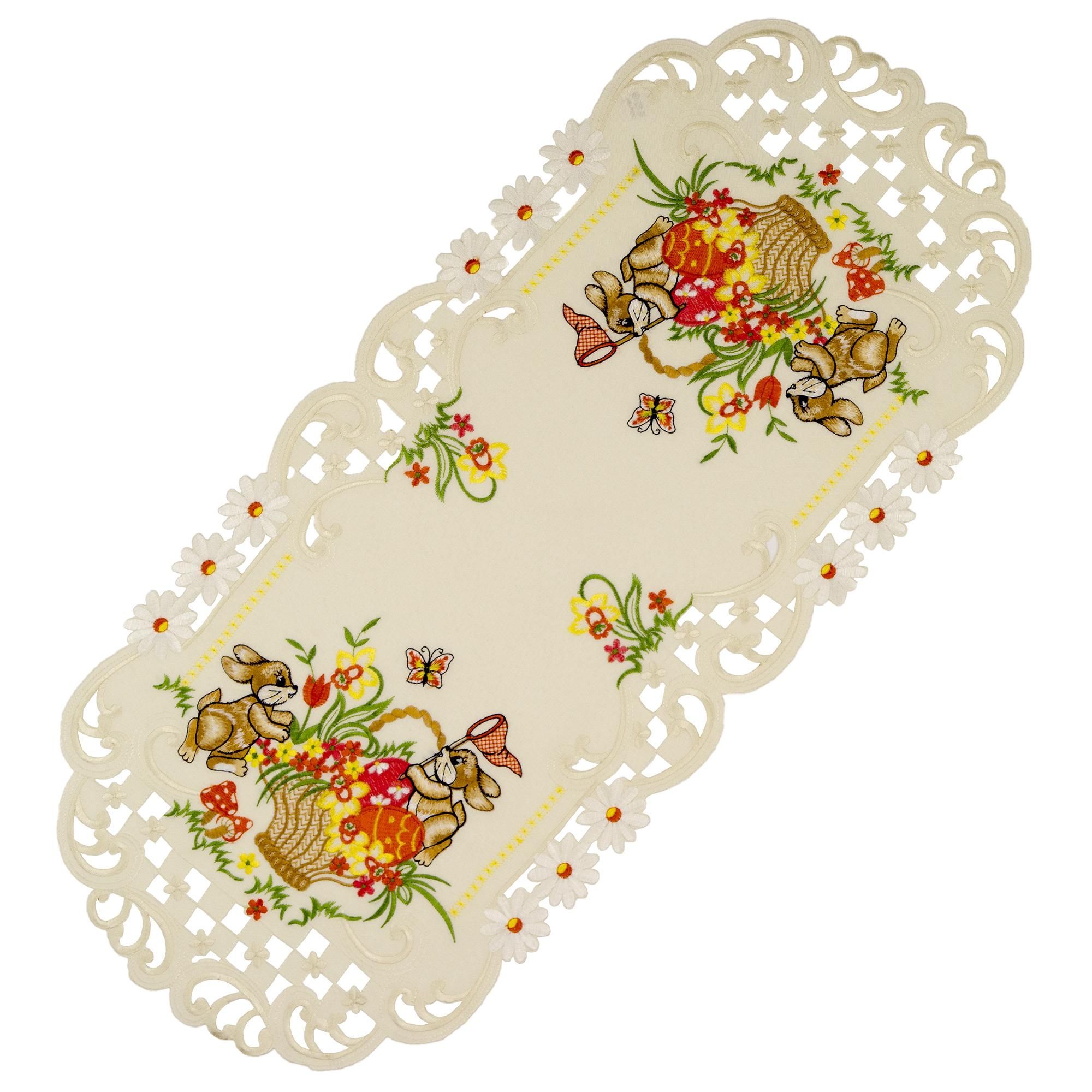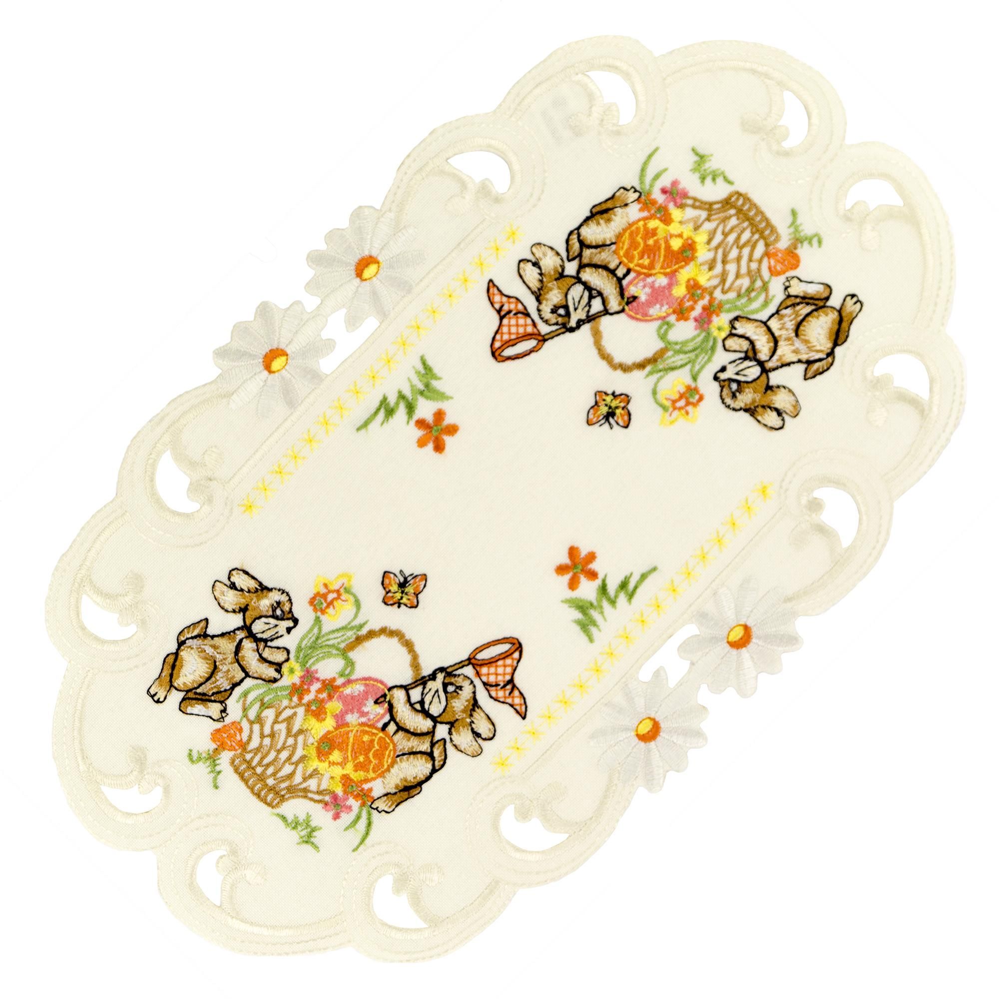 Ostern Heimtextilien Creme Osterhasen Orange Gestickt
