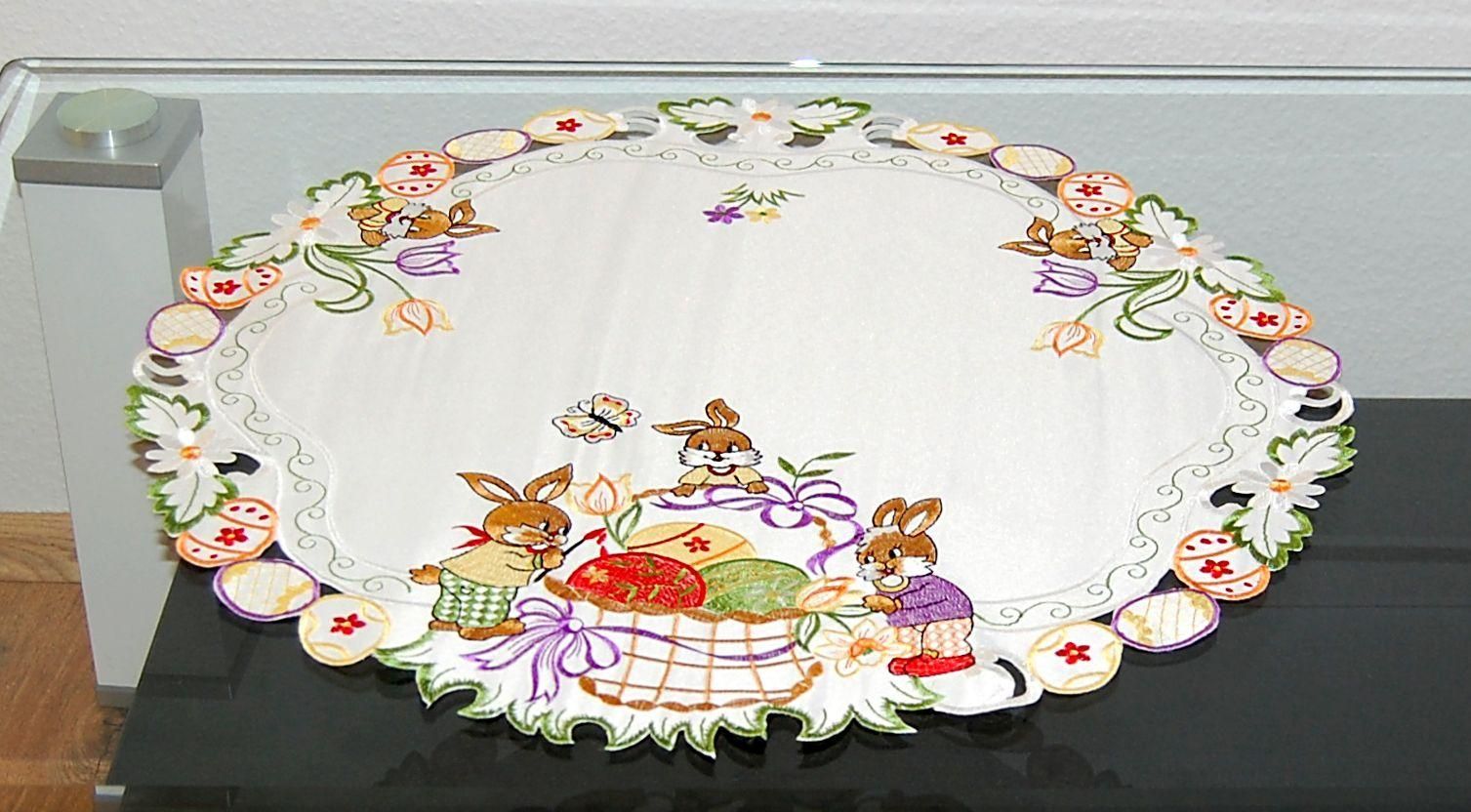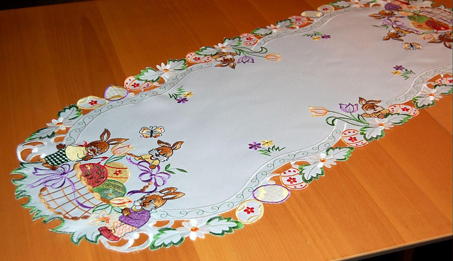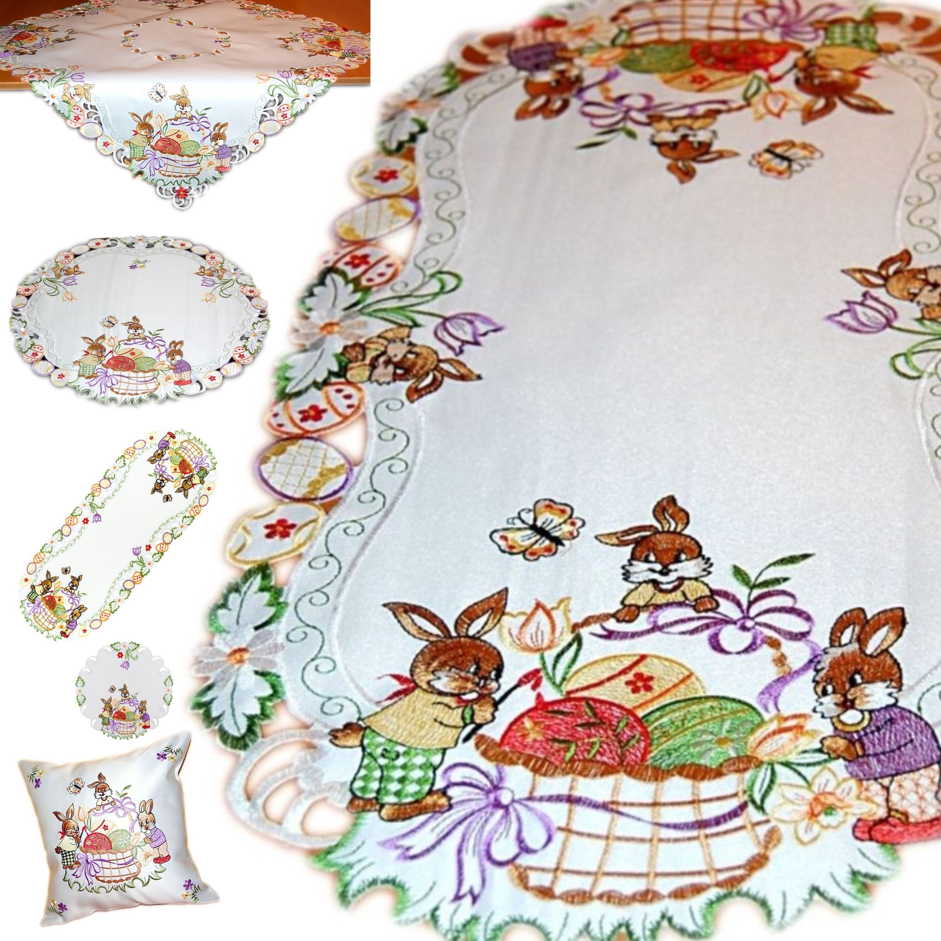 Ostern Tischdecke Tischläufer Kissenhülle Decke Läufer Kissen Osterhasen Lila Bunt