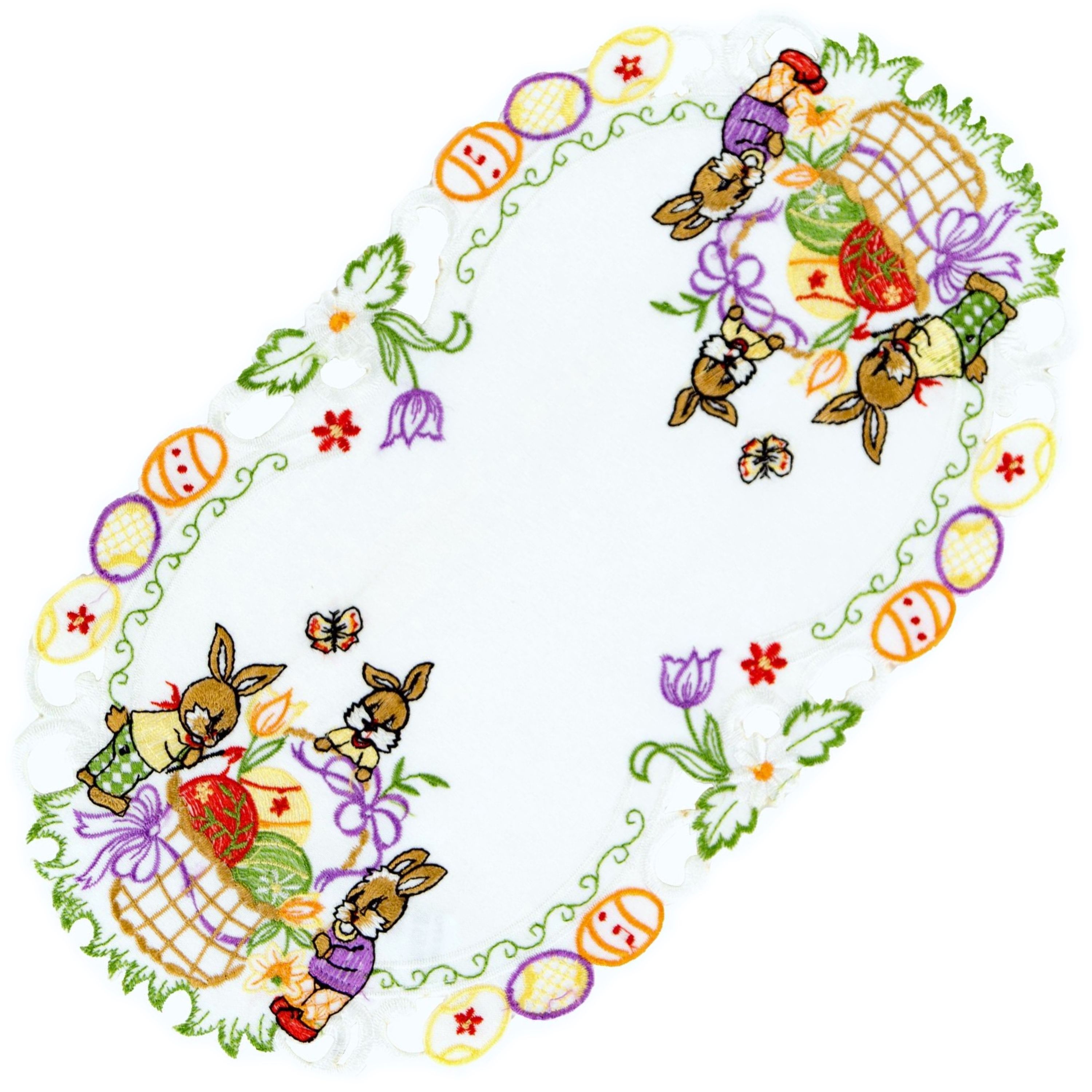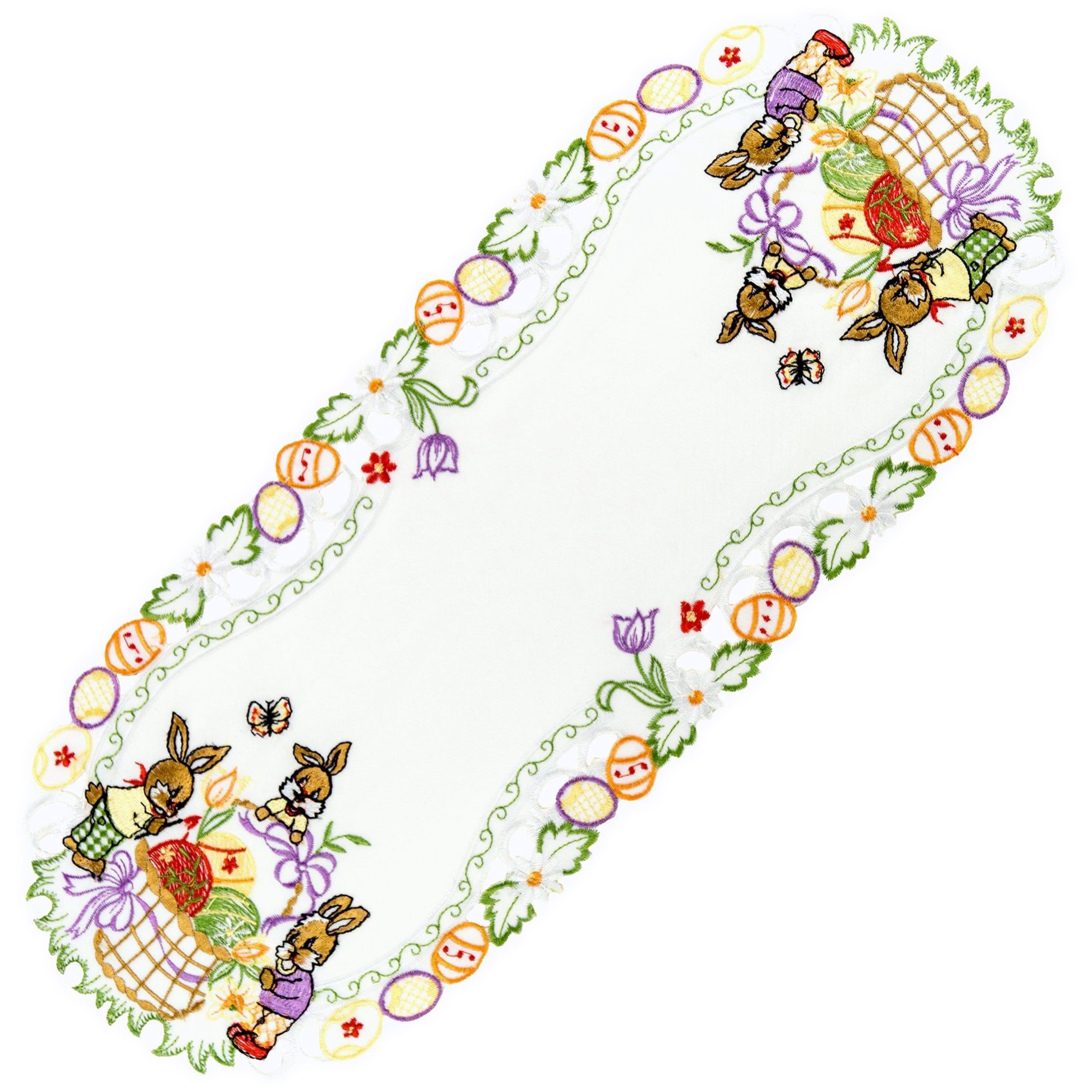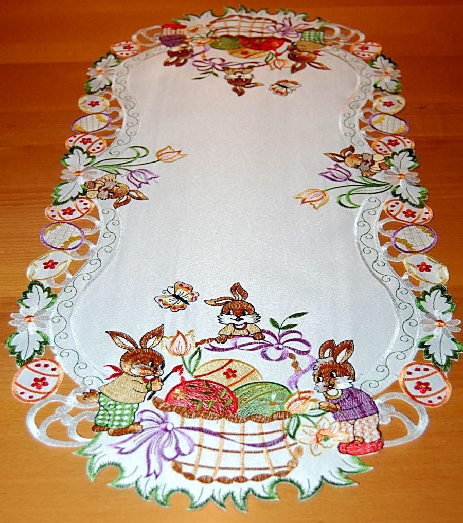 Ostern Tischdecke Tischläufer Kissenhülle Decke Läufer Kissen Osterhasen Lila Bunt