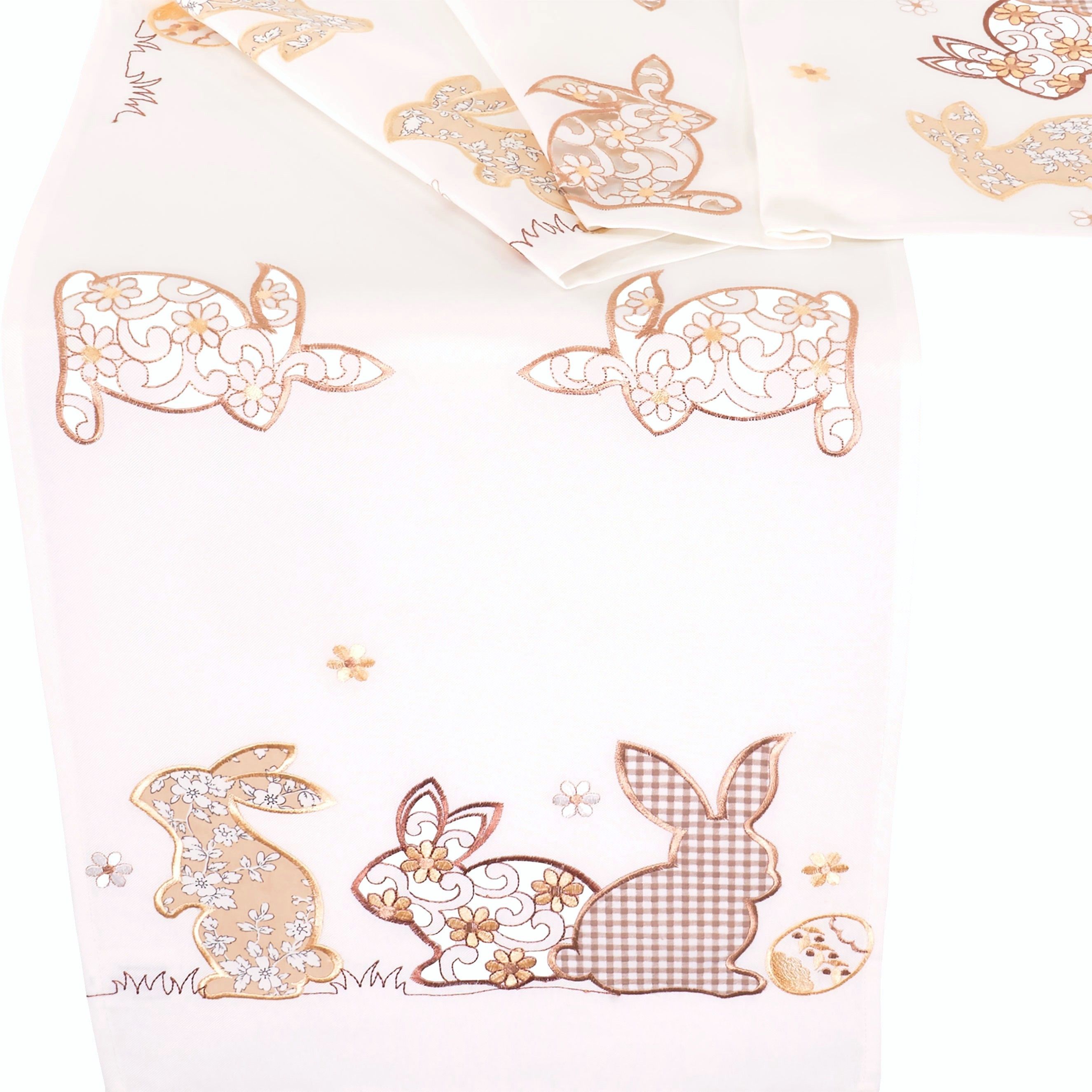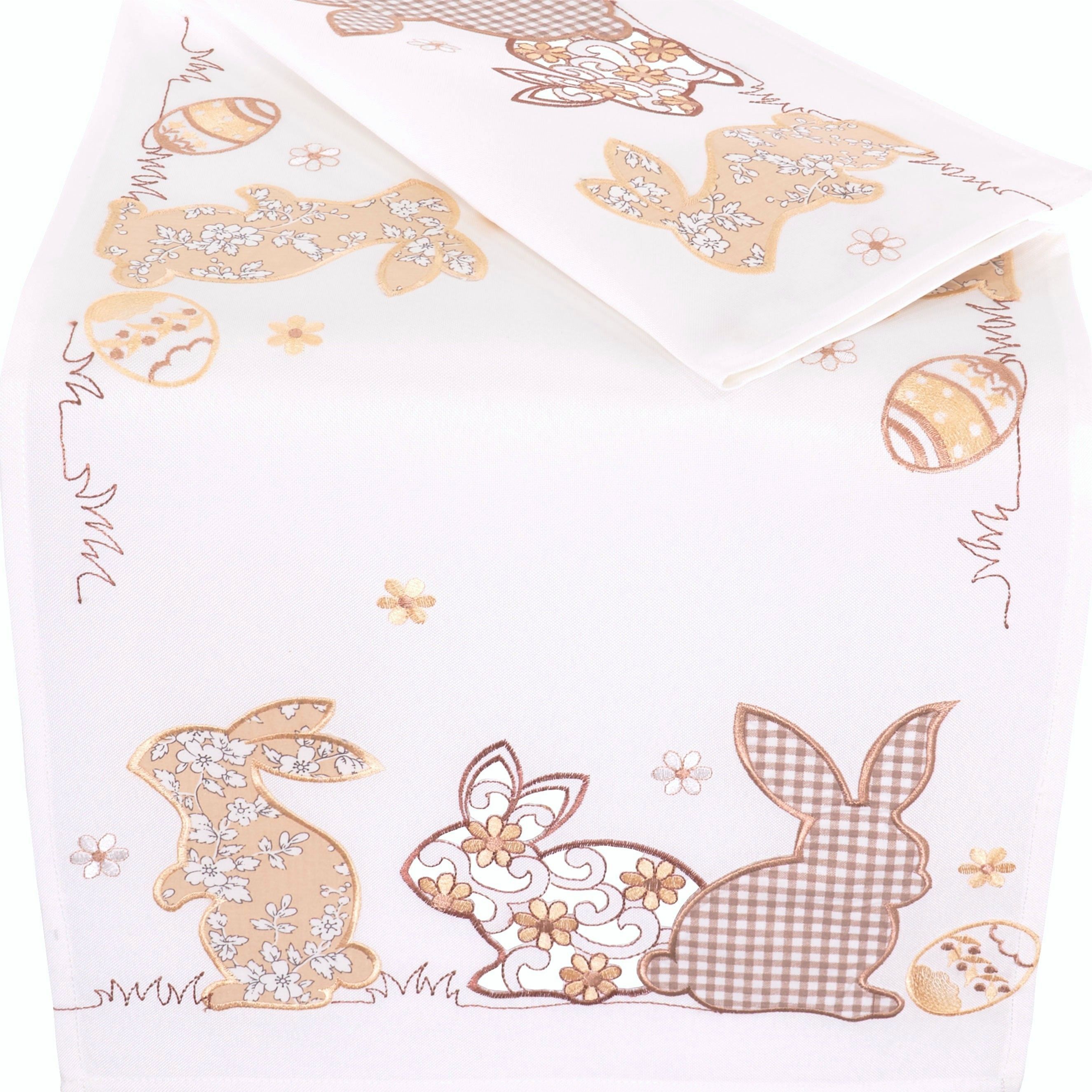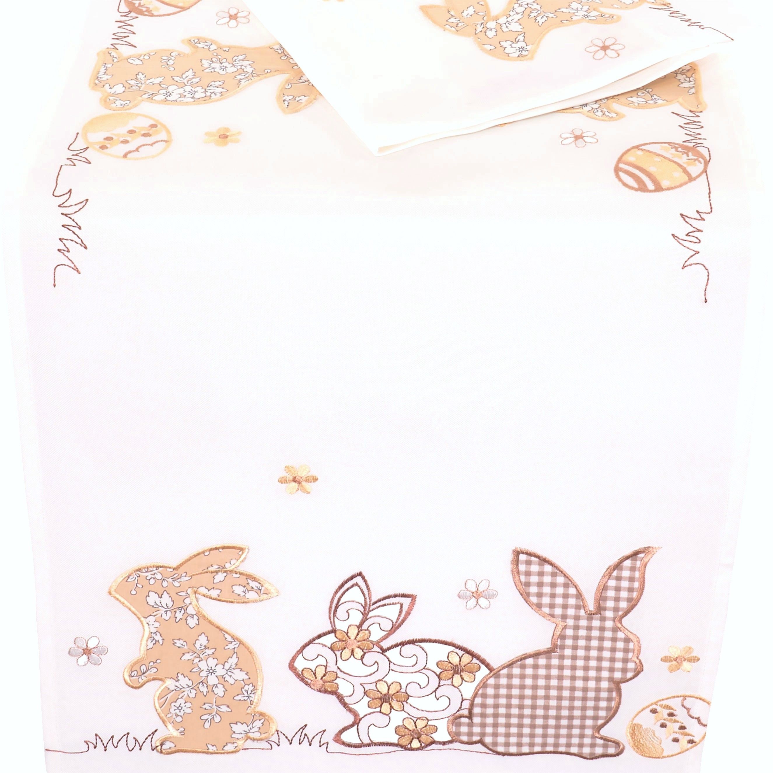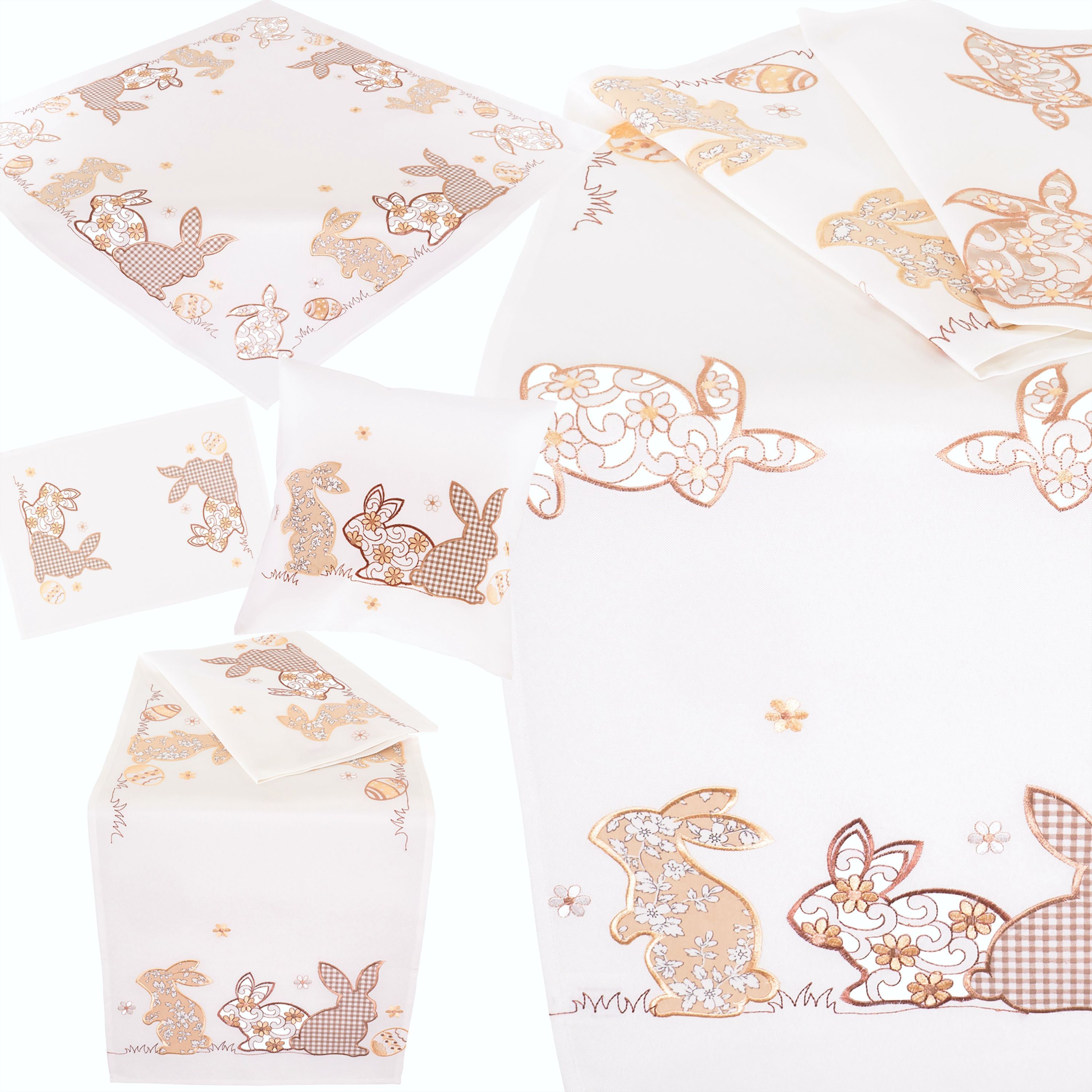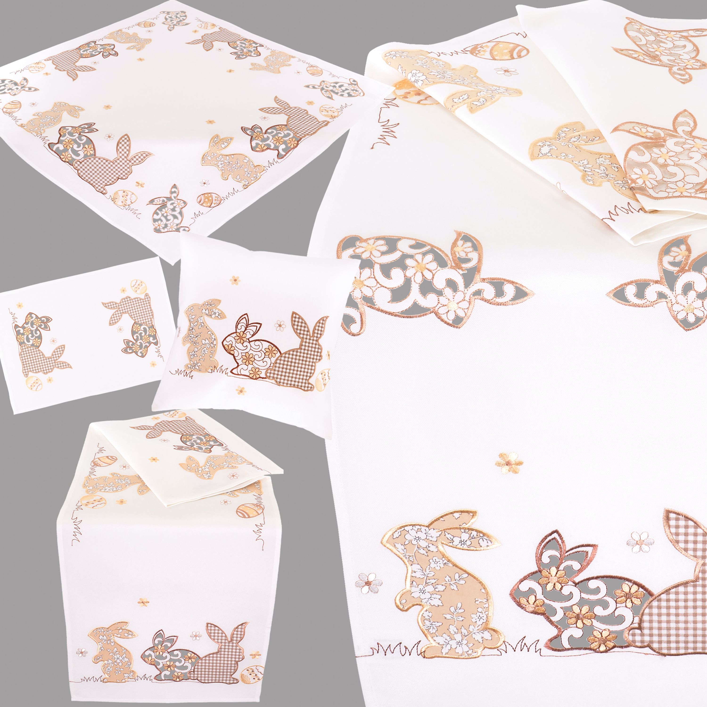 Ostern Weiß Osterhasen Braun Gestickt Osterdekoration Stoff Waschbar
