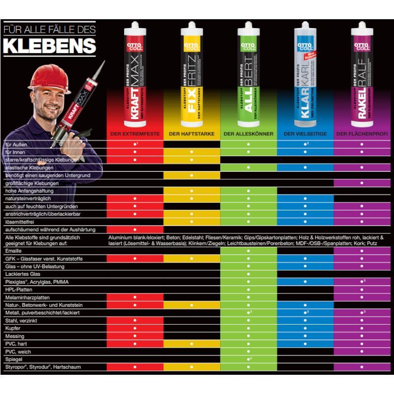 OTTOCOLL® Klarkarl, der Vielseitige 290ml, 1K-Hybrid-Polymer-Klebstoff für innen