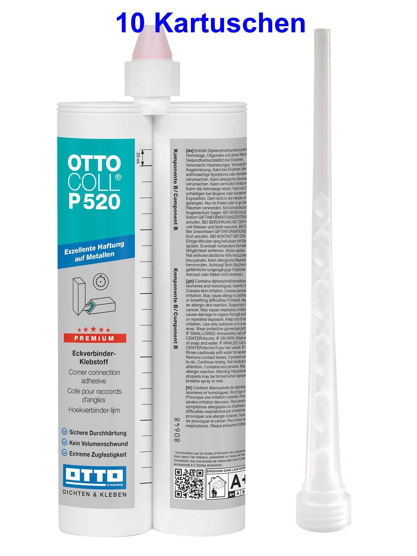 Ottocoll® P520 SP 5276 10 x 620ml olivgelb Zähharter 2K-PU-Klebstoff Kleben von Stein