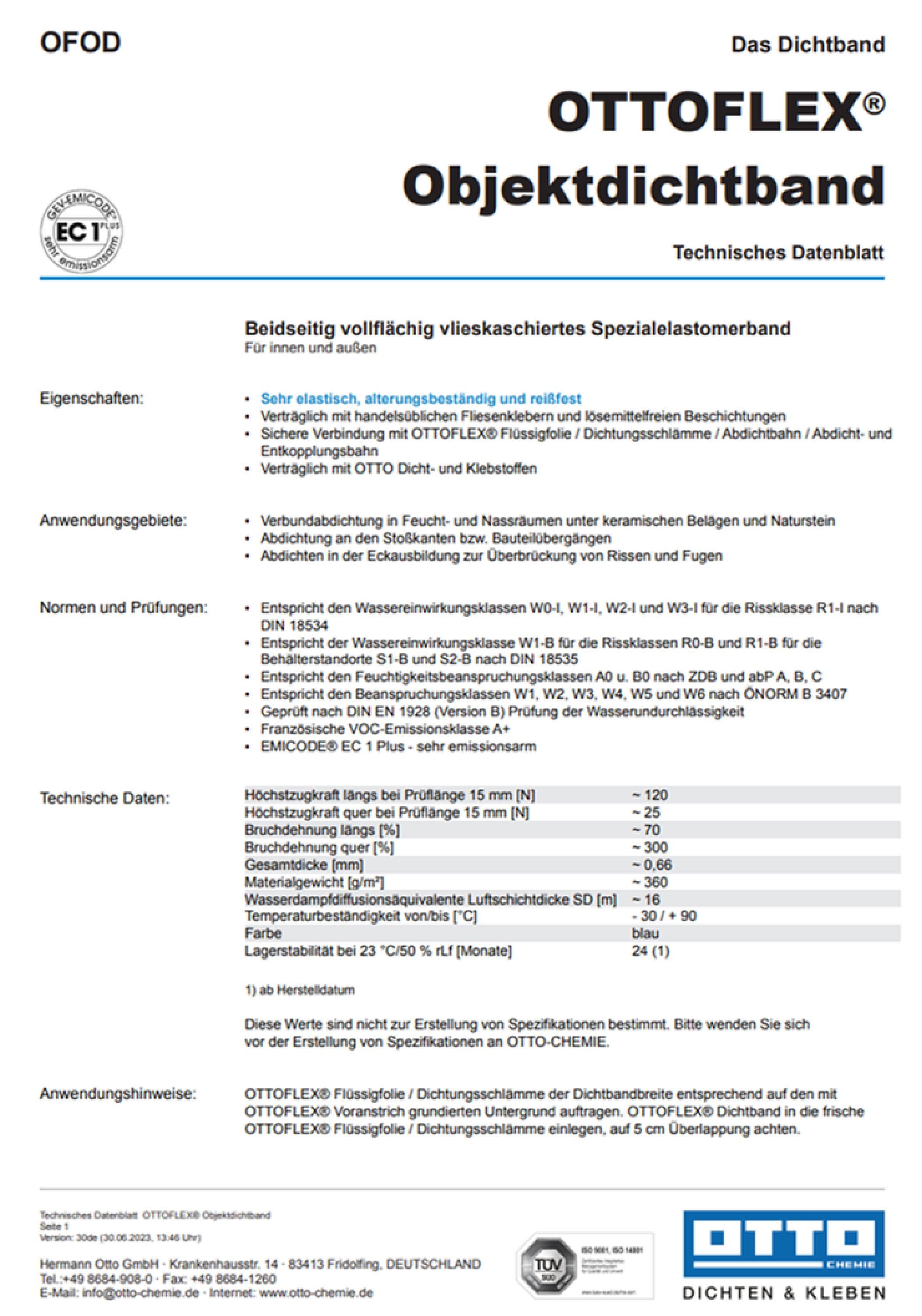 • Ottoflex Objektdichtband Abdichtung Nassräume Bad Dusche Wand Boden Terrasse Balkon