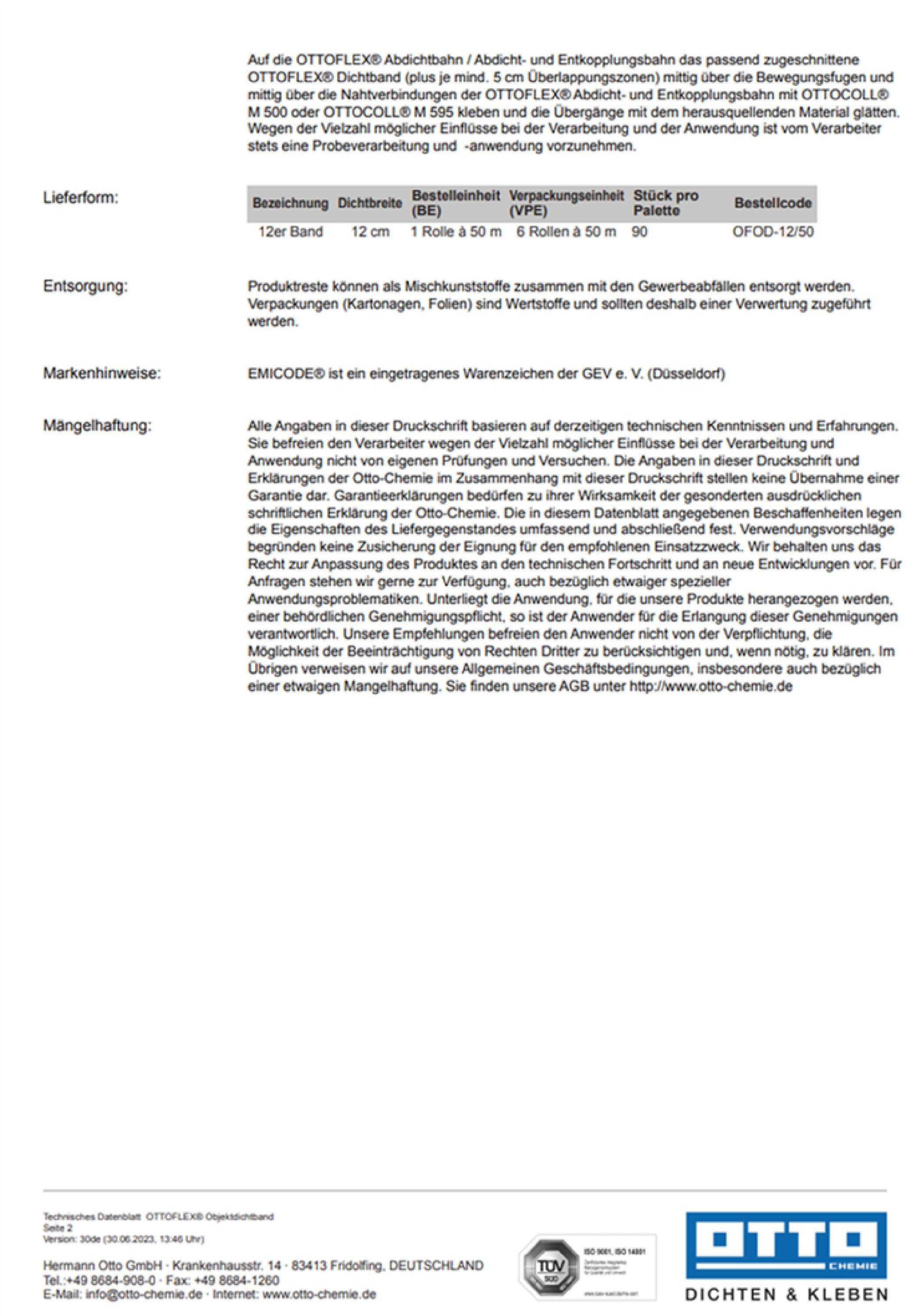 • Ottoflex 12er Objektdichtband 50 lfm Abdichtung Verbundabdichtung Flüssigfolie