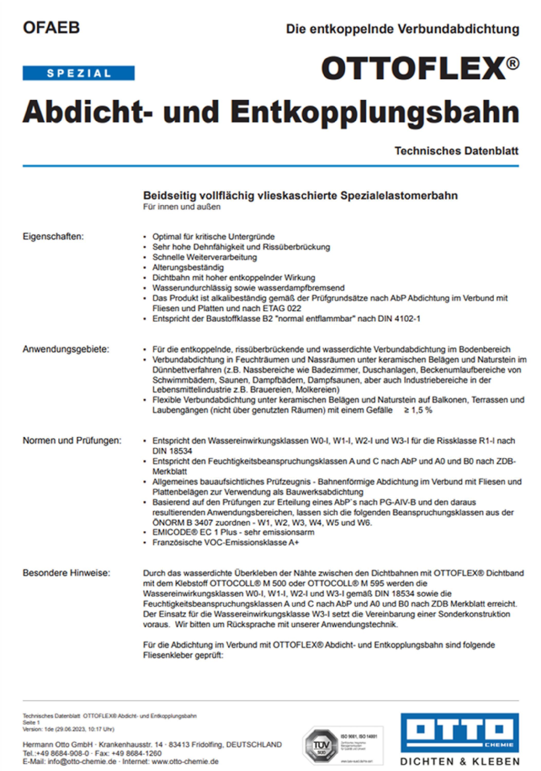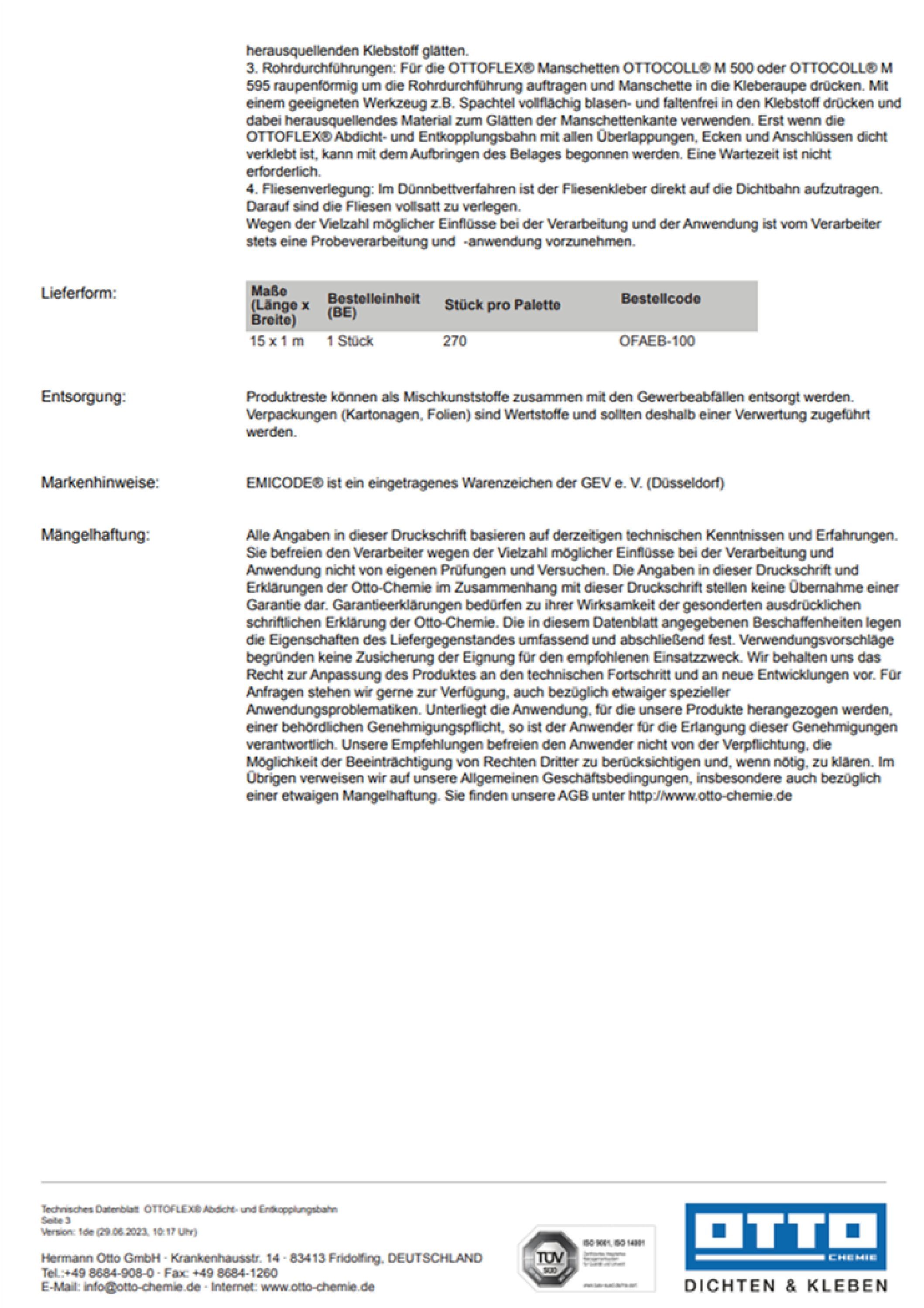 Ottoflex Abdicht- und Entkopplungsbahn 15m² Innen Außen Fliesen Naturstein Dusche