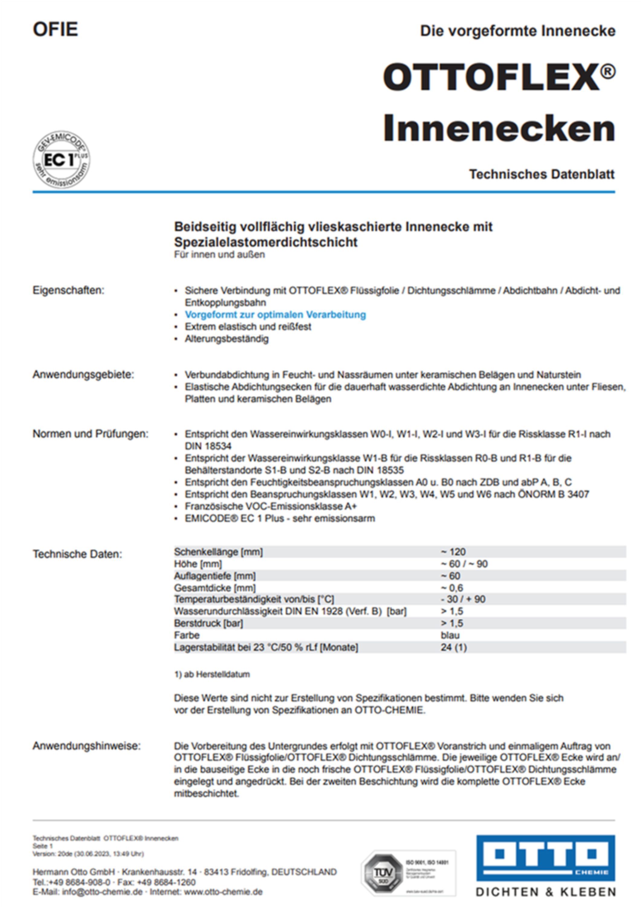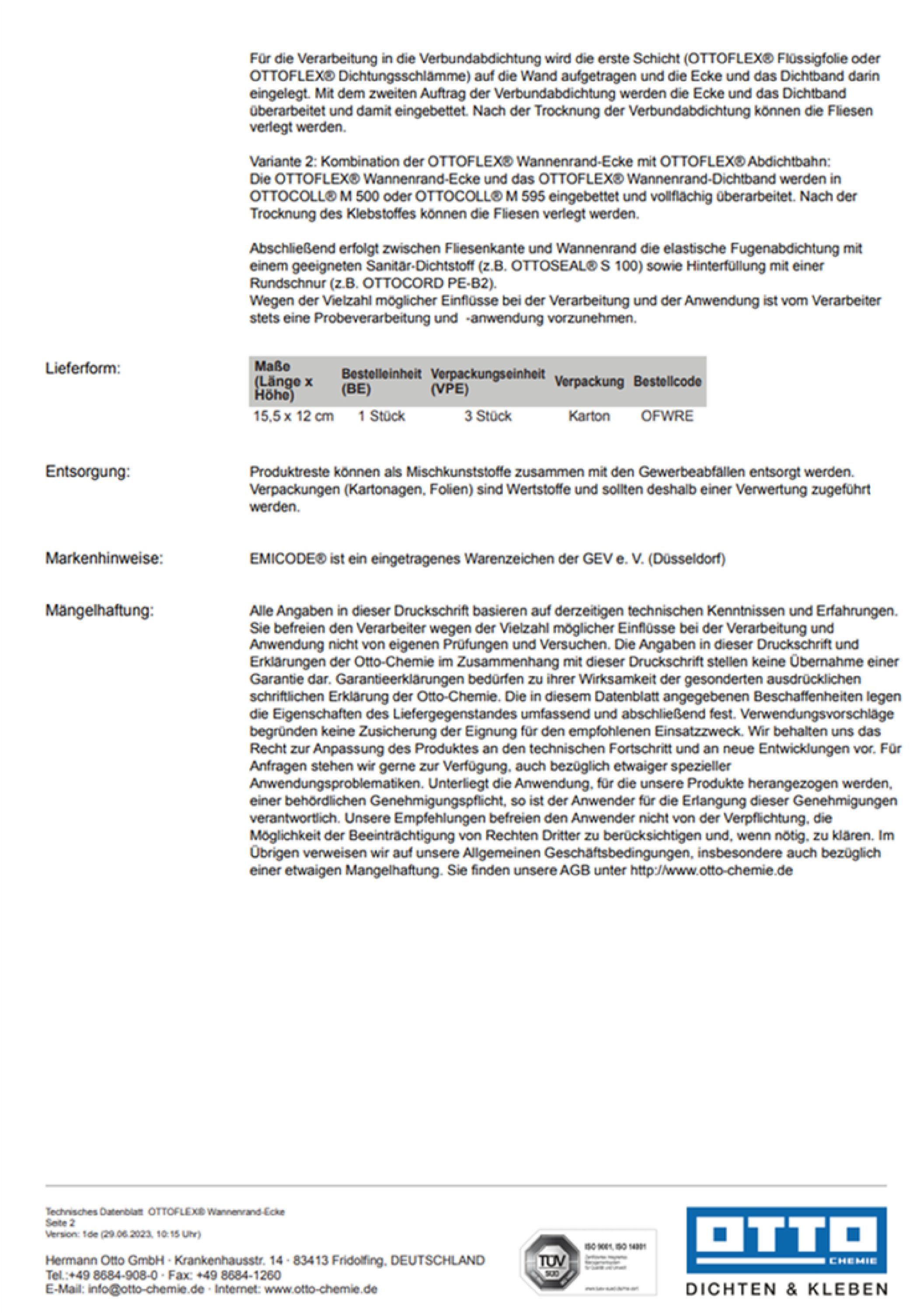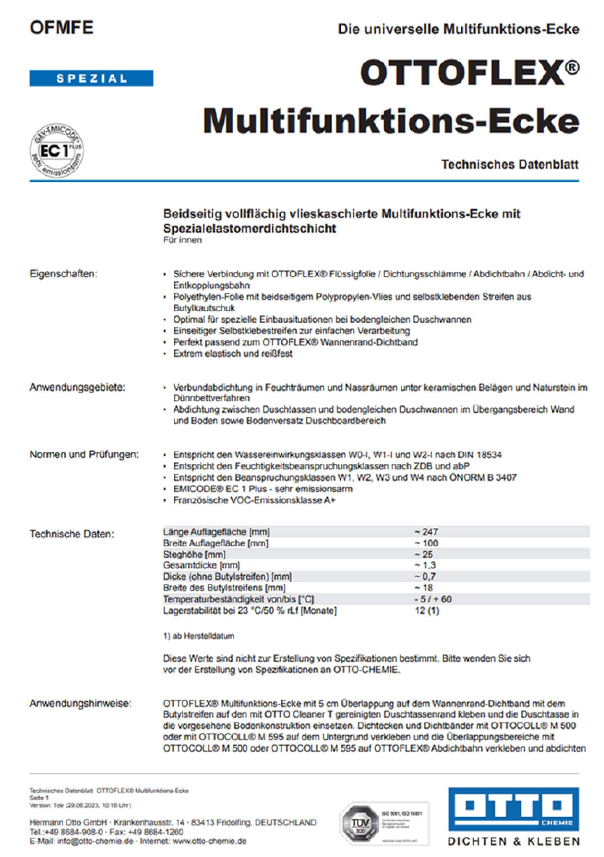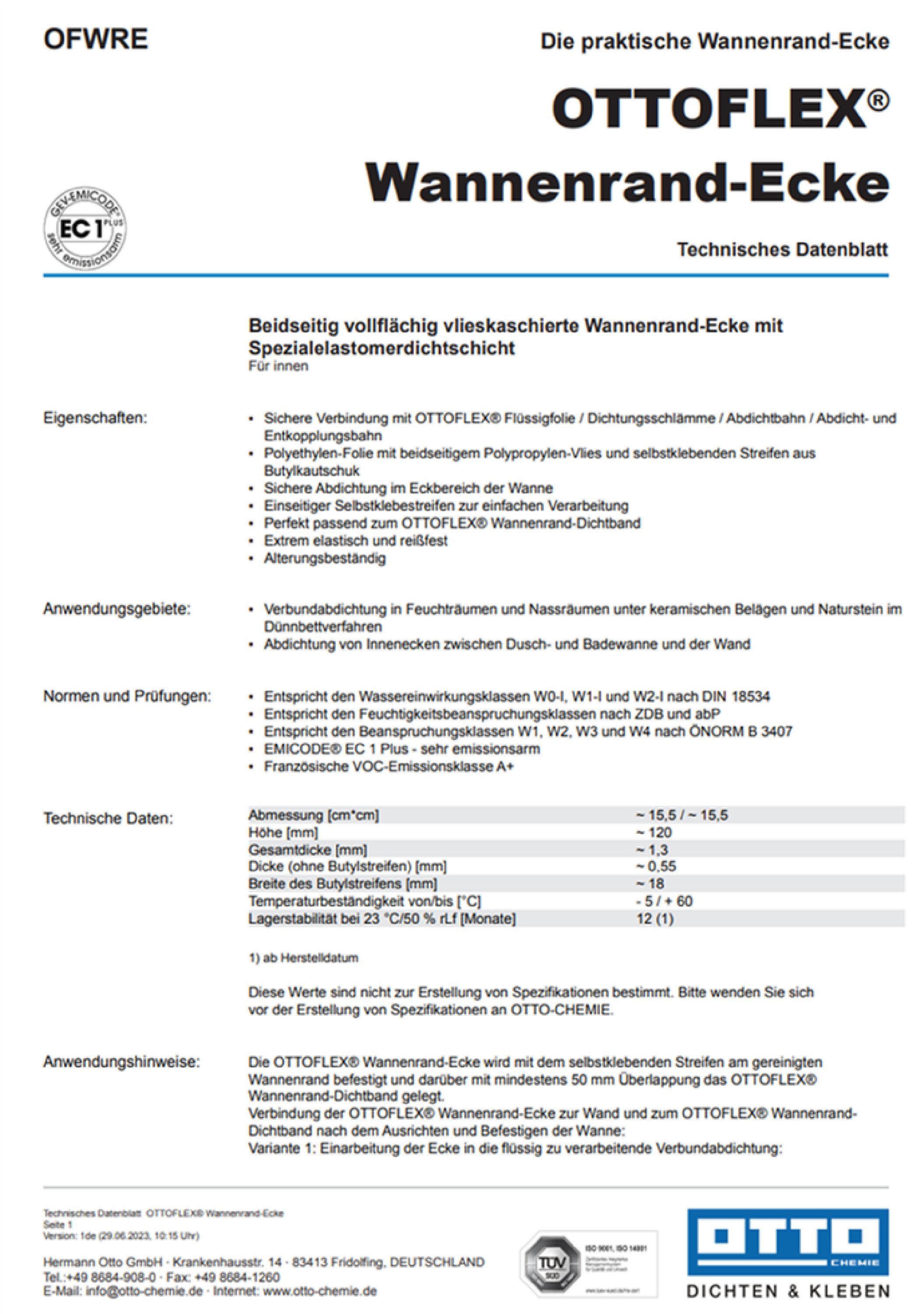 Ottoflex Außenecke Innenecke Wannenrand-Ecke Duschboard-Ecke Dichtband Dusche