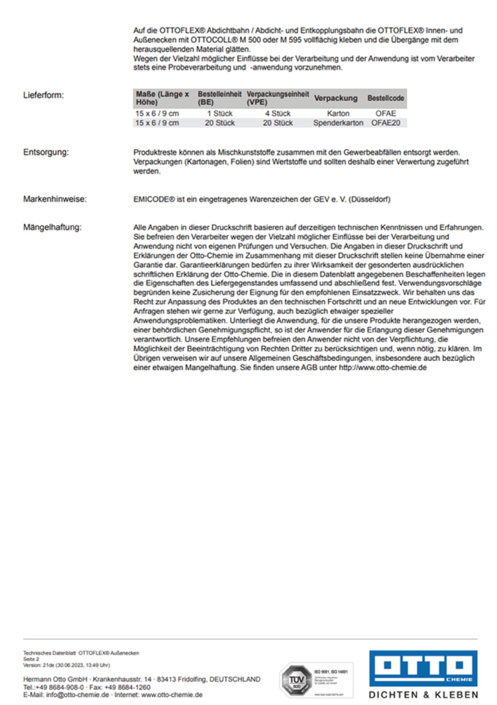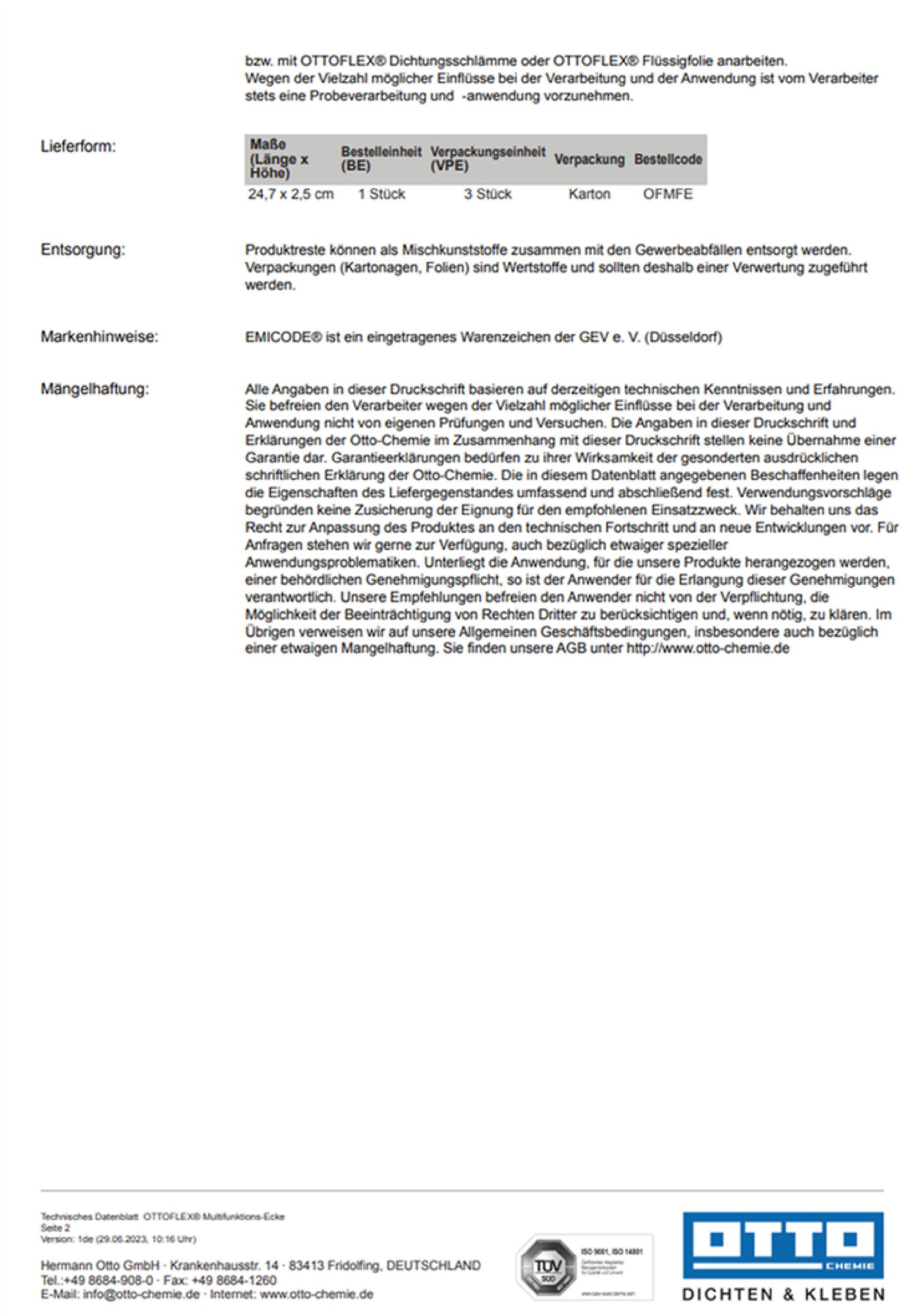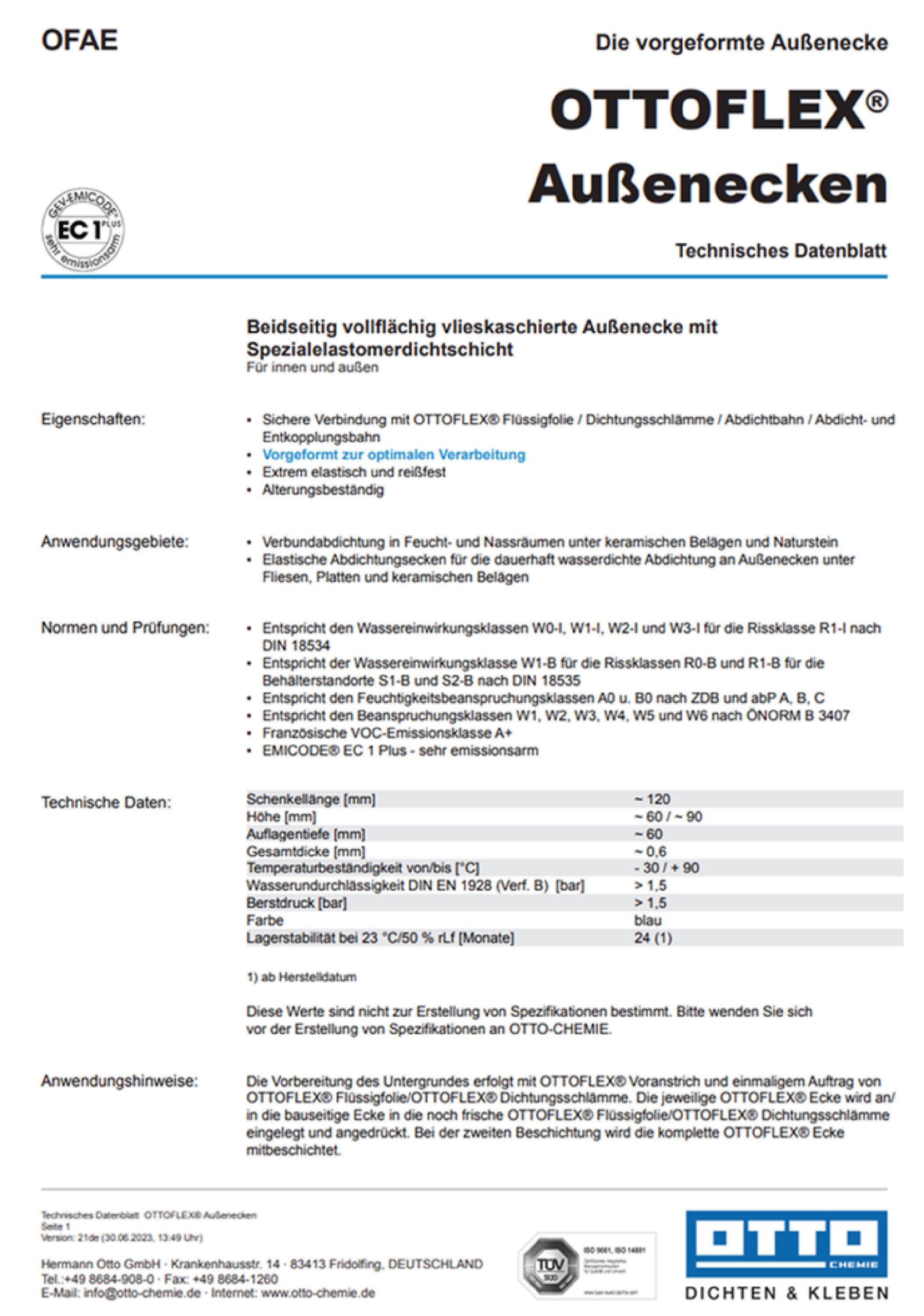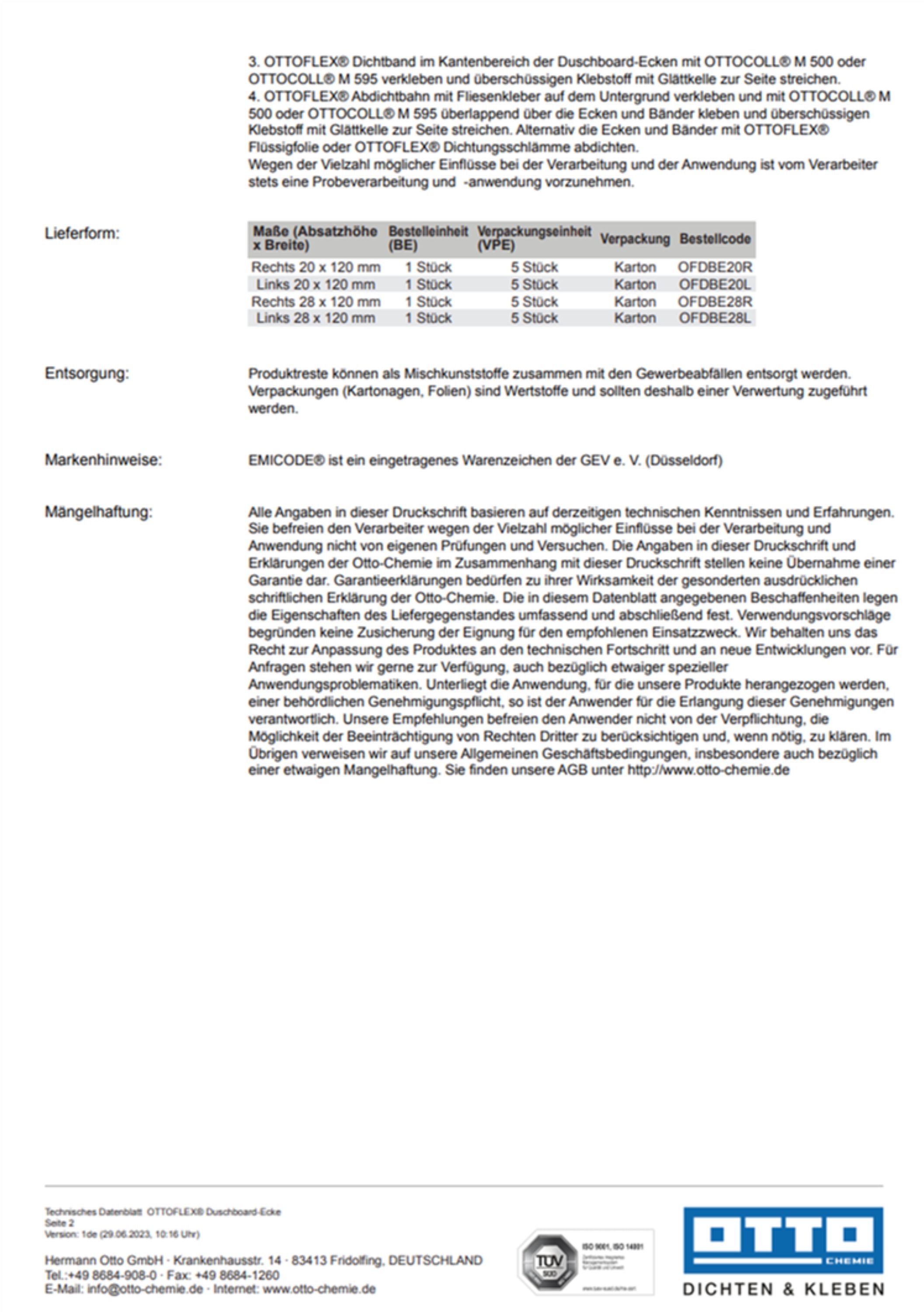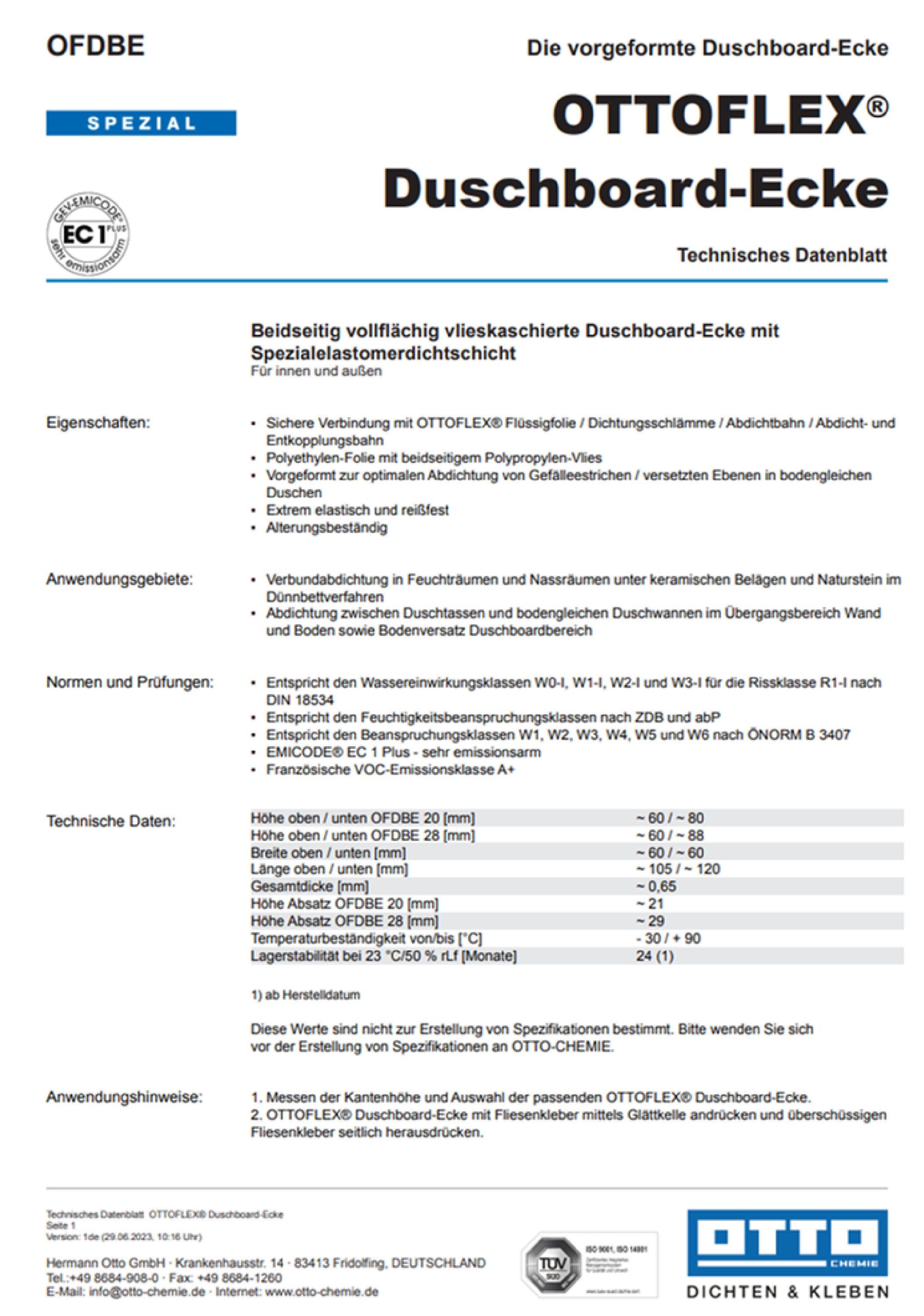 Ottoflex Außenecke Innenecke Wannenrand-Ecke Duschboard-Ecke Dichtband Dusche