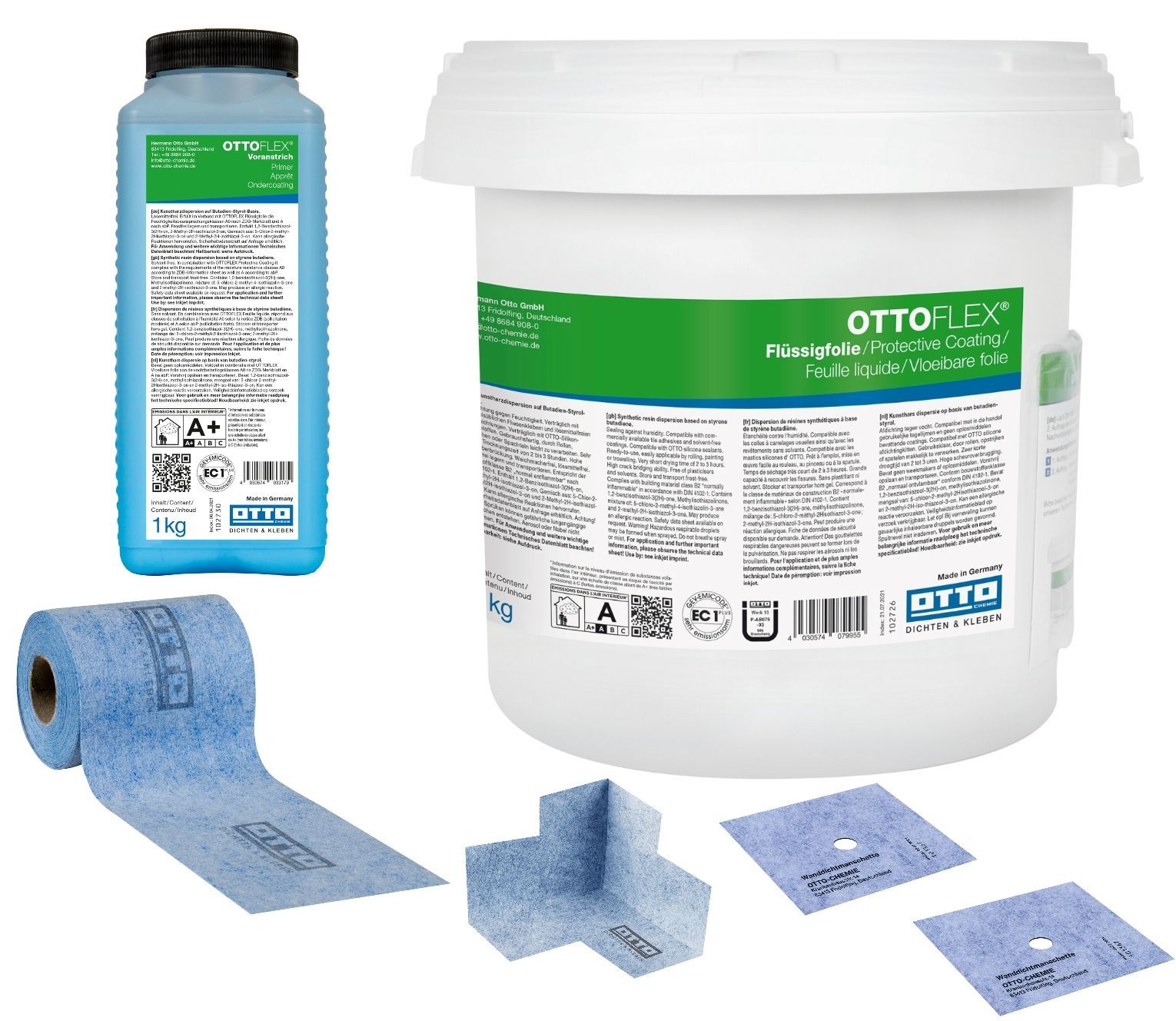 Ottoflex Dichtset mit 7 kg Flüssigfolie Dichtband Wandmanschette Abdichtung Bad