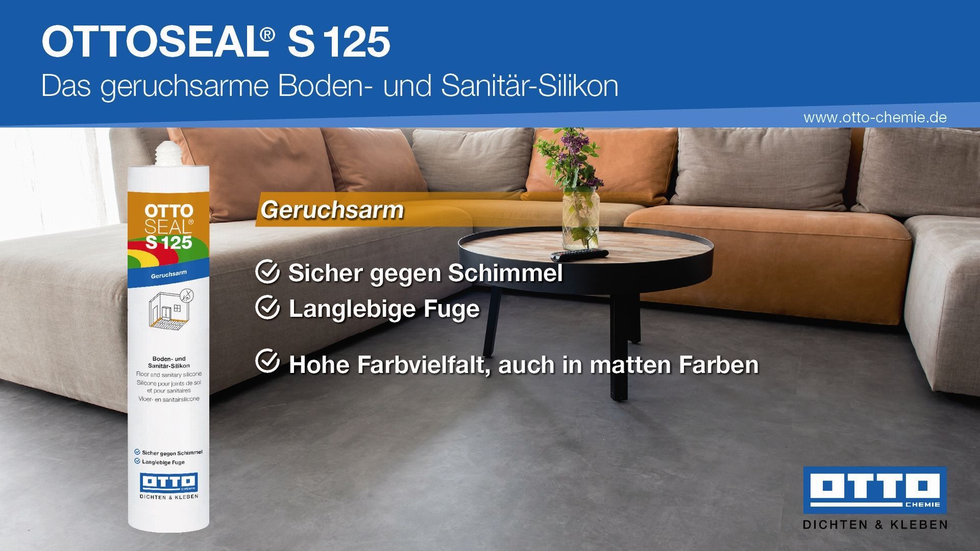 Ottoseal S125 20 x 310 ml geruchsarme Boden- und Sanitär-Silikon Für innen und außen