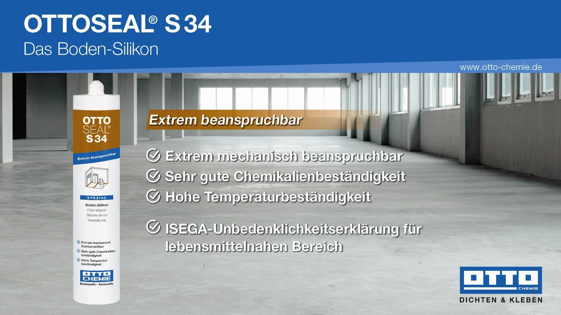 Ottoseal® S34 310 ml Das Boden-Silikon Anschlussfugen in Industrie & Lagerhallen