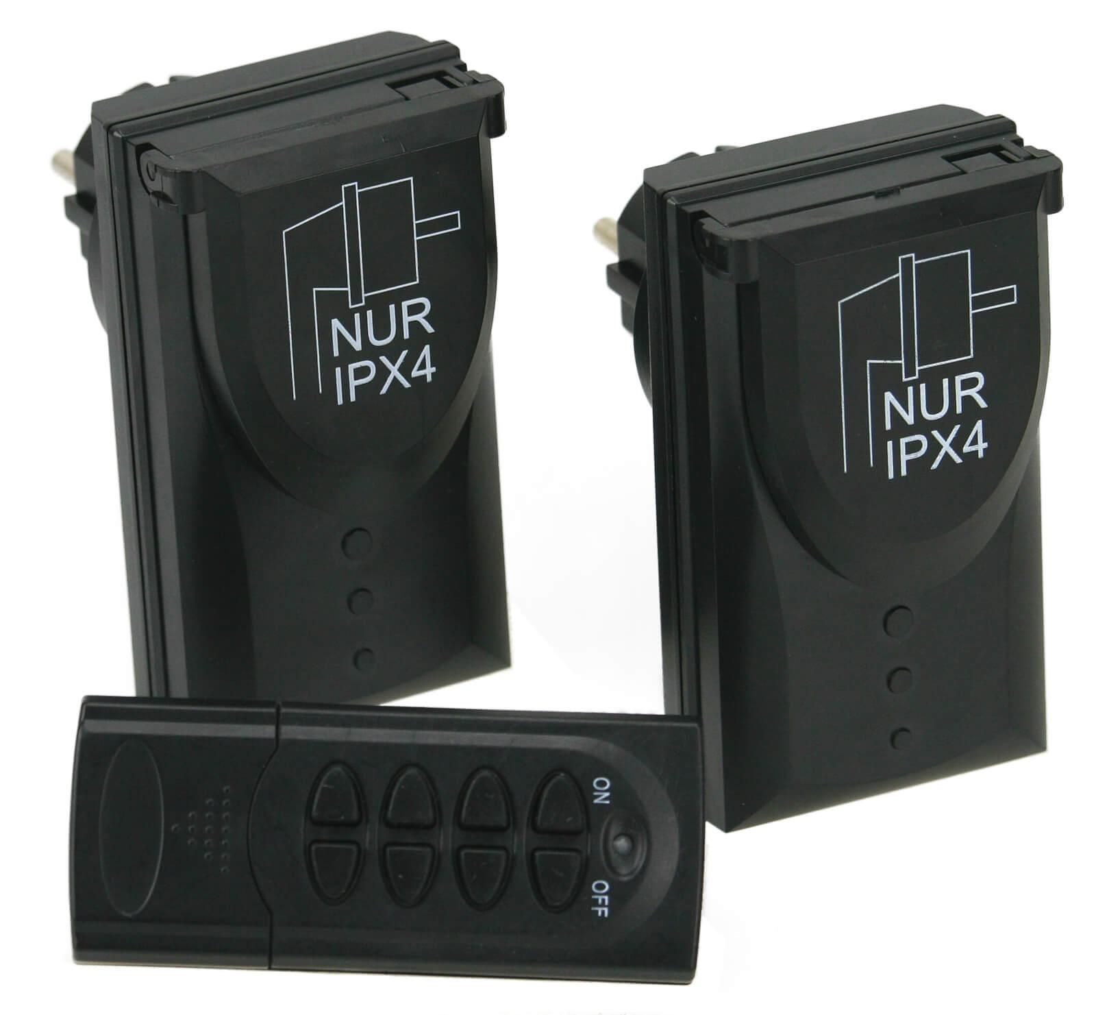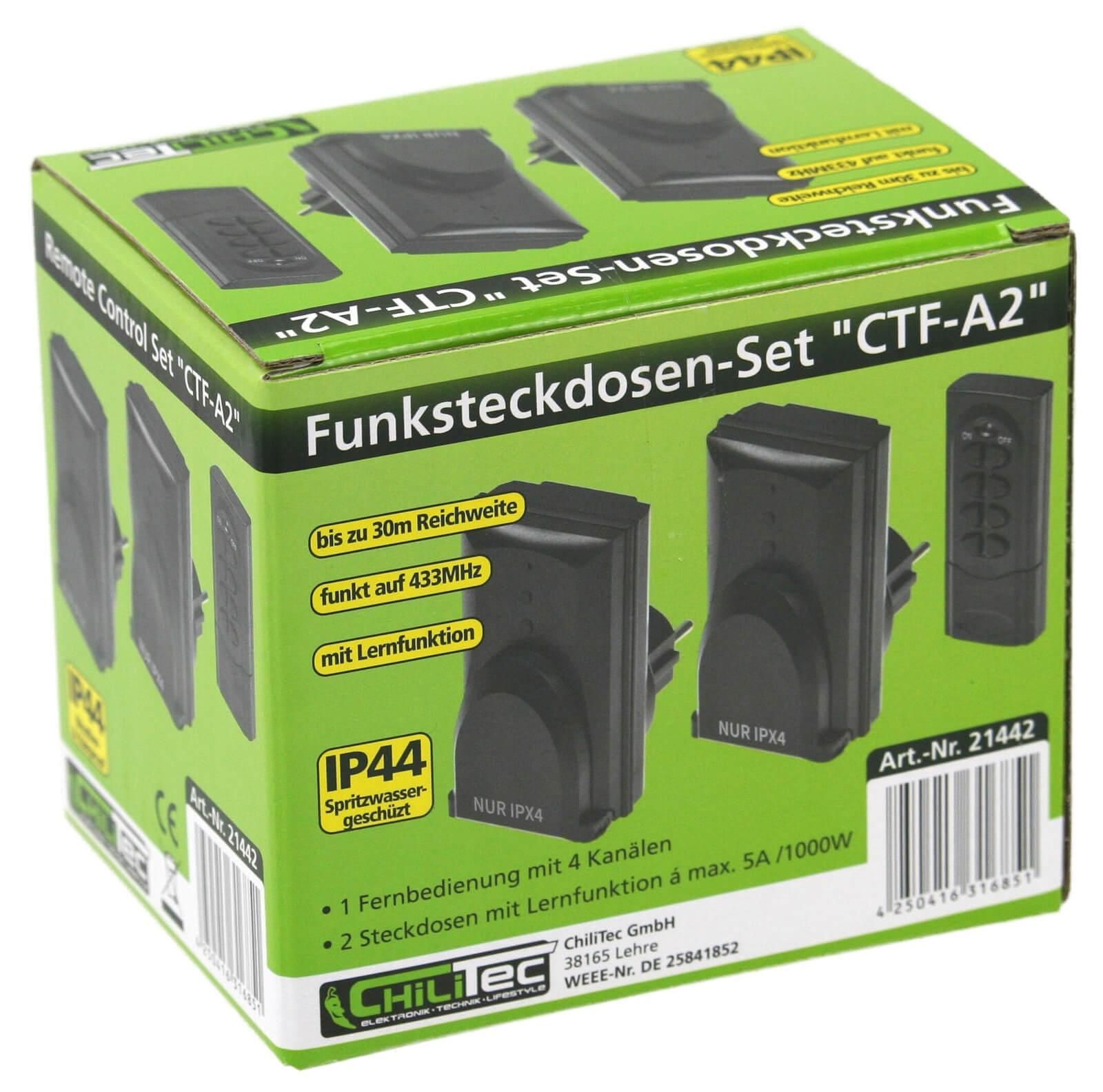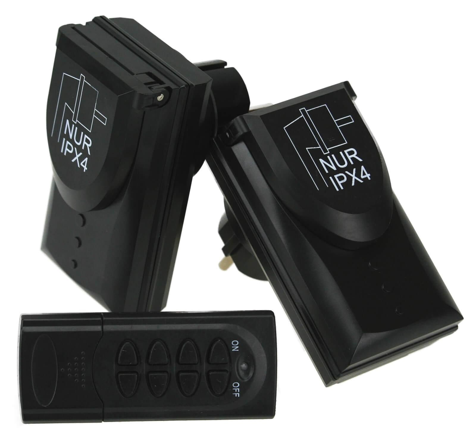 ChiliTec Outdoor Funksteckdosen Set Garten Funk Steckdosen außen mit Fernbedienung IP44