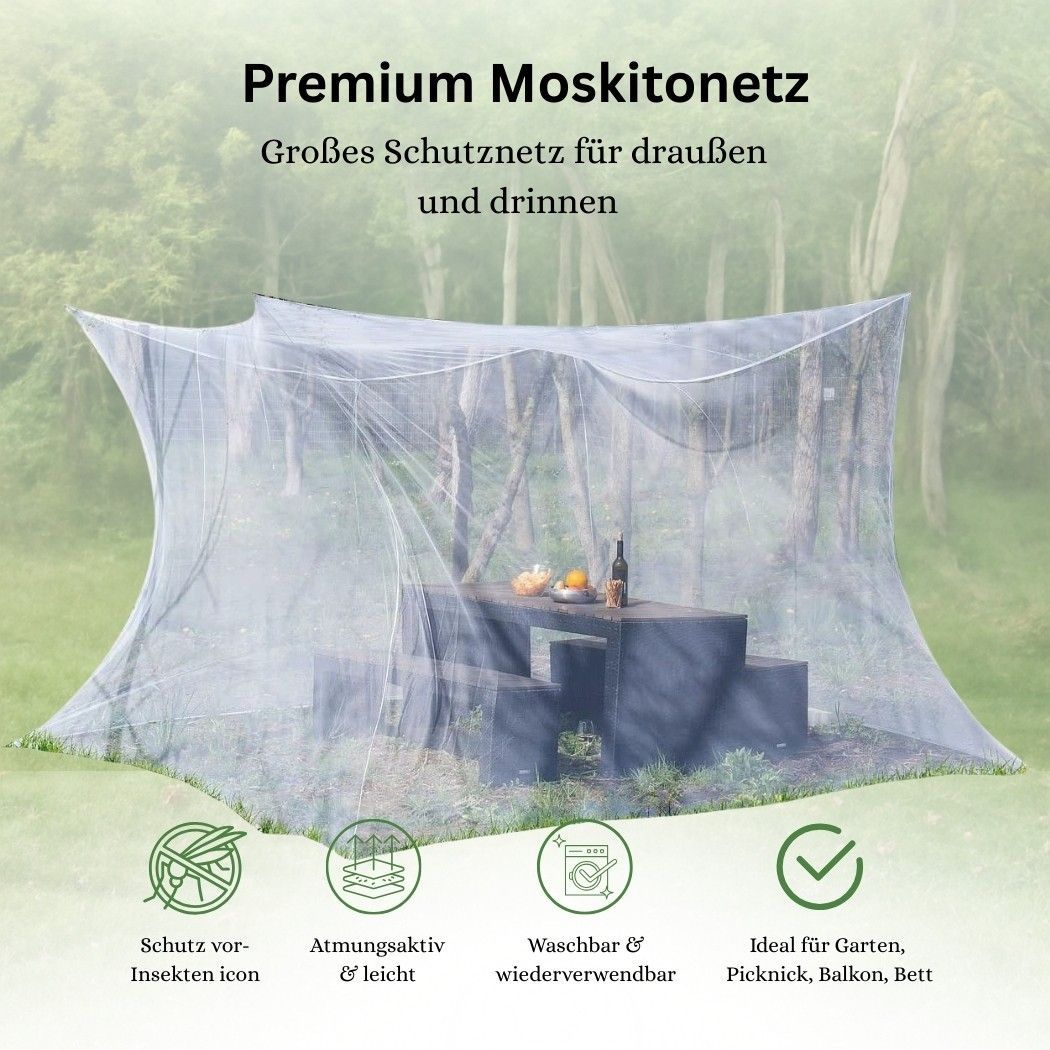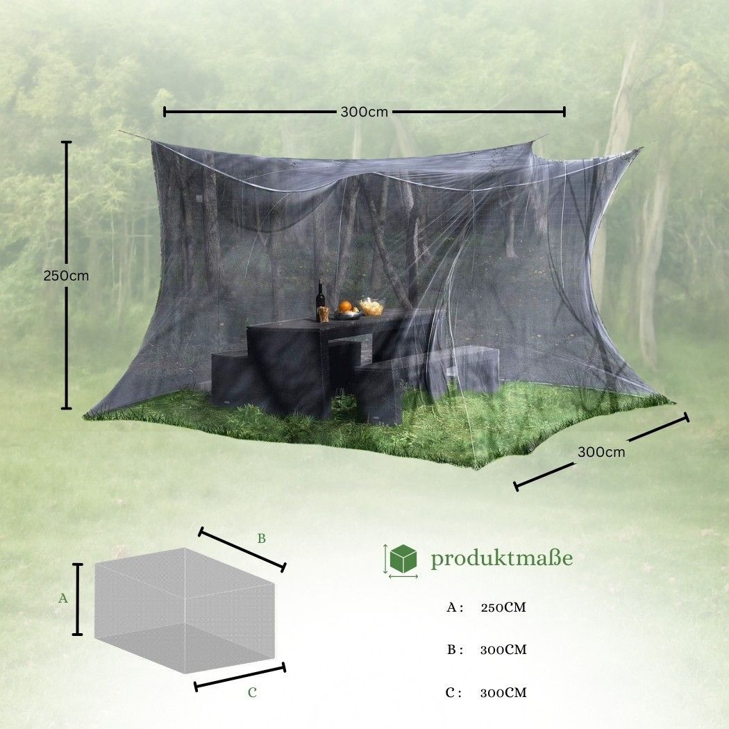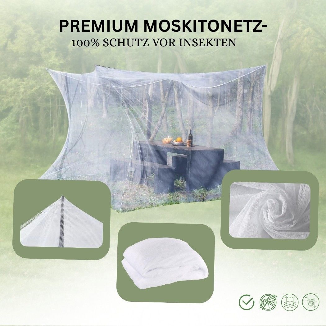 Premium Moskitonetz 300×300×250 cm – Vielseitiger Schutz Dieses große, faltbare Moskitonetz bietet zuverlässigen Schutz vor Insekten – sowohl im Innen- als auch im Außenbereich. Ideal für Schlafzimmer, Betten, Kinderzimmer sowie für Garten, Camping oder Picknick. Gefertigt aus strapazierfähigem Poly