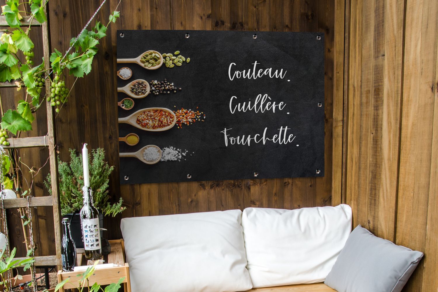 Outdoor-Poster Gartenposter 120x90 cm Besteck - Zitate - Sprichwörter - Couteau. Cul