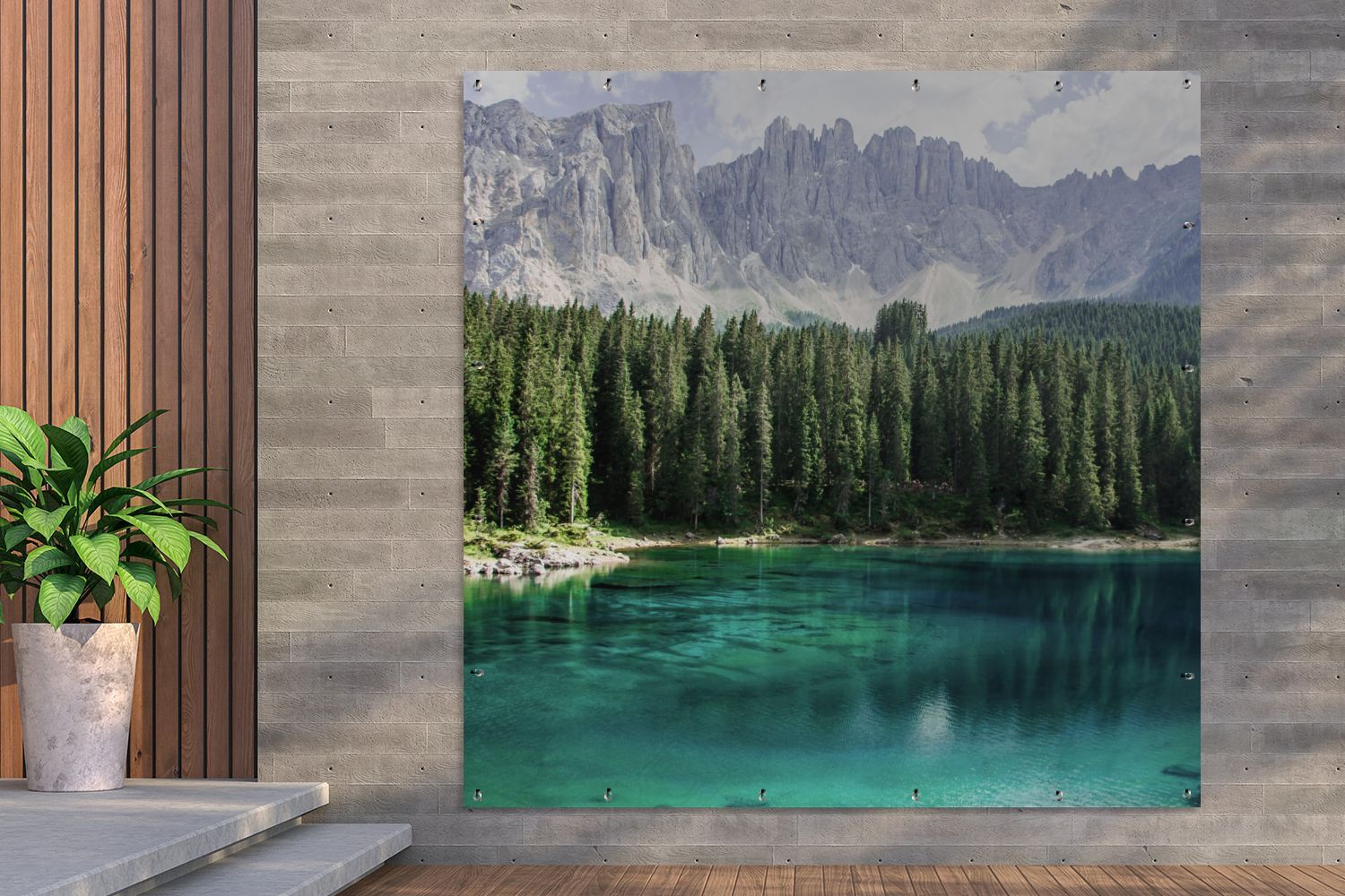 Outdoor-Poster Gartenposter 200x200 cm Berge - Bäume - Wasser (Gr. 200x200 cm)