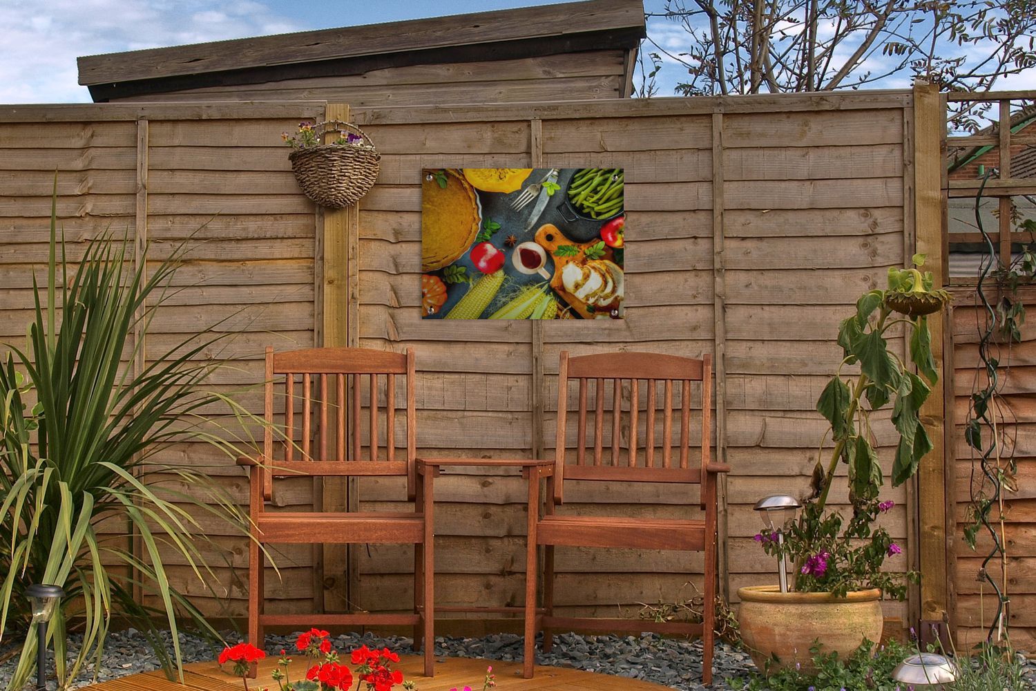 Outdoor-Poster Gartenposter 40x30 cm Gemüse - Gewürze - Besteck - Kuchen