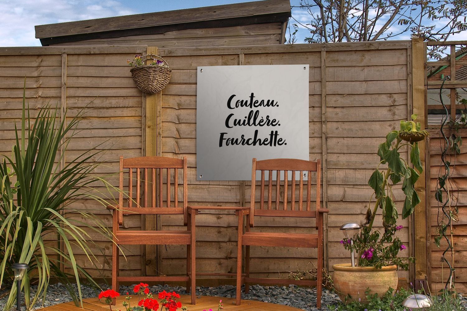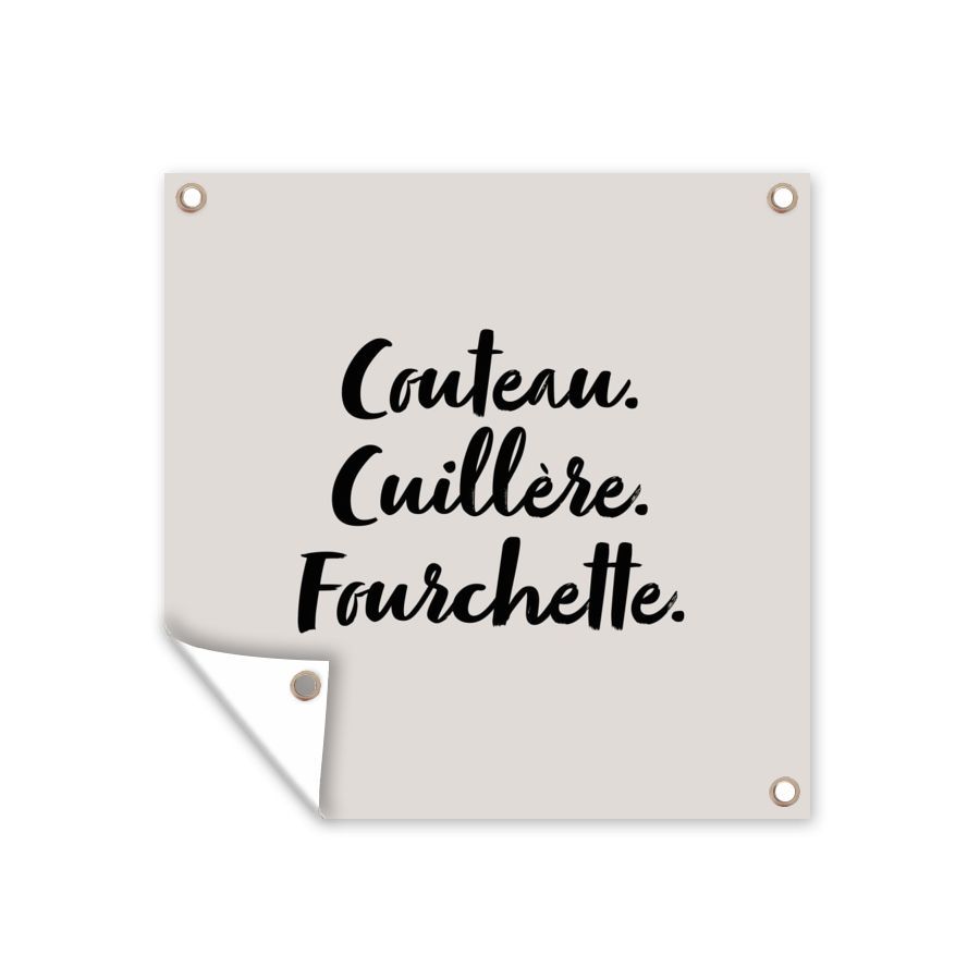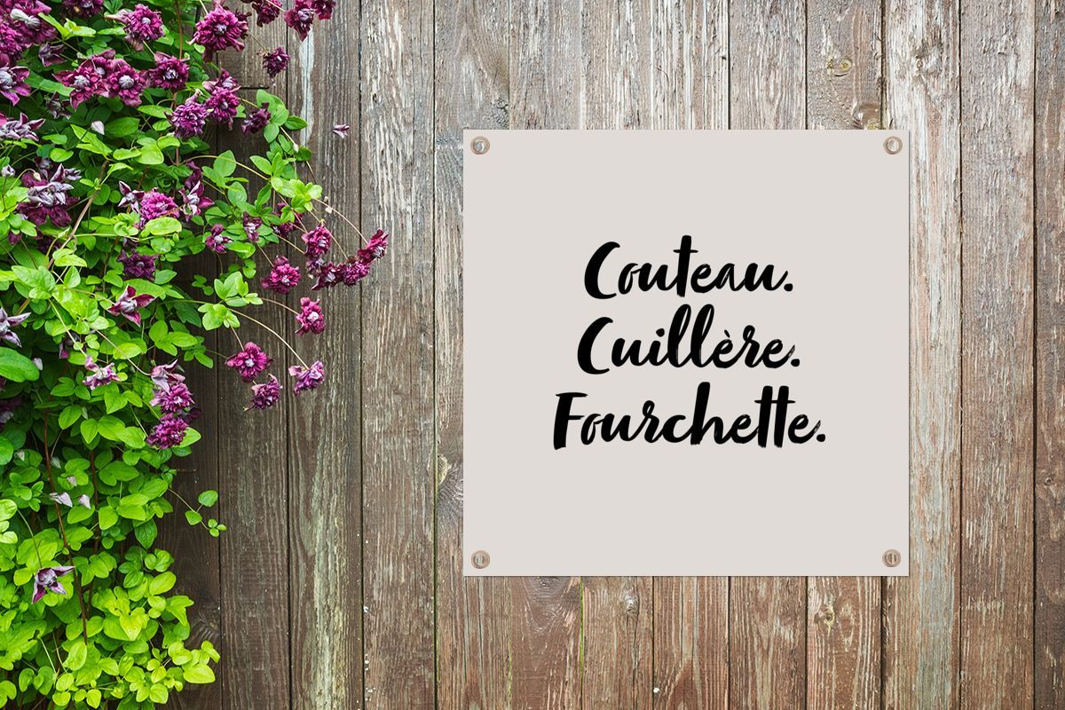 Outdoor-Poster Gartenposter 50x50 cm Besteck - Zitate - Couteau. cuillère. fourchett