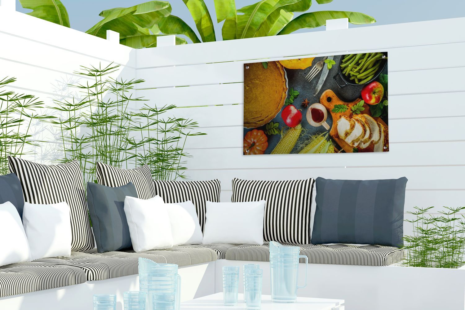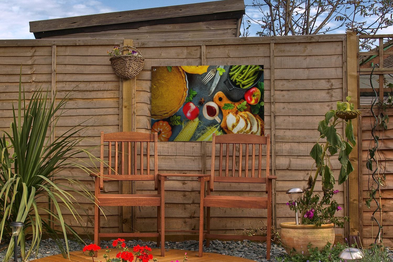 Outdoor-Poster Gartenposter 60x40 cm Gemüse - Gewürze - Besteck - Kuchen