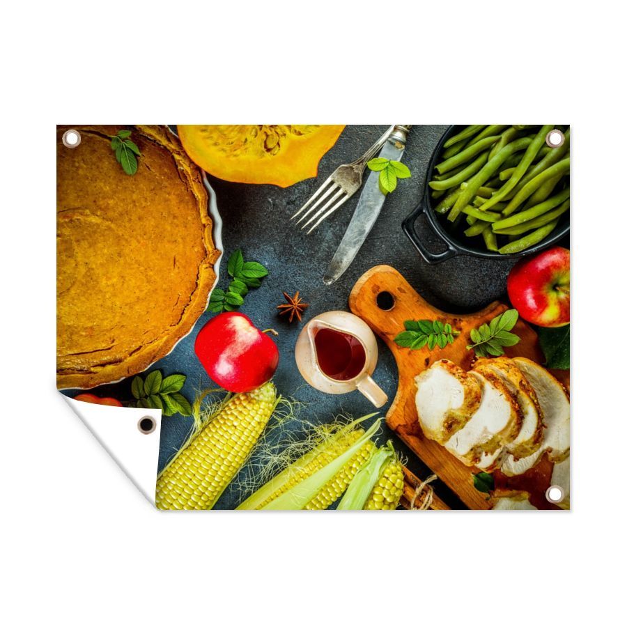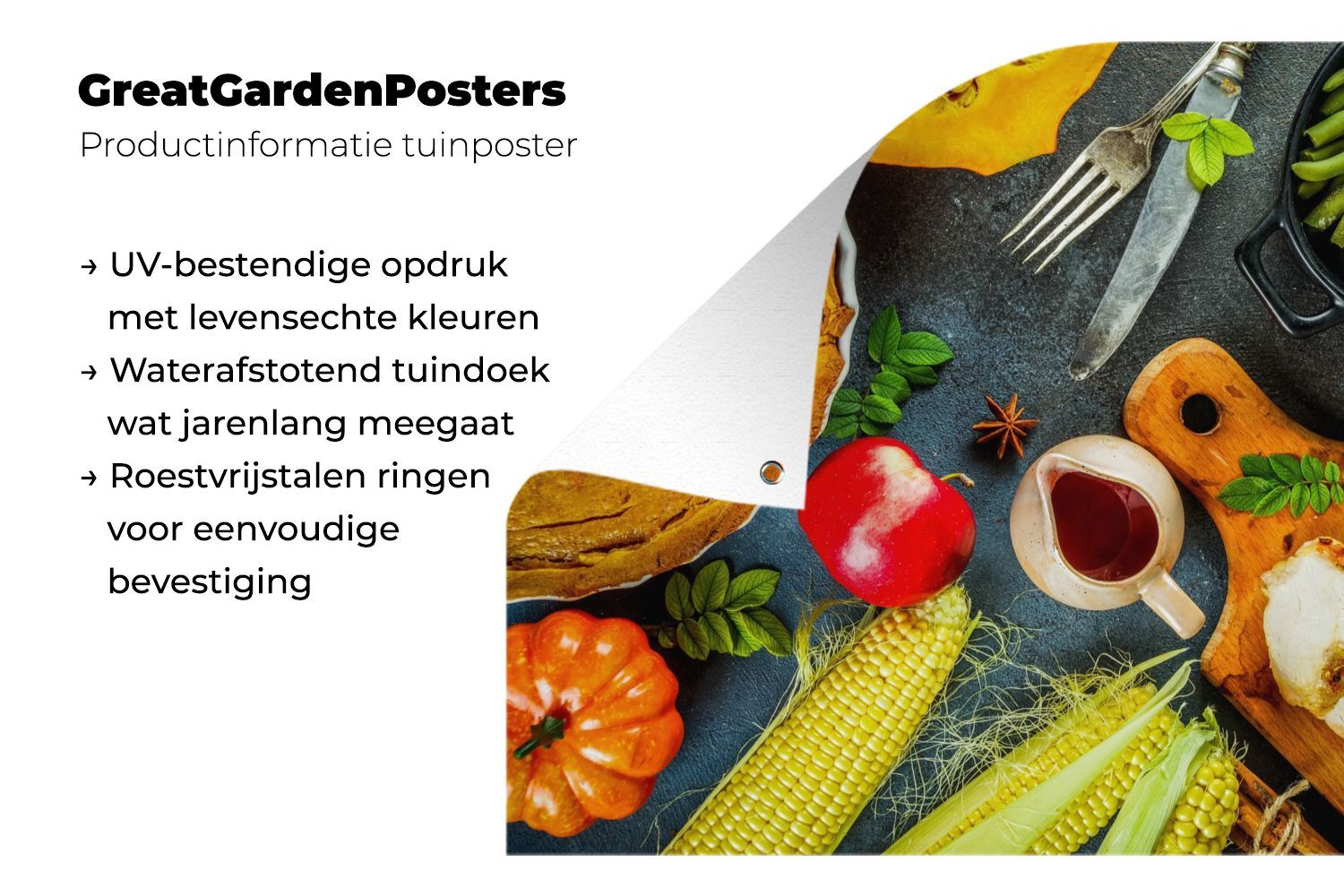 Outdoor-Poster Gartenposter 80x60 cm Gemüse - Gewürze - Besteck - Kuchen