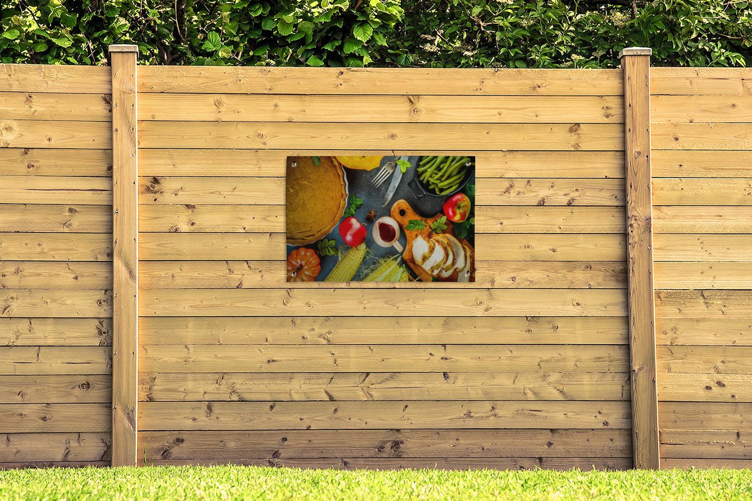Outdoor-Poster Gartenposter 90x60 cm Gemüse - Gewürze - Besteck - Kuchen