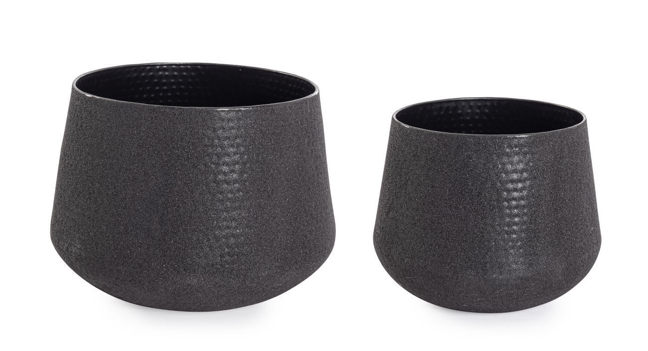 Outdoor-Vase Kenar 2er-Set aus Metall, modern handgefertigt, niedrig, schwarz, für Ga