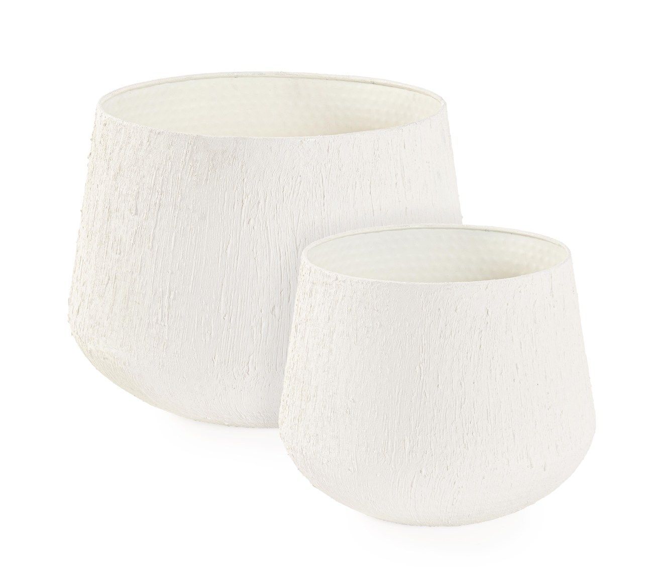 Outdoor-Vase Kenar 2er-Set aus Metall, modern handgefertigt, niedrig, weiß, für