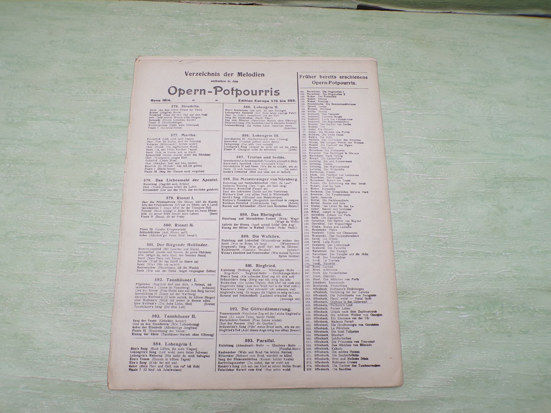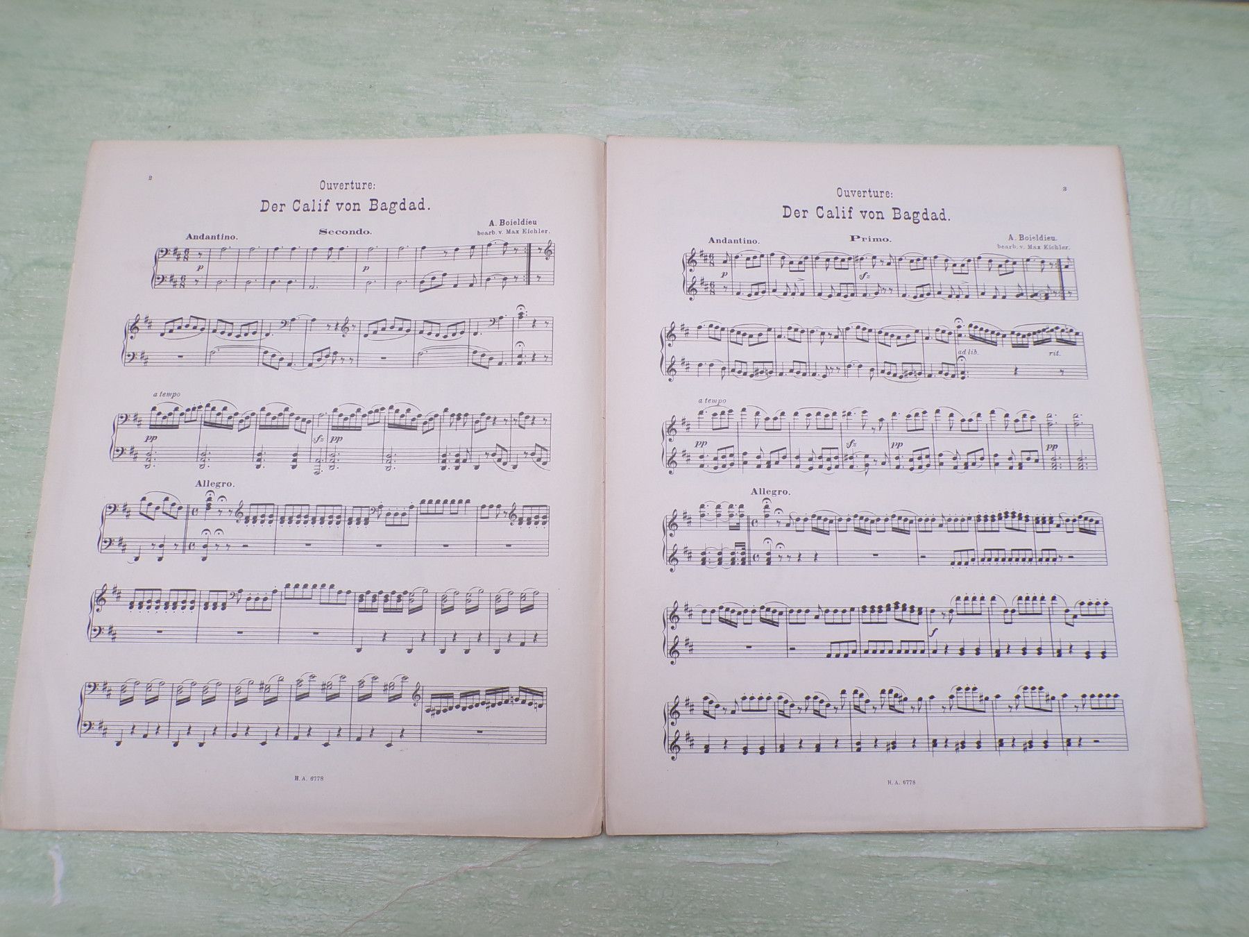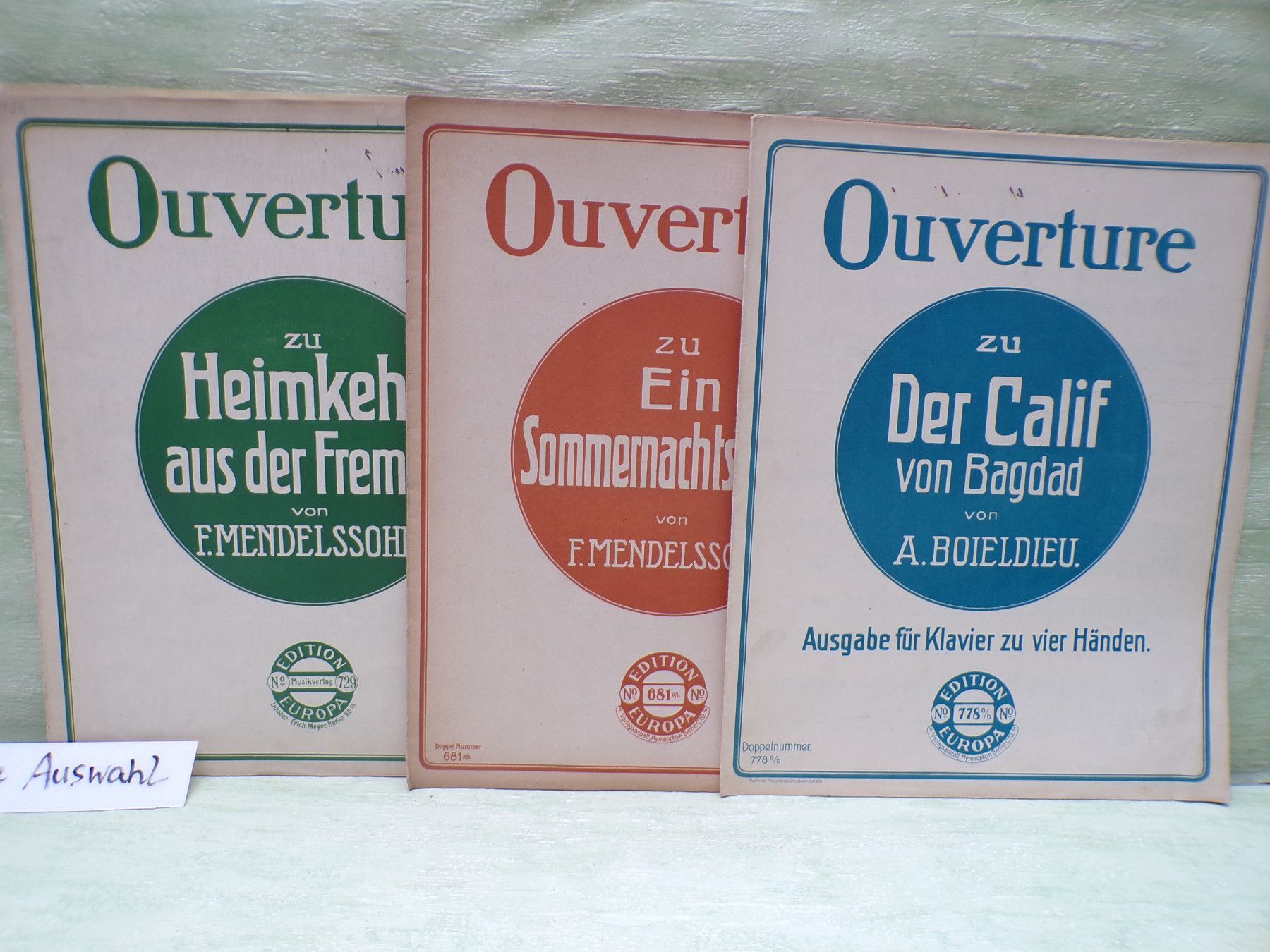 ... Erinnerungen ..... Ouverture . Edition Europa Verlagsanstalt Hymnophon Berlin Berliner Musikalien Druckerei GmbH Inhaber Erich Meyer , Berlin je ca 34x27cm . -Auswahl- : Der Calif von Bagdad von A. Boieldieu Ausgabe für Klavier zu vier Händen Doppelnr 778a b 12 Seiten . oder und . Ein Sommernach