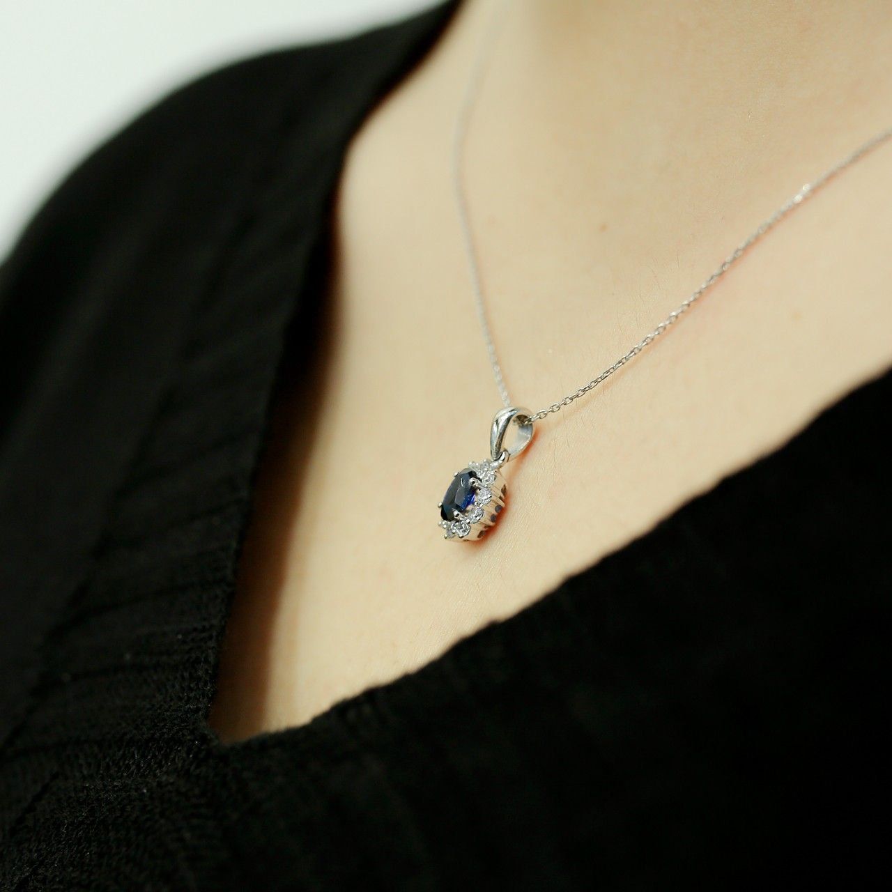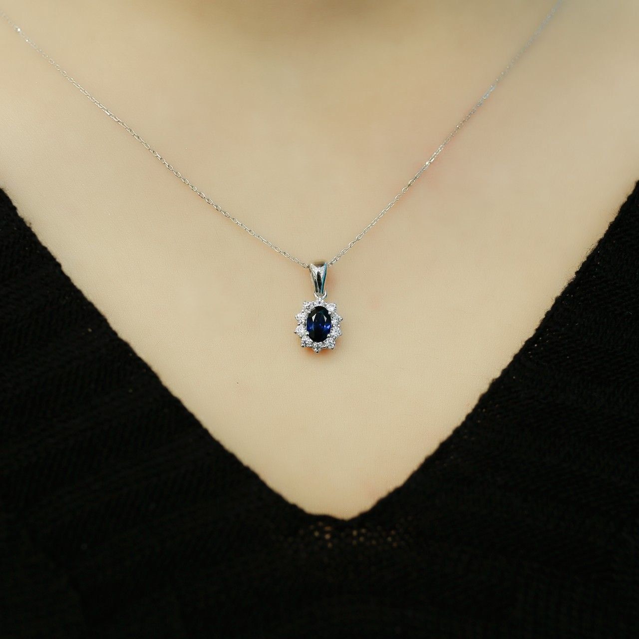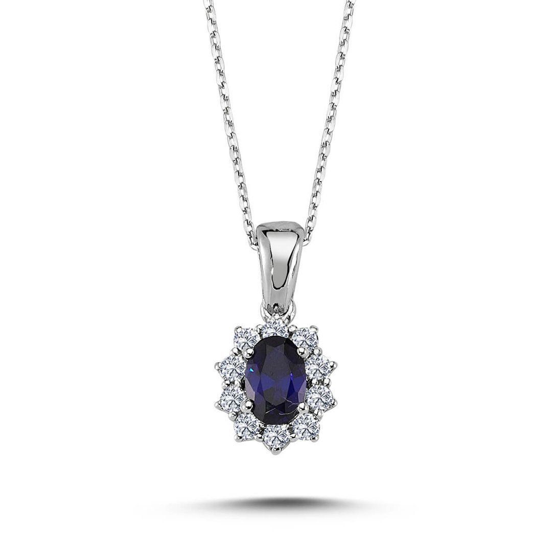 Ovaler Saphir Diamanten Entourage Vintage Style Collier Halskette14 Karat Weißgold