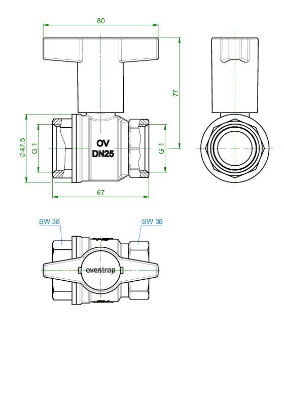 Oventrop Oventrop-kugelhahn "Optibal", nebelgriff DN25, 1"IG, PN16, Messing