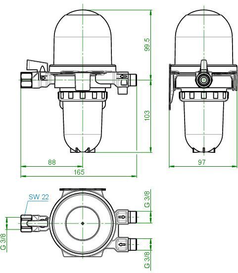 Oventrop Oventrop Ölfilter/Entlüfter "Toc-Duo-3" G3/8 IG x G3/8 AG, Siku 25-40my