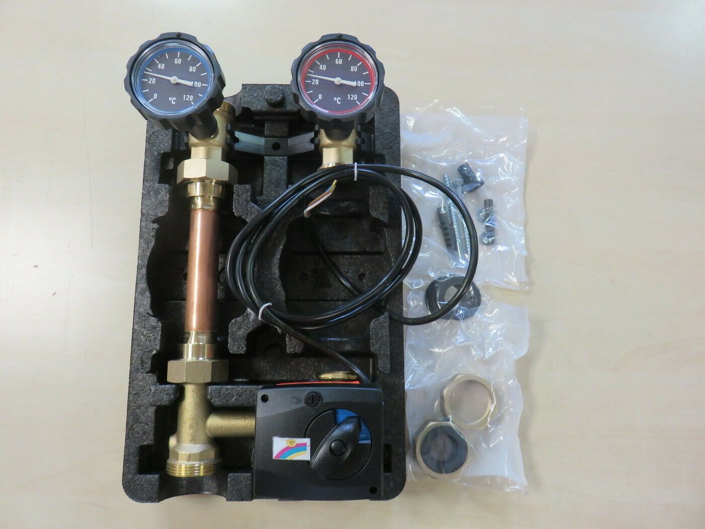 OVENTROP Station Regumat M3-180 kurze Bauform, ohne Pumpe + Pumpe Grundfos Alpha1 25 60 Regumat M3-180 DN 25 kurze Bauform - gemischter Heizkreis mit Dreiwegemischer mit Sperrventil und Stellmotor, mit universeller, modular aufgebauter Wärmedämmung. Geeignet für den Einbau von folgenden Hocheffzienp