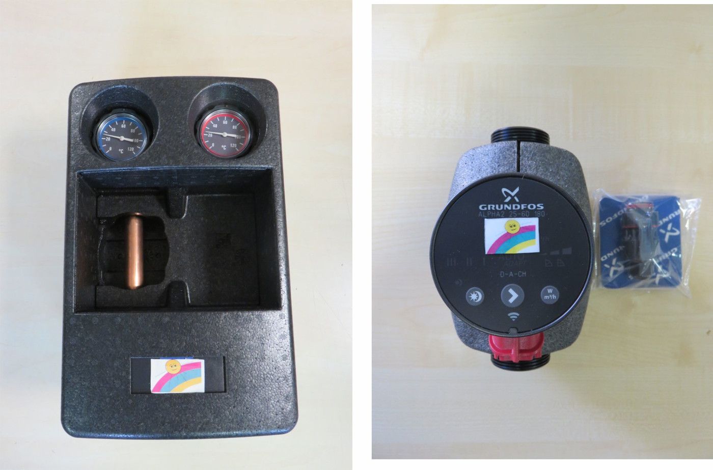 Oventrop Pumpengruppe Regumat S180 kurze Bauform + Grundfos Pumpe Alpha2 25 60 Set besteht aus nachfolgenden Artikeln: OVENTROP Station Regumat S-180 kurze Bauform, ohne Pumpe Regumat S180 DN 25 kurze Bauform - ungemischter Heizkreis mit universeller, modular aufgebauter Wärmedämmung Geeignet für de