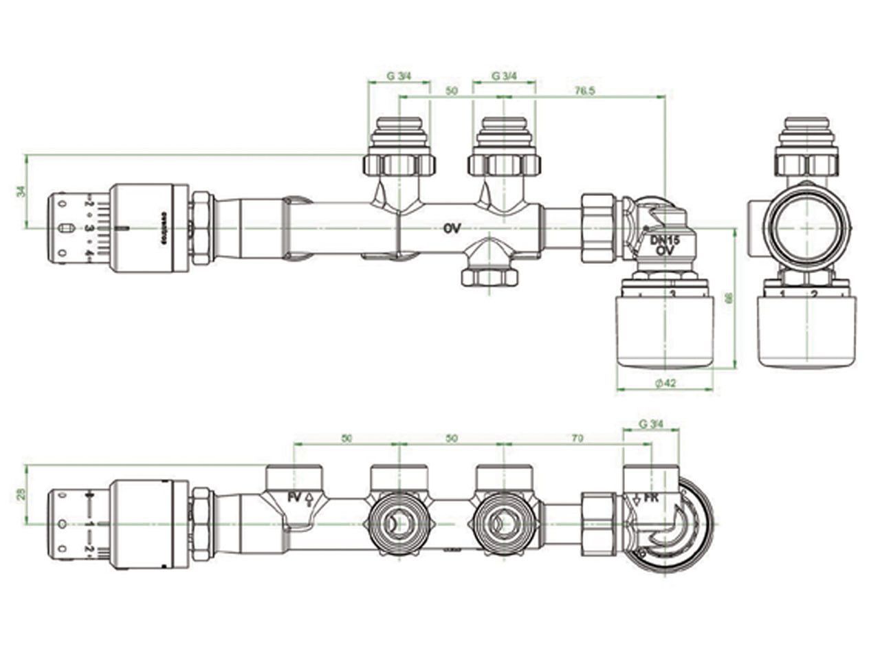 Oventrop Oventrop Set Multiblock T-RTL Rücklauftemperaturbegrenzer Badheizkörper 1184188