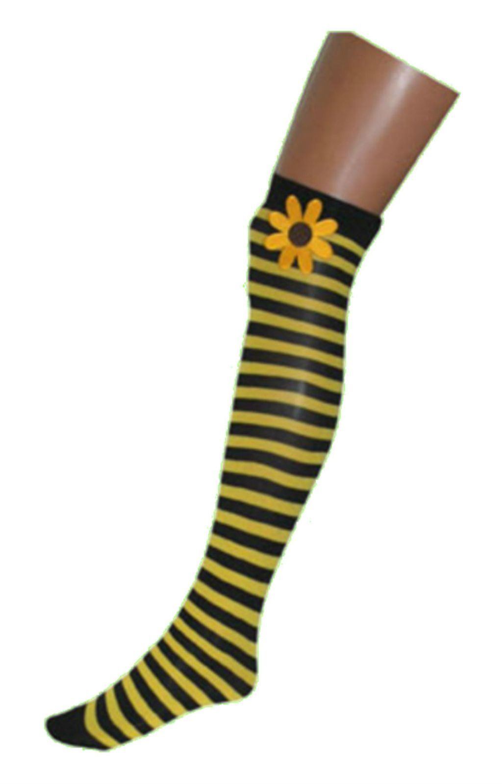 funny fashion Overknees m. Blume Biene Hippie Gärtner Langstrümpfe Strümpfe Karneval Fasching