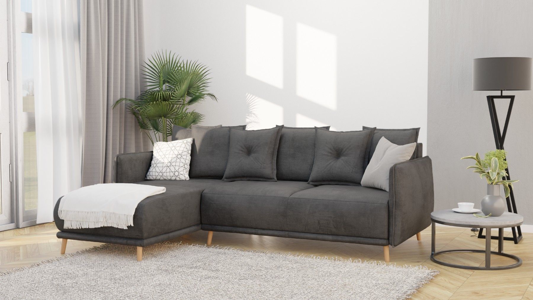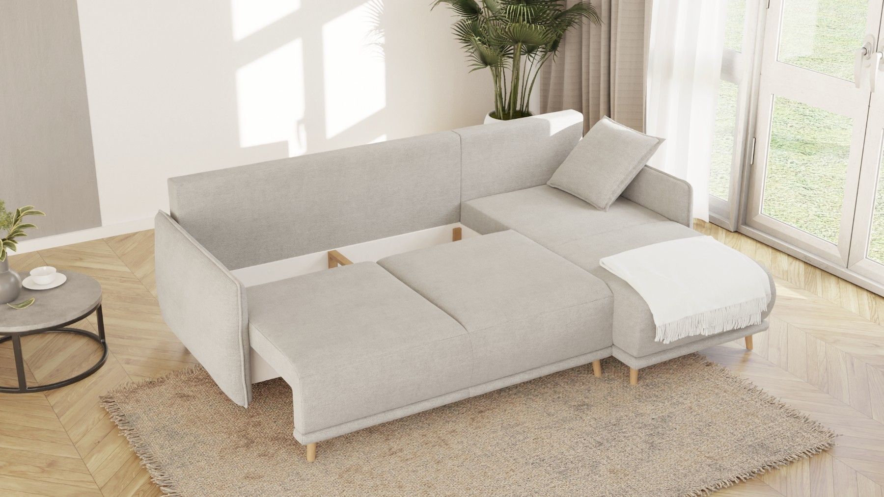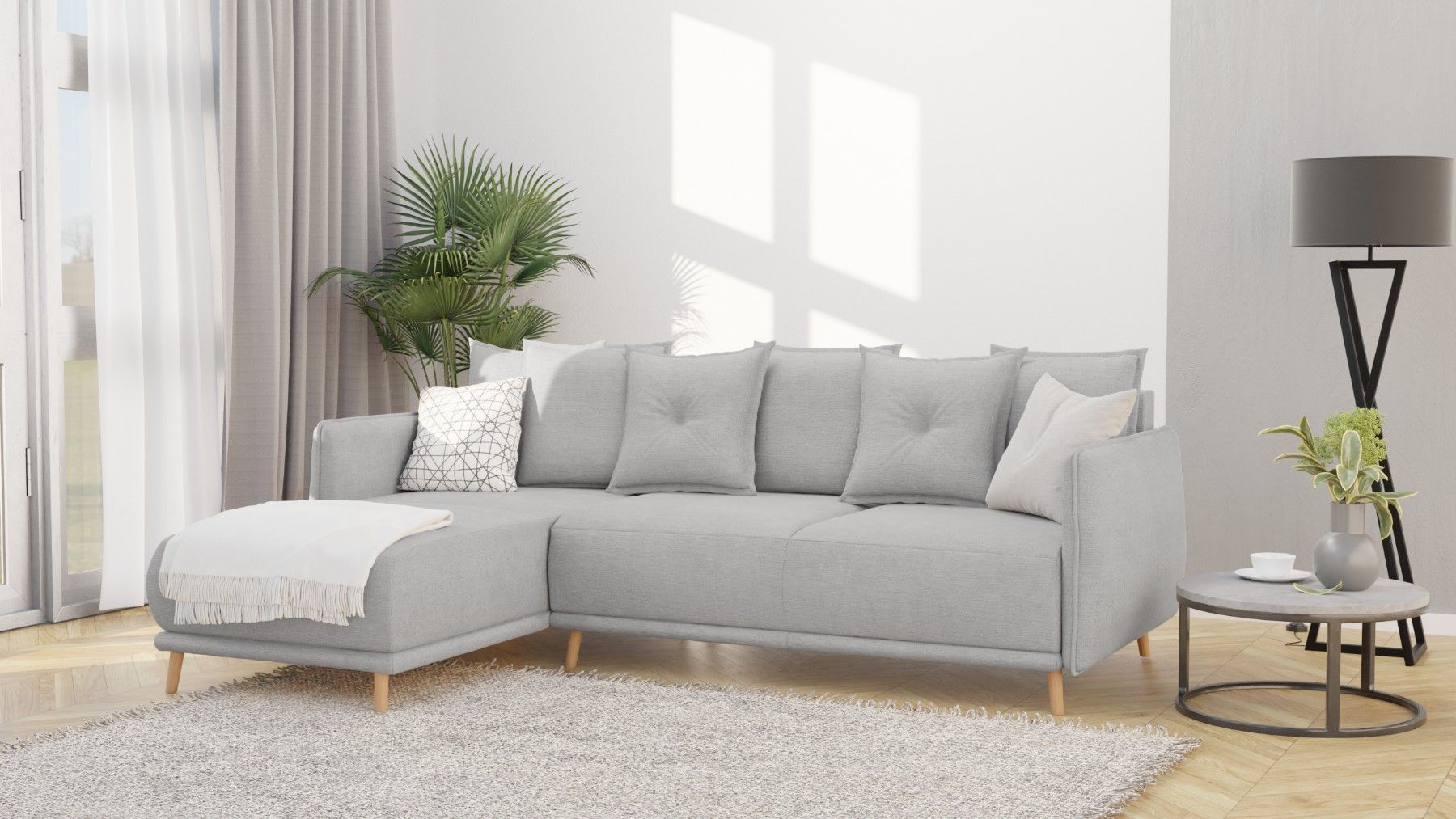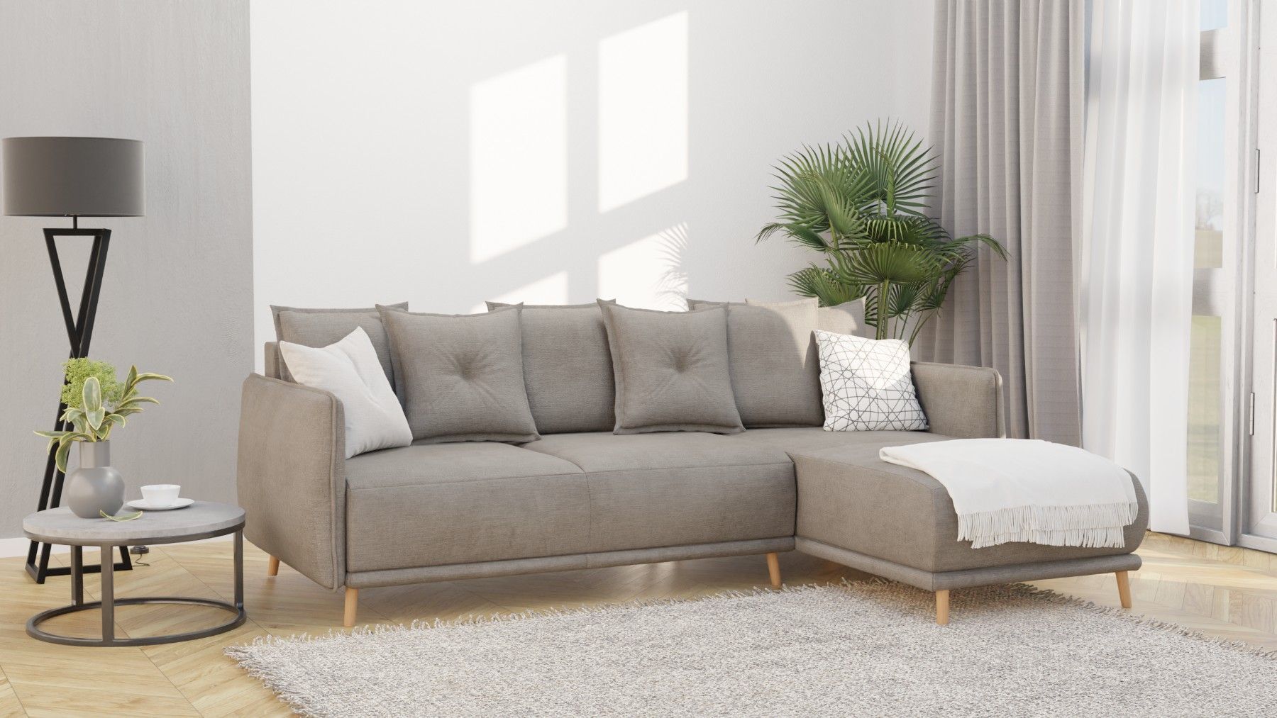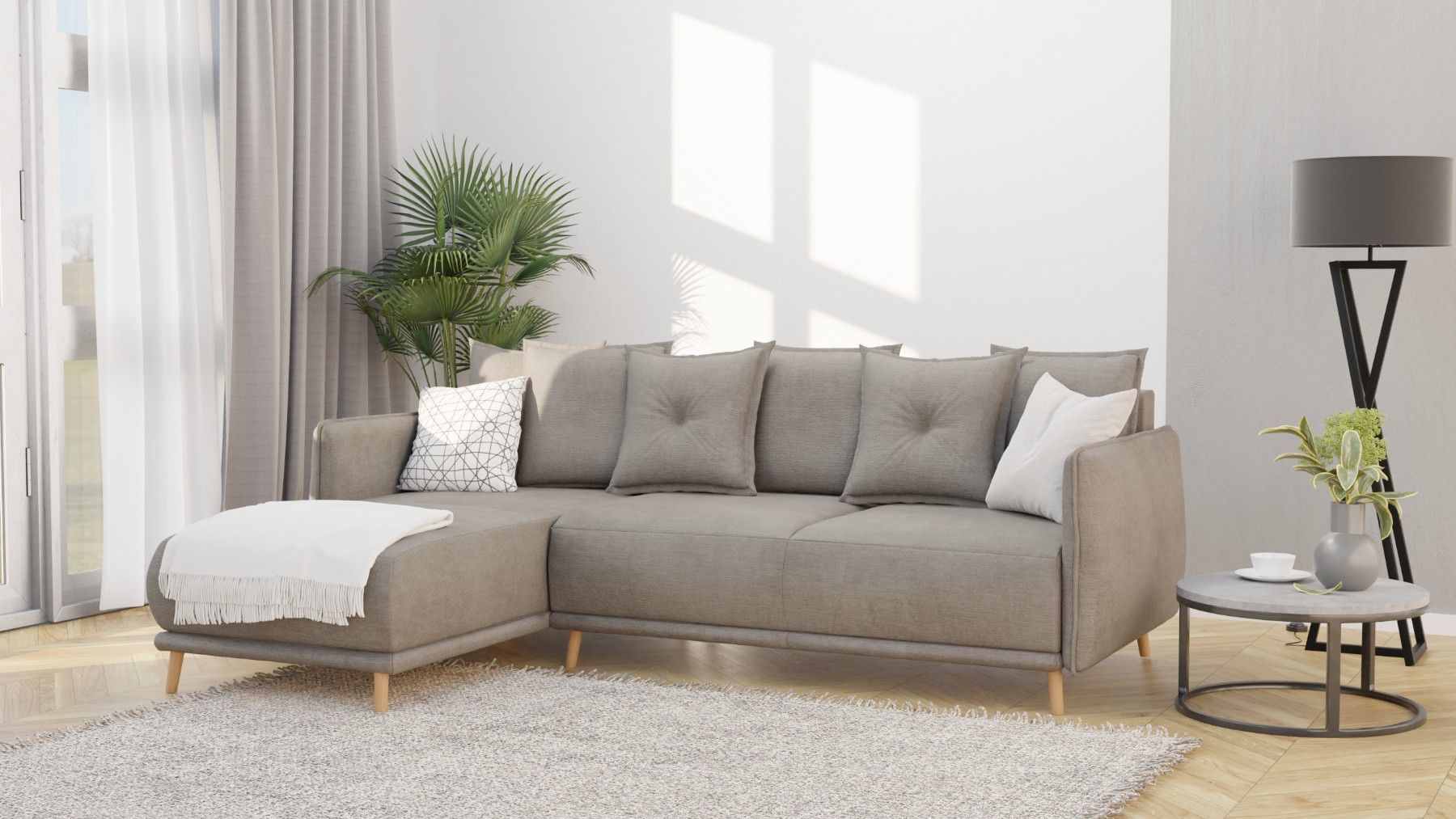 Owen - Ecksofa mit Schlaffunktion und Bettkasten in scandinavischem Design
