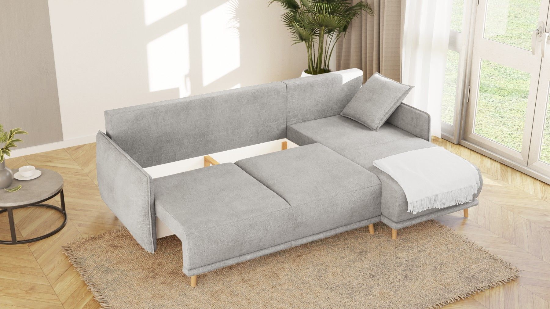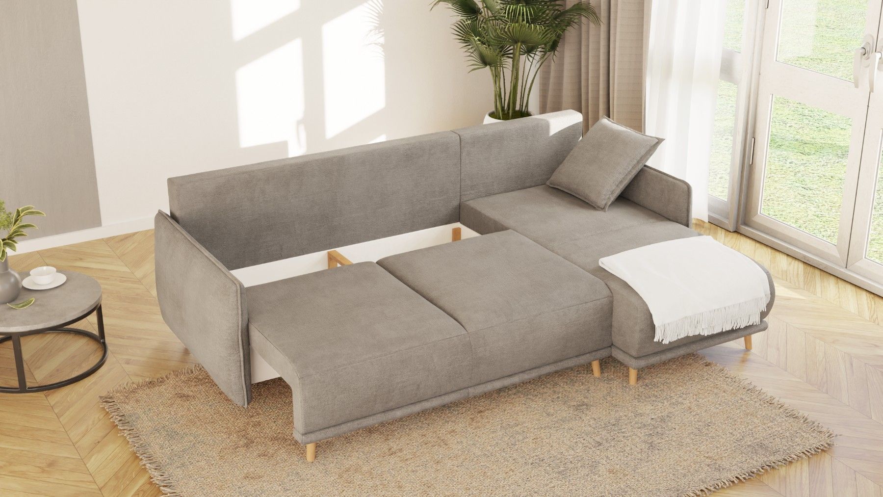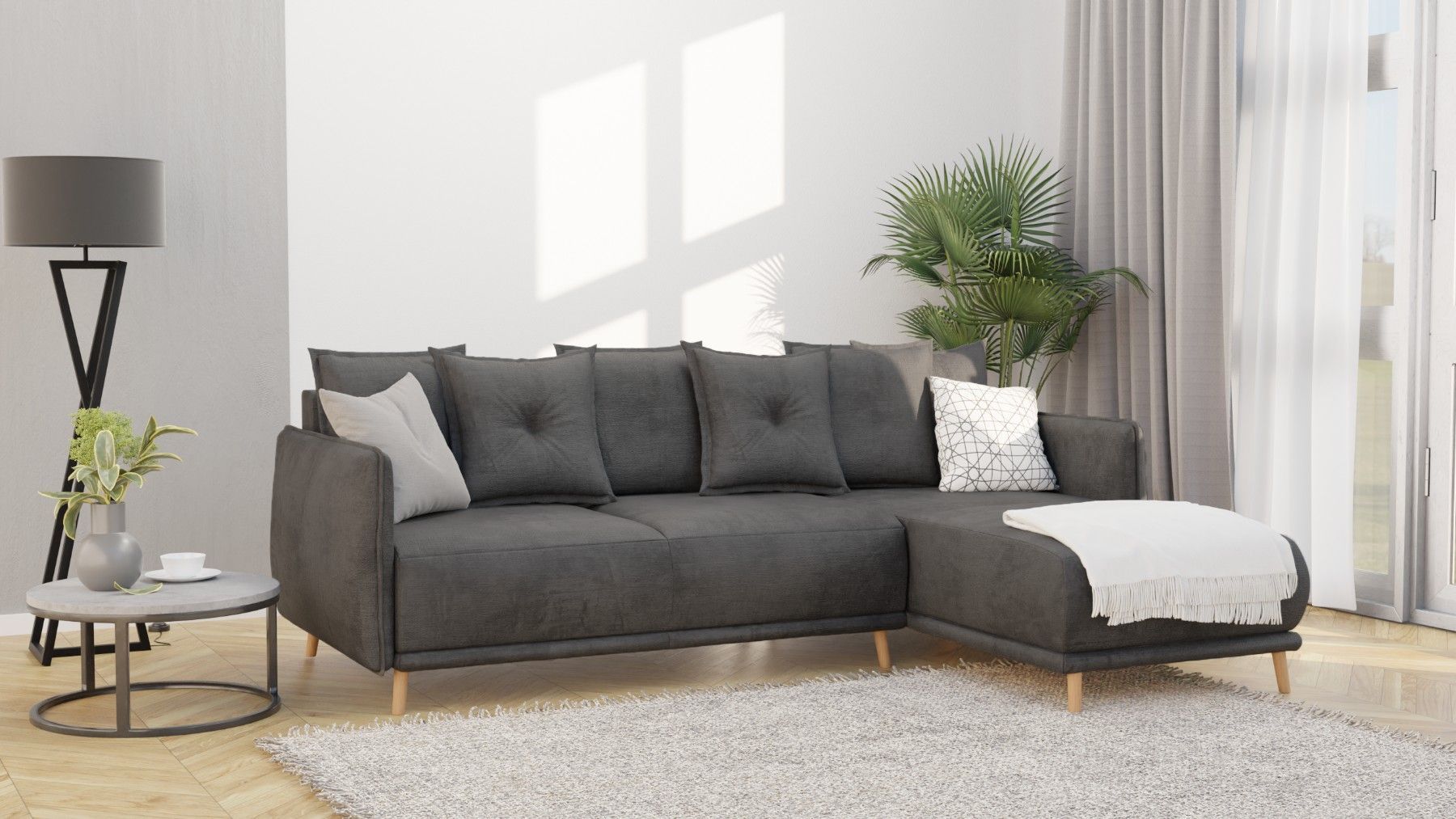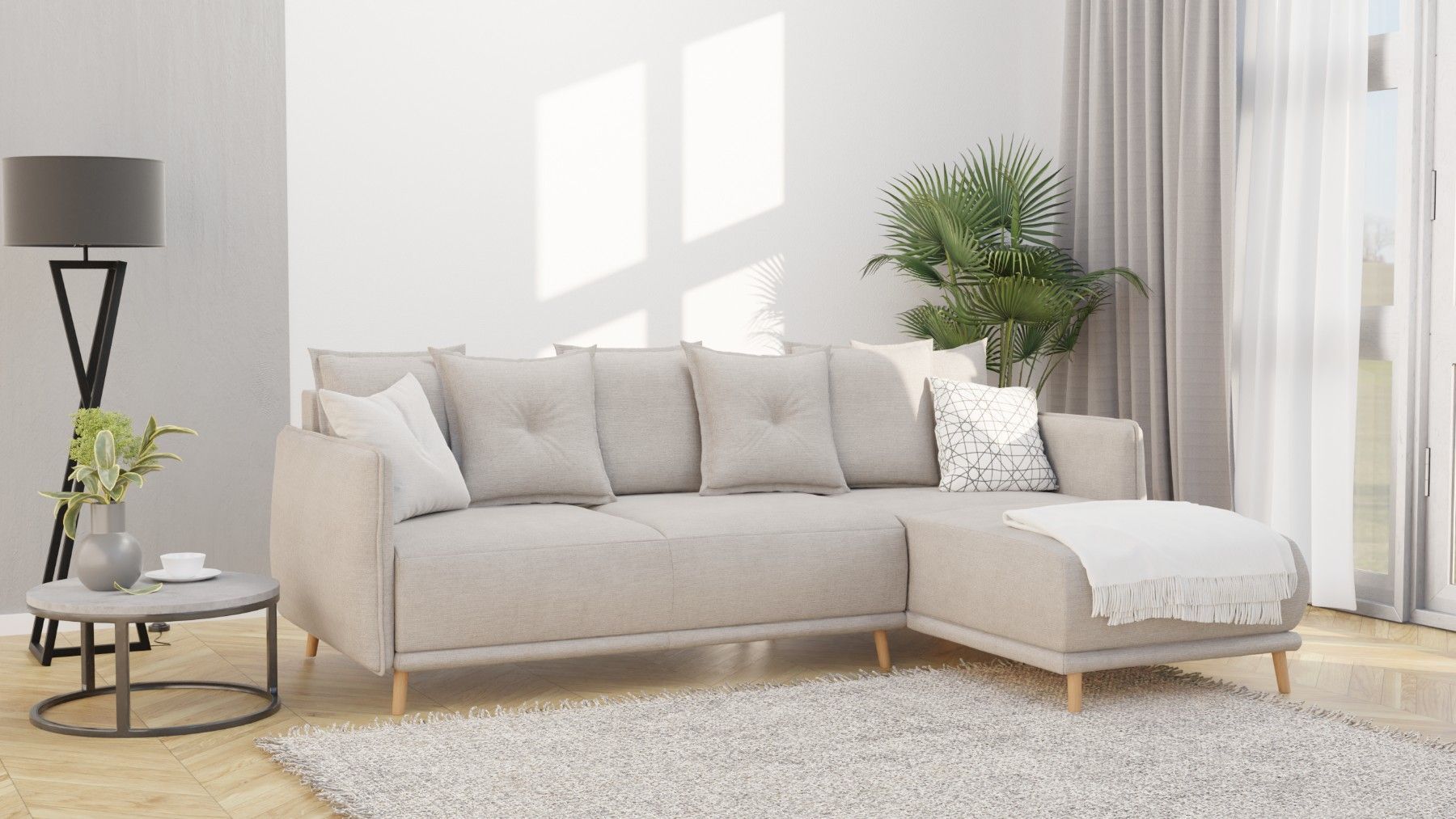 Owen - Ecksofa mit Schlaffunktion und Bettkasten in scandinavischem Design