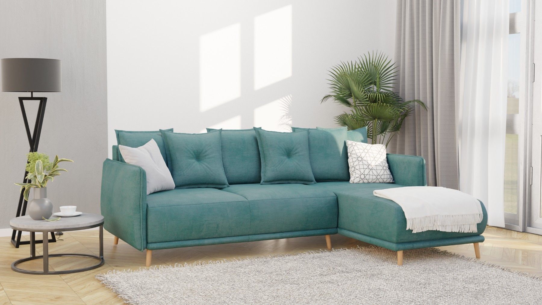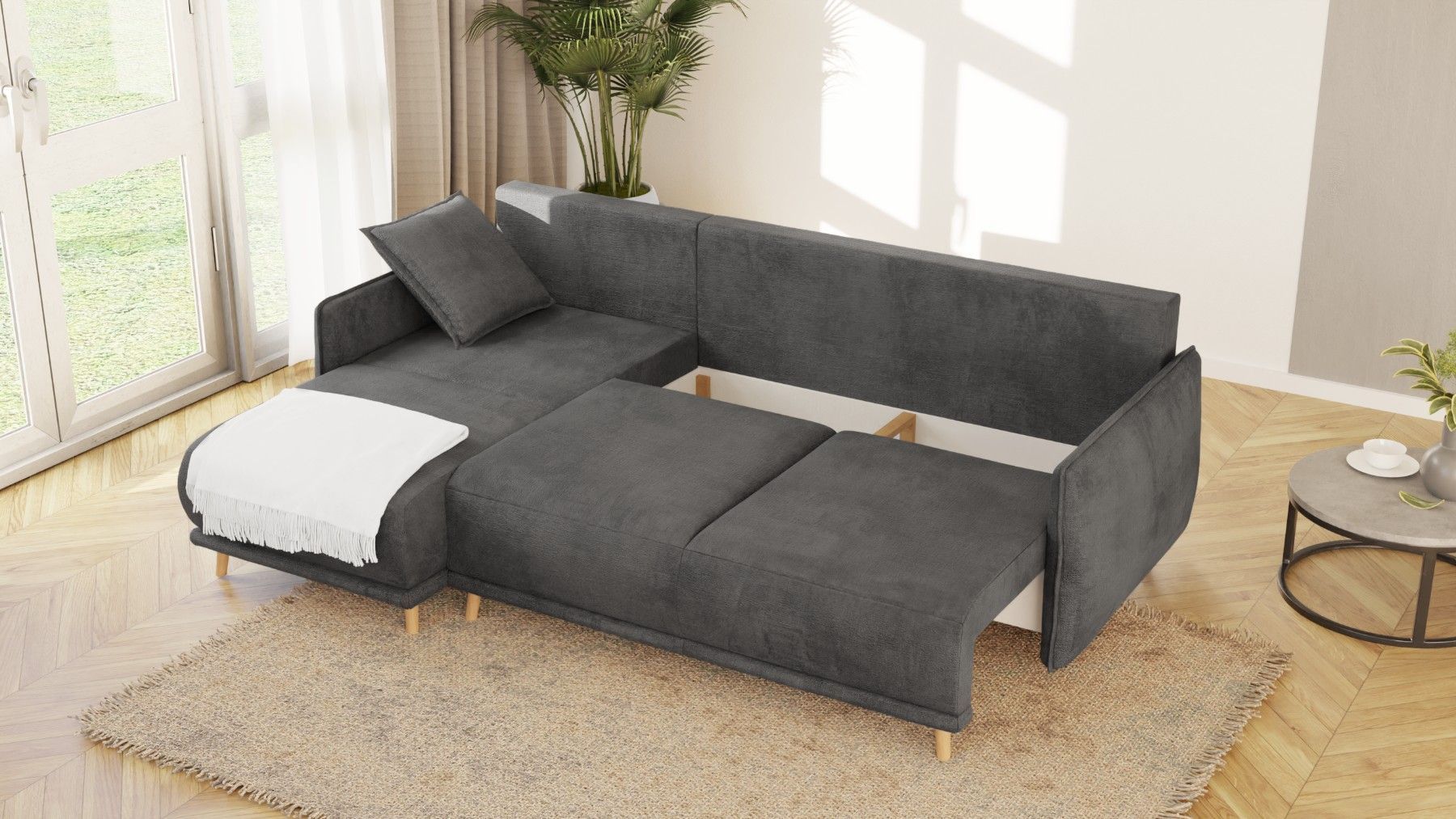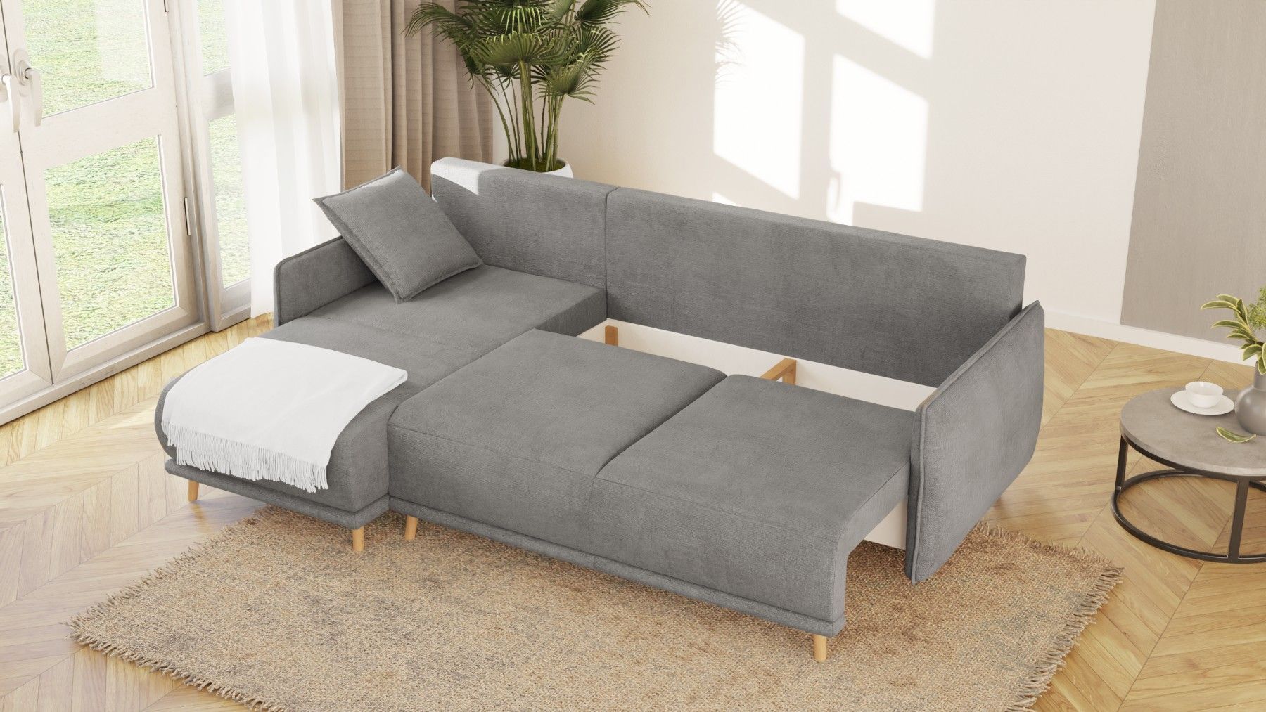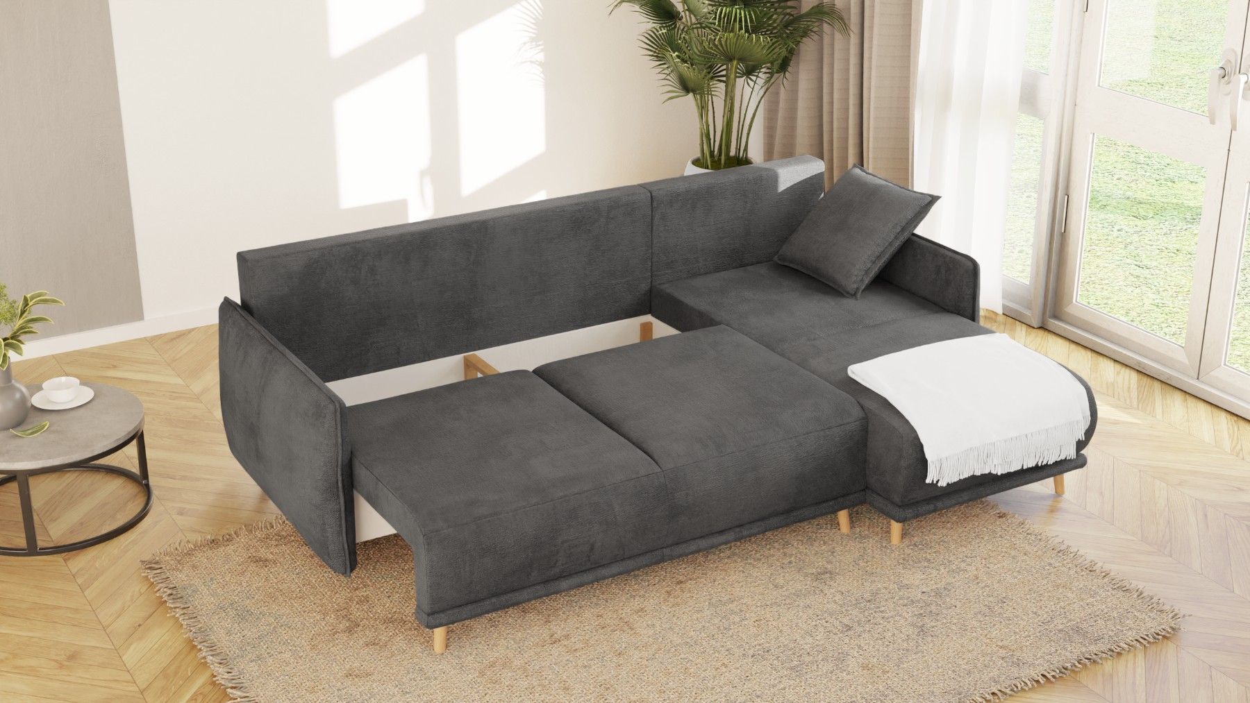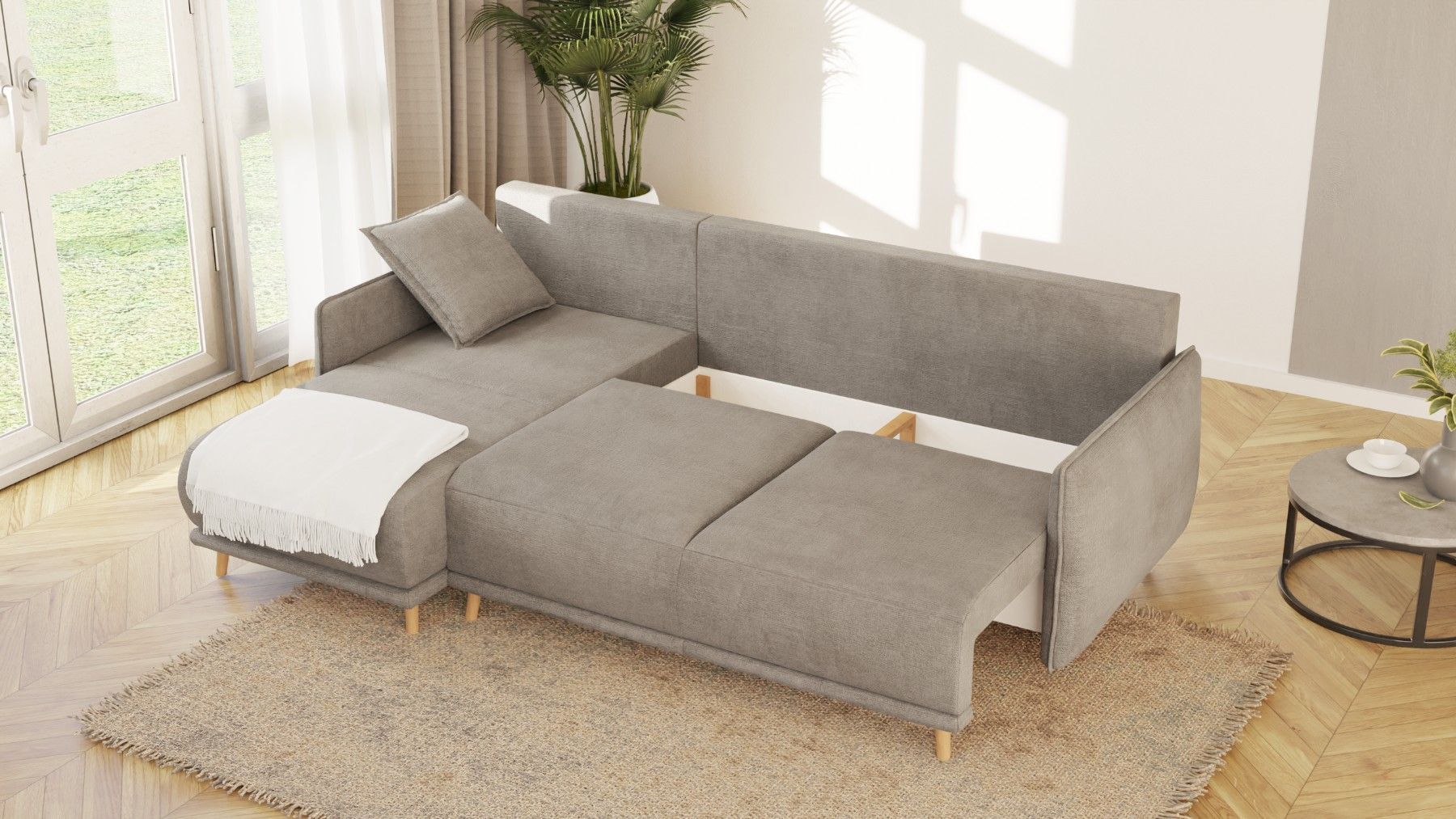 Owen - Ecksofa mit Schlaffunktion und Bettkasten in scandinavischem Design