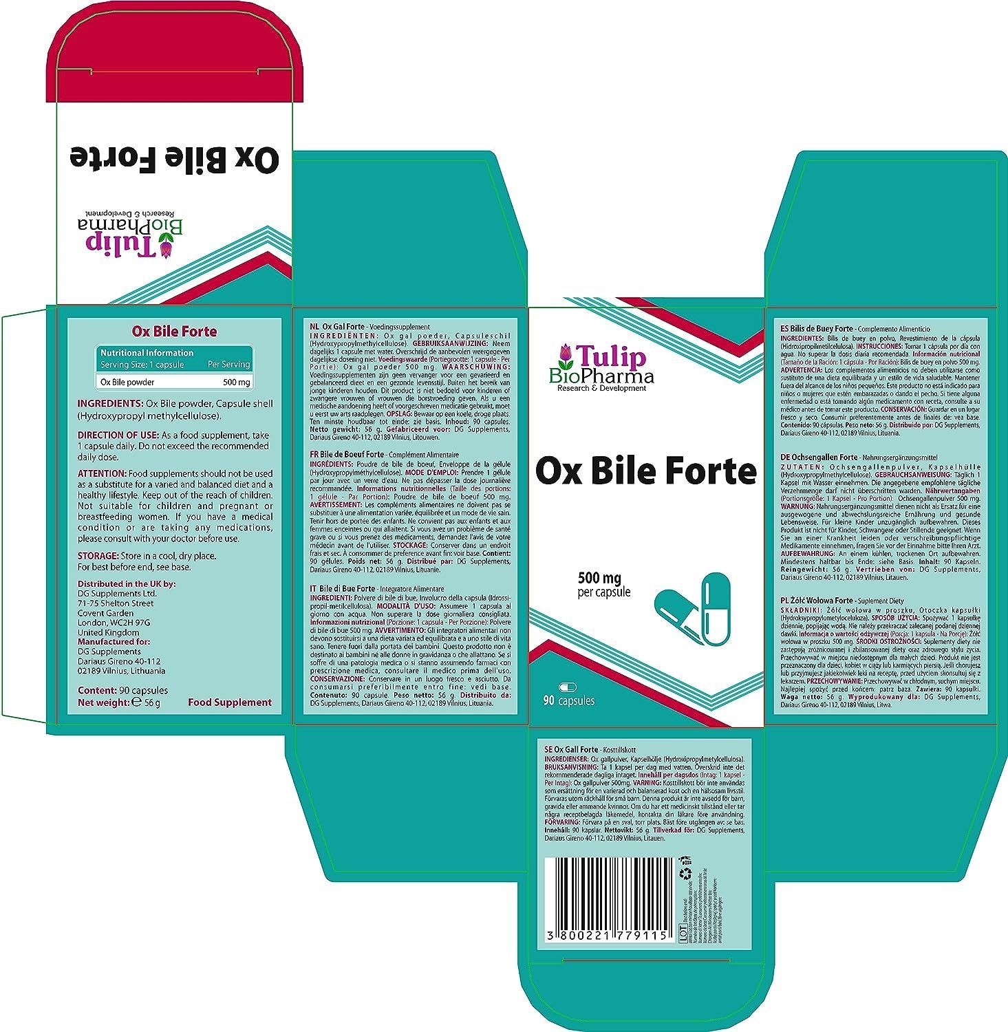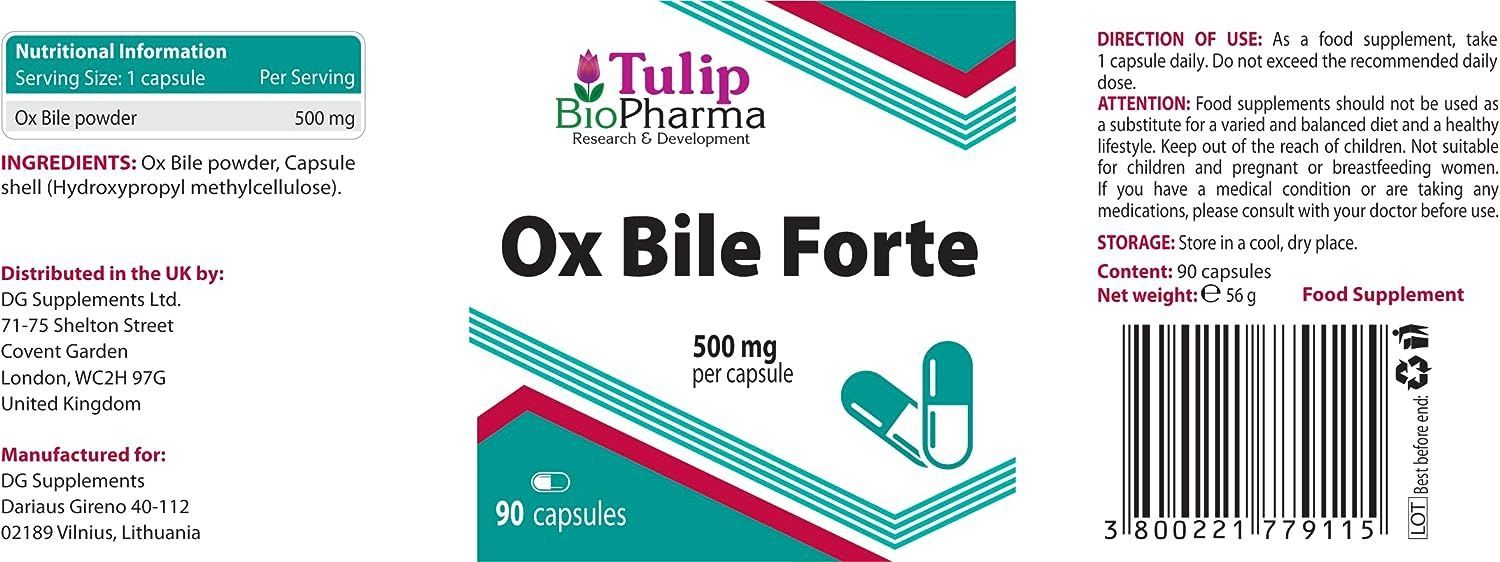 Ox Galle (Ox Bile Forte) 500 mg 90 Kapseln, 3rd Party Lab getestet, hochfeste Ergänzu