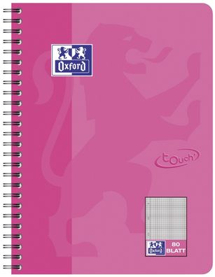 • Oxford 400086487 Collegeblock Touch - B5, kariert, 80 Blatt, 90 g/qm, rosa